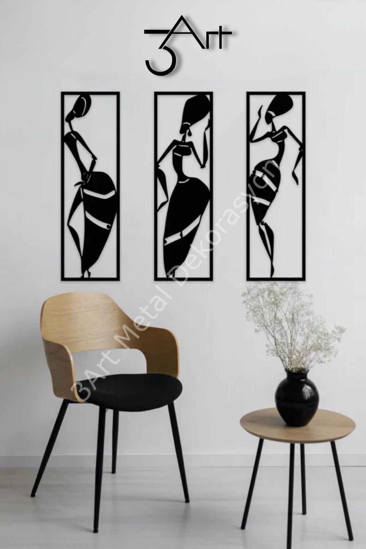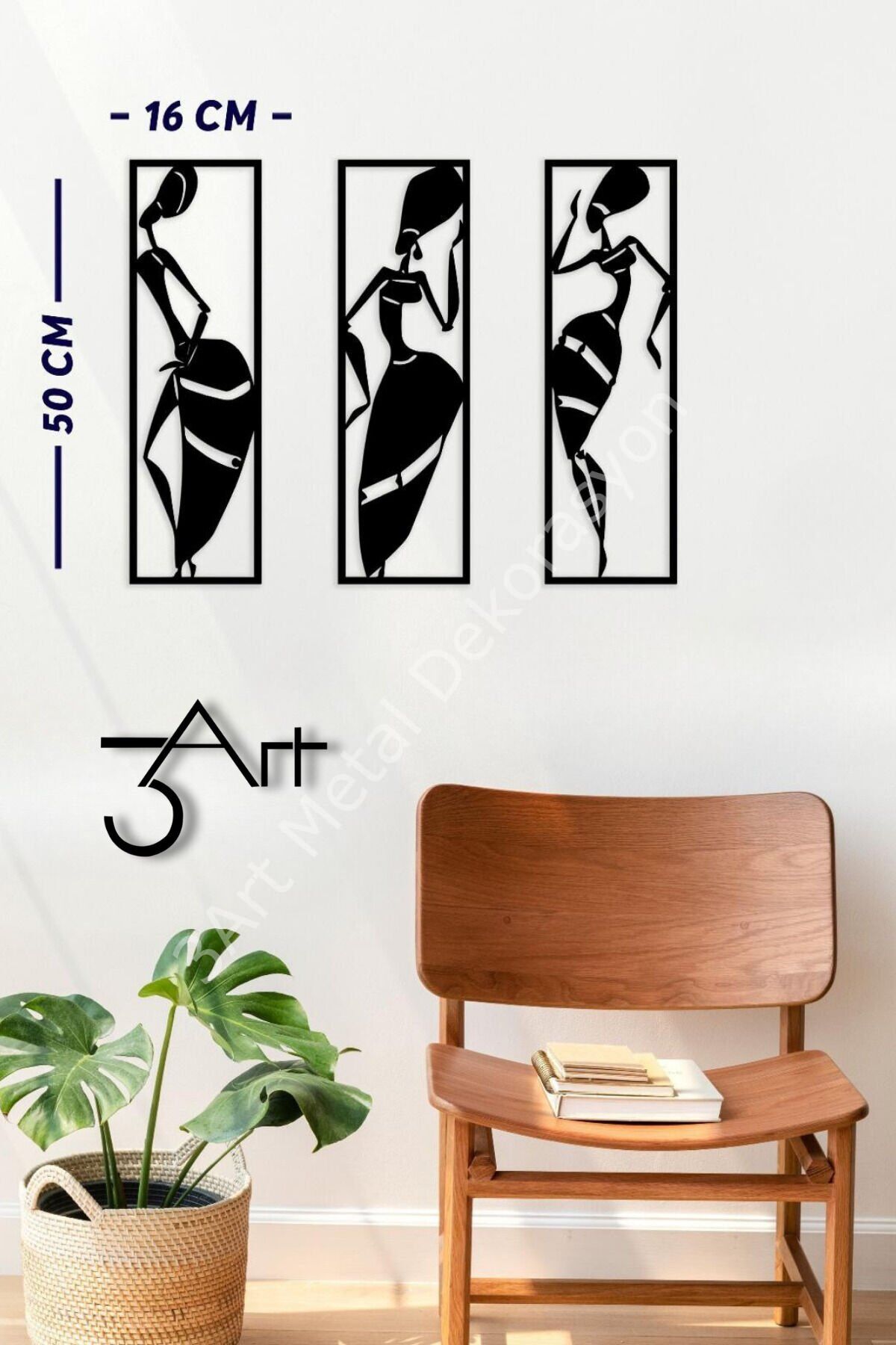- Modern tasarımıyla dikkat çeken 3'lü kadın silüeti metal tablo, ev ve ofis dekorasyonunuza şıklık katıyor.; - TR menşeili bu ürün, yerli üretim garantisiyle kaliteyi ve güveni bir arada sunuyor.; - Dayanıklı metal materyali sayesinde uzun ömürlü kullanım vaat ediyor.; - 50 x 14 cm boyutlarındaki bu tablo seti, mekanınıza modern bir dokunuş eklerken aynı zamanda estetik bir görünüm sağlıyor.; - Siyah rengiyle her türlü dekorasyonla uyum sağlayarak mekanınıza sofistike bir hava katıyor.; - Modern tema ve stil anlayışını yansıtan bu metal tablo, çağdaş dekorasyon trendlerine uygun bir seçimdir.; - 3art metal dekorasyon tarafından üretilen bu ürün, yetkili ithalatçı/temsilci/ifa hizmet sağlayıcı garantisi altında olup güvenle tercih edebilirsiniz.; - Modern tasarımıyla ev ve ofis dekorasyonunuza şıklık katan 3'lü Kadın Silüeti Metal Tablo, mekanınıza çağdaş bir dokunuş ekler.; - Türkiye'de üretilen bu metal tablo, yerel işçilik ve kaliteyi temsil eder.; - Dayanıklı metal materyali sayesinde uzun ömürlü kullanım sunar ve kolay temizlenebilir özelliği ile pratik bir bakım sağlar.; - Üç parça halinde gelen bu set, farklı boyut ve şekillerde kombinasyonlar oluşturarak duvarlarınıza dinamik bir görünüm kazandırır.;