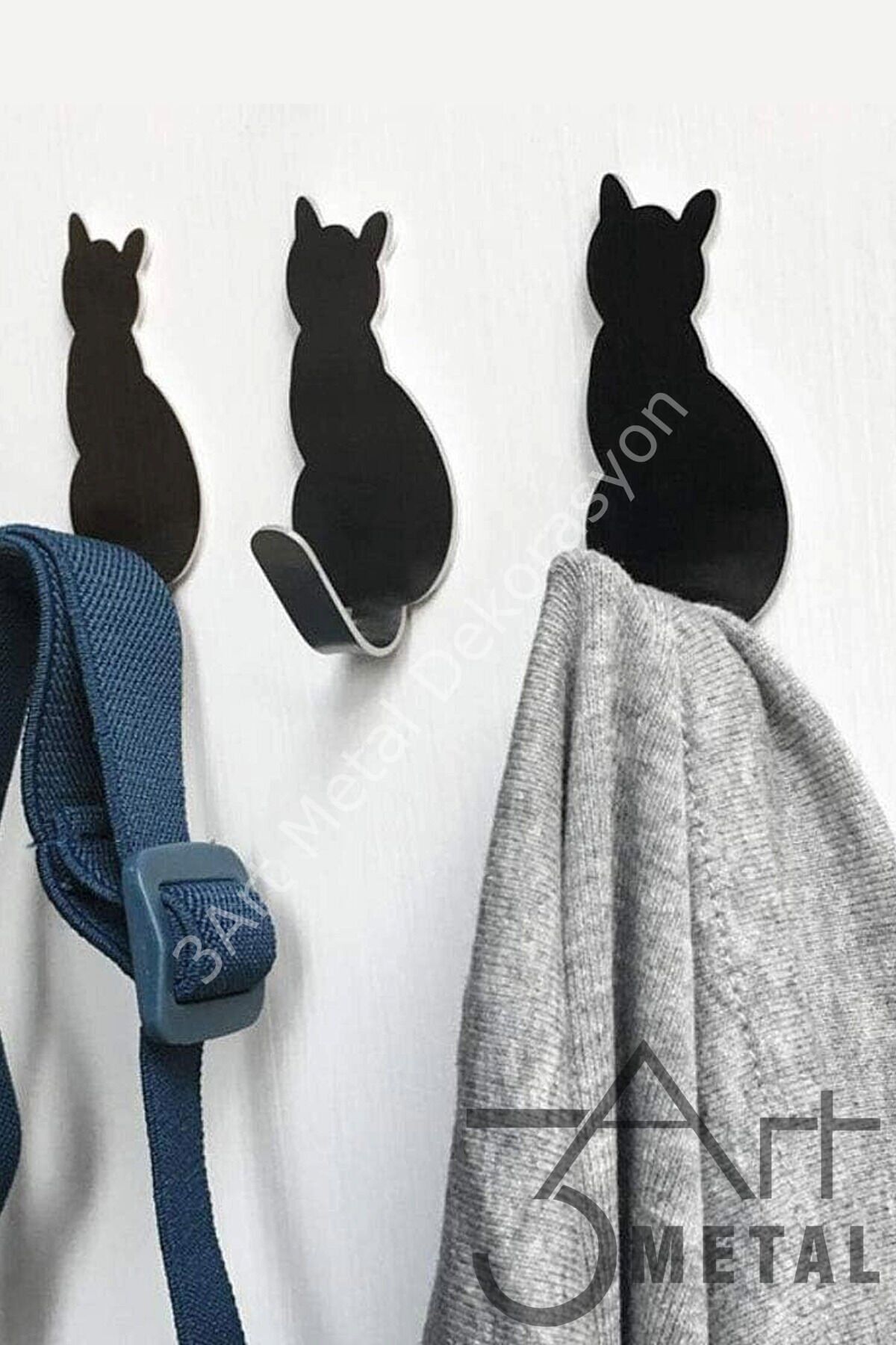 - Üç adet paslanmaz metal kedi figürü, şık ve modern bir görünüm sunar.; - Siyah renk seçeneği ile evinizin dekorasyonuna kolayca uyum sağlar.; - Siyah web color özelliği sayesinde leke tutmayan ve dayanıklı bir yapıya sahiptir.; - Askı seti olarak tasarlanmış olup, elbiselerinizi ve diğer giysilerinizi düzenli bir şekilde saklamanızı sağlar.; - Anahtarlık ve diğer küçük eşyalarınız için ideal bir yer oluştururken, aynı zamanda pratik kullanım sunar.; - Paslanmaz malzeme kullanımı sayesinde uzun ömürlü ve dayanıklı bir yapı sunar.; - Kedi figürleriyle süslenmiş tasarımı, evinizin dekorasyonuna şirin bir dokunuş katar.; - Hem anahtarlık hem de elbise askısı olarak kullanılabilme özelliği ile çok yönlülük sağlar.; - Üretiminde Türkiye'de üretilen malzemeler tercih edilerek yerel ekonomiye katkıda bulunulur.;