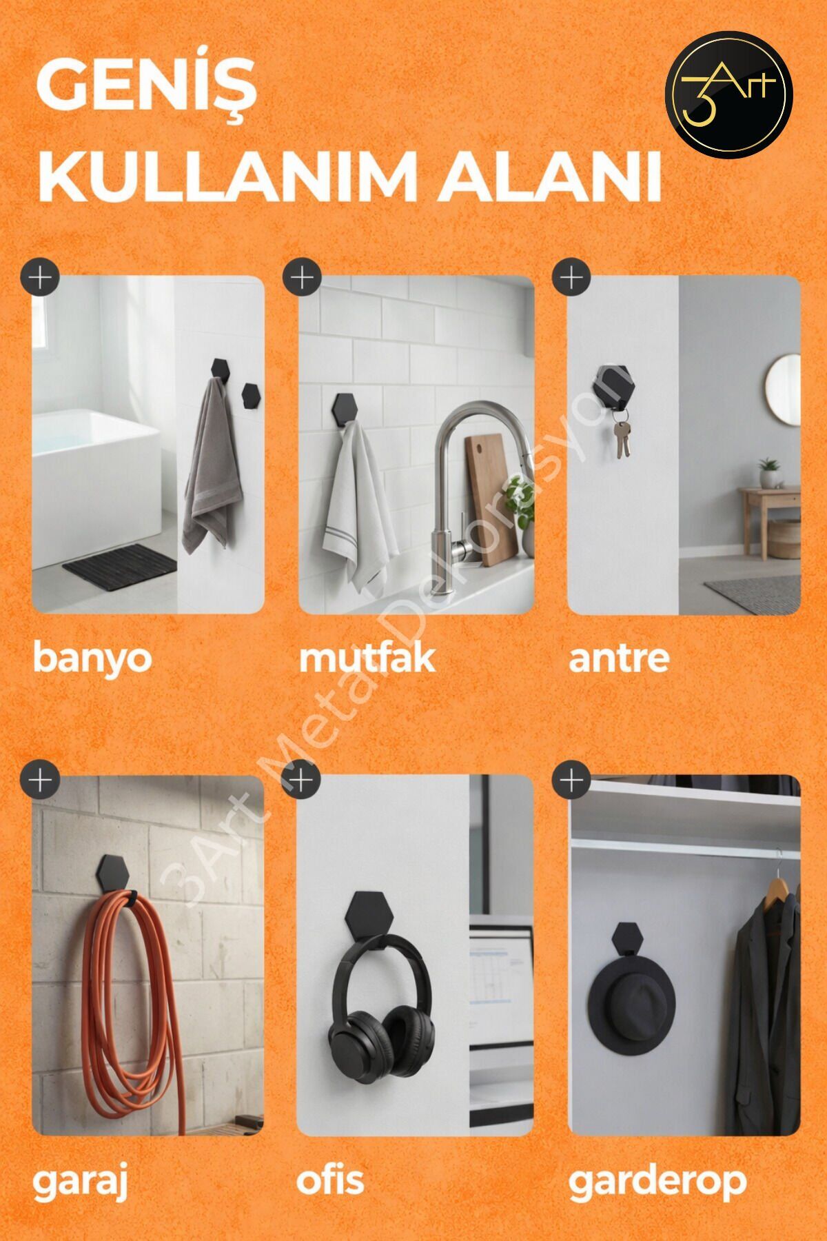 - Elbise ve diğer giysilerinizi düzenli bir şekilde asmak için ideal, kendinden yapışkanlı askılık.; - Modern tasarımıyla her türlü dekorasyona uyum sağlayan siyah renkli askı.; - Güçlü yapışkan özelliği sayesinde duvara kolayca monte edilebilir ve sağlam bir şekilde durur.; - 4 parça set halinde sunulan bu askılık, birden fazla giysiyi aynı anda asma imkanı tanır.; - Türkiye'de üretilmiş olup, yerli üretim kaliteli malzeme ve işçilikle üretilmiştir.;