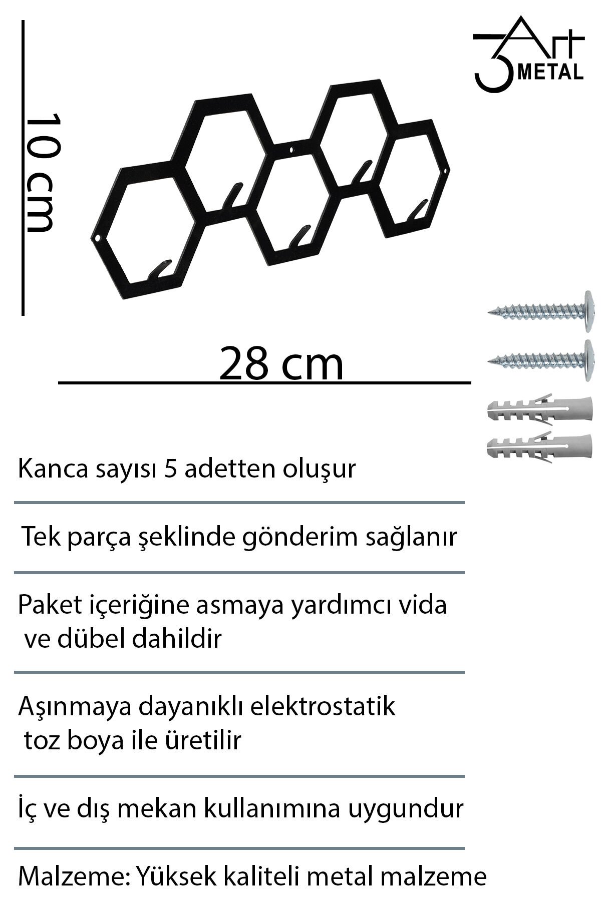 Bu, gerekli tüm şeyleri elinizin altında tutmanıza ve evinizi düzenli tutmanıza yardımcı olacak işlevsel ve şık bir mobilya parçasıdır. ; “Petek” duvara monte anahtarlık, yerden tasarruf etmeye değer verenler için ideal bir çözümdür. ; Duvardaki raf ve anahtarlık işlevini birleştirerek gerekli anahtarları veya diğer küçük eşyaları zaman kaybetmeden ve telaşlanmadan hızlı bir şekilde bulmanızı sağlar. ; 5 adet kancası sayesinde üzerine anahtarlarınızı, çantanızı, şemsiyenizi ve hatta ceketinizi asabilirsiniz. ; Bu kullanışlı raf, her oda için muhteşem bir dekor yaratabilir. ; Şık tasarımı ve zarif şekilleri iç mekana özel bir çekicilik katıyor. ; Siyah hareli polimer toz kaplama, incelik ve zarafet katıyor. ; “Petek” duvara monte anahtarlık rafı, size uzun süre sadakatle hizmet etmesini sağlayan dayanıklı metalden yapılmıştır. ; Güvenilirliğinden ve dayanıklılığından emin olabilirsiniz. ; Bu anahtarlık rafı yalnızca hayatınızı kolaylaştırmakla kalmayacak, aynı zamanda evinizin tasarımında da çekici bir vurgu haline gelecektir. ; Eşsiz tasarımı ve işlevselliği, bireyselliğinizi ortaya çıkarmanıza ve iç mekanınıza özel bir çekicilik kazandırmanıza olanak tanır. ; Hangi iç mekan stilini tercih ederseniz edin - modern veya klasik, "Petek" duvara monte anahtarlık her dekora uyumlu bir şekilde uyum sağlayacaktır. ; Günlük yaşamınızda vazgeçilmez bir yardımcınız olacak. ; Petek Duvar Anahtar Rafını bugün sipariş edin ve sunduğu tüm avantajları deneyimleyin. ; Kolaylık, işlevsellik ve estetik, bu ürünü gerçekten benzersiz kılan özelliklerdir. ; Teçhizat Dübel - 2 adet. ; Kendinden kılavuzlu vida - 2 adet. ; Boyutlar: Yükseklik: 10cm Uzunluk: 29cm;