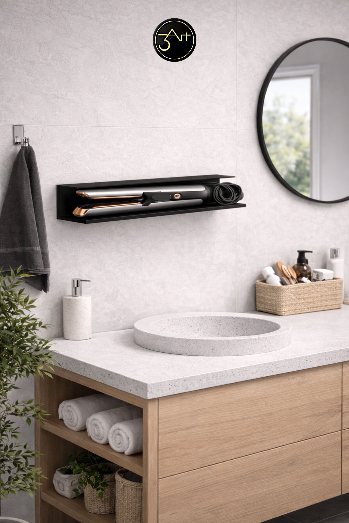 - Saç düzleştiricilerinizi güvenle saklayabileceğiniz, ısıya dayanıklı banyo rafı.; - Kablo toplama özelliği sayesinde düzleştiricinizin kablosunu düzenli tutar ve dağınıklığı önler.; - Modern ve şık tasarımıyla banyonuza estetik bir dokunuş katar.; - Nemli bir bezle kolayca temizlenebilir, bakımı pratiktir.; - Türkiye'de üretilmiş olup, yerel üretim kalitesini ve dayanıklılığını garanti eder.;