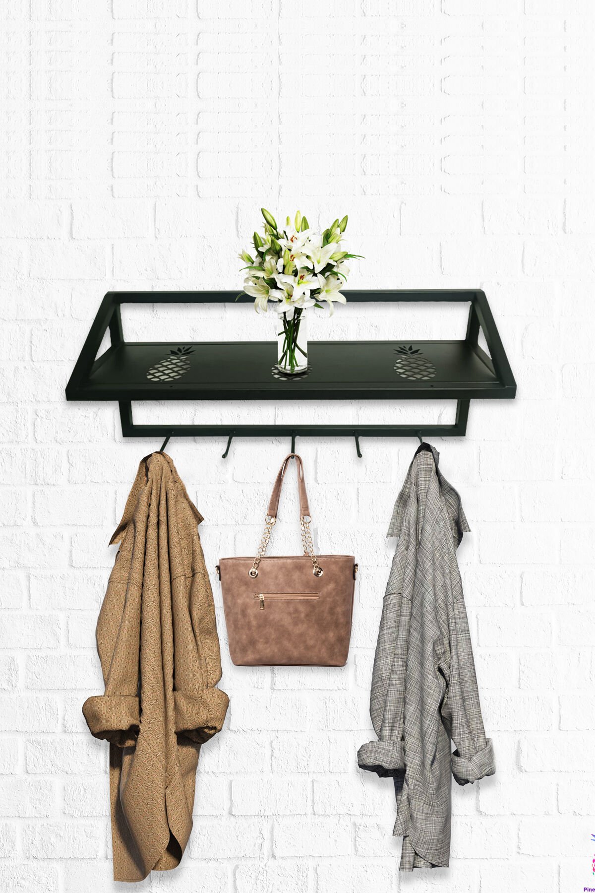 Klasik tasarımıyla her türlü dekorasyona uyum sağlayan ananas desenli metal duvar askısı, mekanınıza şıklık katar; Dayanıklı metal malzemesi sayesinde uzun ömürlü kullanım sunar ve günlük eşyalarınızı güvenle asmanızı sağlar; Duvara monte edilebilir yapısı ile yerden tasarruf etmenize olanak tanır ve alanınızı verimli kullanmanızı sağlar; Klasik temaya sahip bu askılık, zamansız bir estetik sunarak evinizin veya ofisinizin atmosferini zenginleştirir;