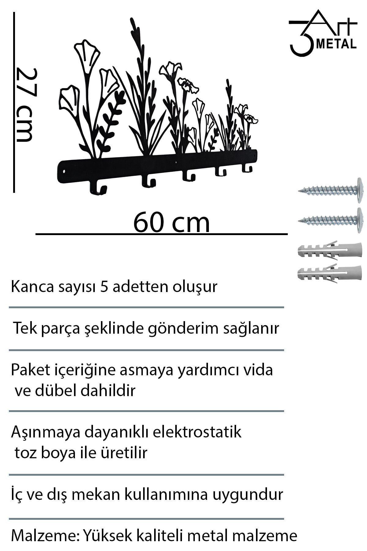 Evinizde şıklığı ve düzeni bir araya getiren 3ART METAL askılıklar ile tanışın! Tamamen mat siyah elektrostatik toz boyalı, lazer kesim teknolojisiyle üretilen bu askılıklar, hem işlevsel hem de dekoratif bir kullanım sunar.; Her bir ürün, yüksek kaliteli metal malzemeden üretilmiş olup, el işçiliği titizliğiyle montaj öncesi kontrol edilmiştir.; Modern ve minimalist tarzda tasarlanan bu metal duvar askılığı, özellikle ev girişlerinde, banyo ve yatak odalarında, çocuk odalarında ya da ofislerde hem kullanışlılık hem de estetik bir dokunuş sağlar.; Geniş kanca yapısıyla mont, çanta, havlu, bornoz, anahtar ve aksesuarlarınızı rahatlıkla taşıyabilir.; Aynı zamanda duvara kolayca monte edilebilen bu ürünler, güçlü yapısı sayesinde uzun ömürlü kullanım sağlar.; ⸻ ⭐ Neden 3ART METAL Askılık? • %100 yerli üretim • Dayanıklı ve uzun ömürlü metal yapı • Şık ve zamansız mat siyah kaplama • Lazer kesim estetiği • Her dekorasyona uyum sağlayan minimalist tasarım • Elde üretilmiş hissi veren detaylar • Kurulum için gerekli vida/dübel dahildir ⸻ metal askılık, duvar askısı, banyo askısı, mat siyah askılık, el yapımı dekoratif askılık, modern portmanto, giriş askılığı, anahtarlık, çocuk odası askısı, trendy askılık, metal ev dekorasyonu, 3art metal, lazer kesim dekoratif askı Duvara monte edilebilir tasarımı sayesinde yerden tasarruf sağlar ve mekanınızda şık bir dekoratif unsur olarak öne çıkar; Dayanıklı metal malzemesi ile uzun ömürlü kullanım sunar ve sık kullanıma karşı dirençlidir; Çiçek motifli deseniyle mekanınıza doğal bir estetik katar ve dekoratif bir dokunuş sağlar;