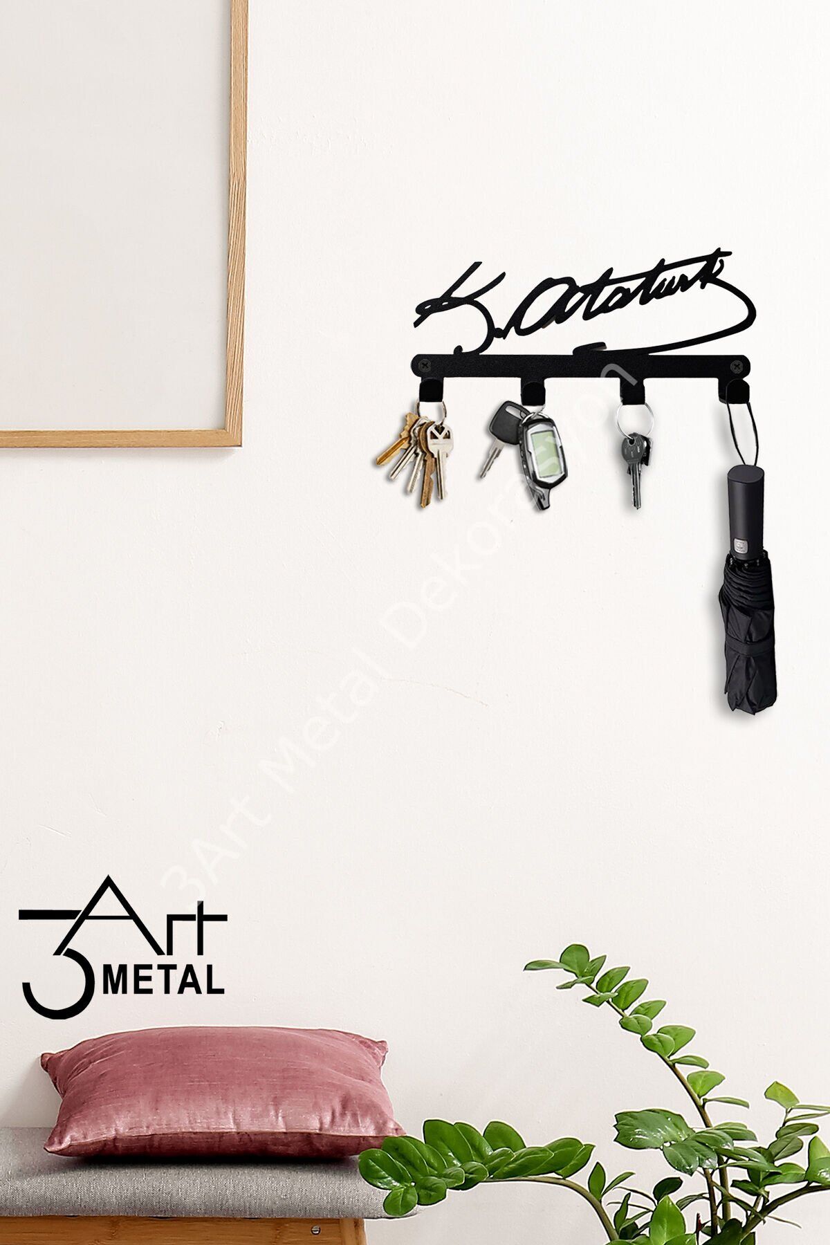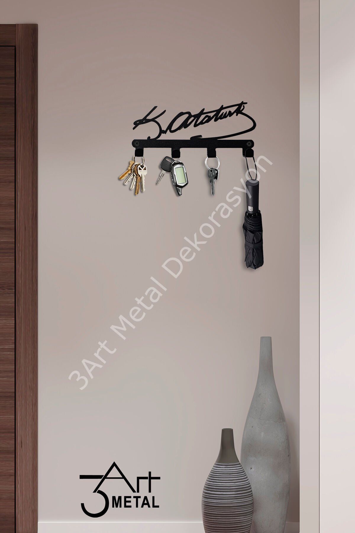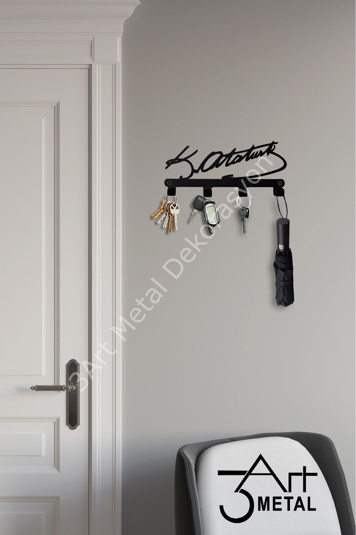 - Siyah renk seçeneğiyle modern ve şık bir görünüm sunar, dekorasyonunuza kolayca uyum sağlar.; - Mustafa Kemal Atatürk'ün ismi ile özelleştirilmiş tasarımıyla, hem kişisel kullanım hem de hediye olarak idealdir.; - Anahtar askısı ve anahtarlık özellikleri sayesinde evinizde veya ofisinizde düzenli bir alan oluşturmanıza yardımcı olur.; - Türkiye menşeli olmasıyla yerel üretim kalitesini yansıtır ve dayanıklılığı garanti eder.; metal duvar askılığı, siyah askılık, banyo havlu askısı, çelik duvar askı, mutfak askılığı, kapı arkası askı, modern askılık, çanta askısı, lazer kesim askı, anahtarlık askılığı, dekoratif duvar askısı, mat siyah metal askılık, organizer askı