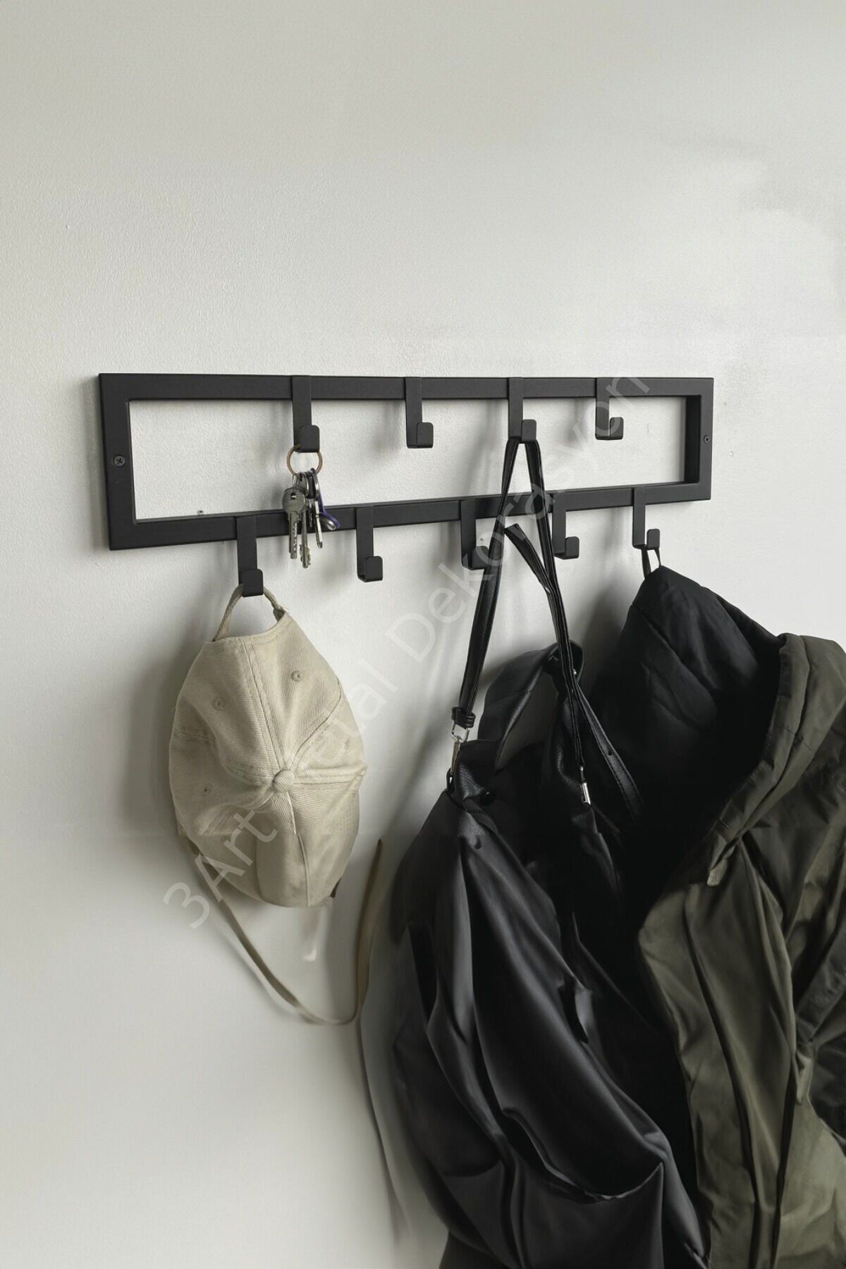 Evinizde şıklığı ve düzeni bir araya getiren 3ART METAL askılıklar ile tanışın! Tamamen mat siyah elektrostatik toz boyalı, lazer kesim teknolojisiyle üretilen bu askılıklar, hem işlevsel hem de dekoratif bir kullanım sunar.; Her bir ürün, yüksek kaliteli metal malzemeden üretilmiş olup, el işçiliği titizliğiyle montaj öncesi kontrol edilmiştir.; Modern ve minimalist tarzda tasarlanan bu metal duvar askılığı, özellikle ev girişlerinde, banyo ve yatak odalarında, çocuk odalarında ya da ofislerde hem kullanışlılık hem de estetik bir dokunuş sağlar.; Geniş kanca yapısıyla mont, çanta, havlu, bornoz, anahtar ve aksesuarlarınızı rahatlıkla taşıyabilir.; Aynı zamanda duvara kolayca monte edilebilen bu ürünler, güçlü yapısı sayesinde uzun ömürlü kullanım sağlar.; ⸻ ⭐ Neden 3ART METAL Askılık? • %100 yerli üretim • Dayanıklı ve uzun ömürlü metal yapı • Şık ve zamansız mat siyah kaplama • Lazer kesim estetiği • Her dekorasyona uyum sağlayan minimalist tasarım • Elde üretilmiş hissi veren detaylar • Kurulum için gerekli vida/dübel dahildir ⸻ metal askılık, duvar askısı, banyo askısı, mat siyah askılık, el yapımı dekoratif askılık, modern portmanto, giriş askılığı, anahtarlık, çocuk odası askısı, trendy askılık, metal ev dekorasyonu, 3art metal, lazer kesim dekoratif askı