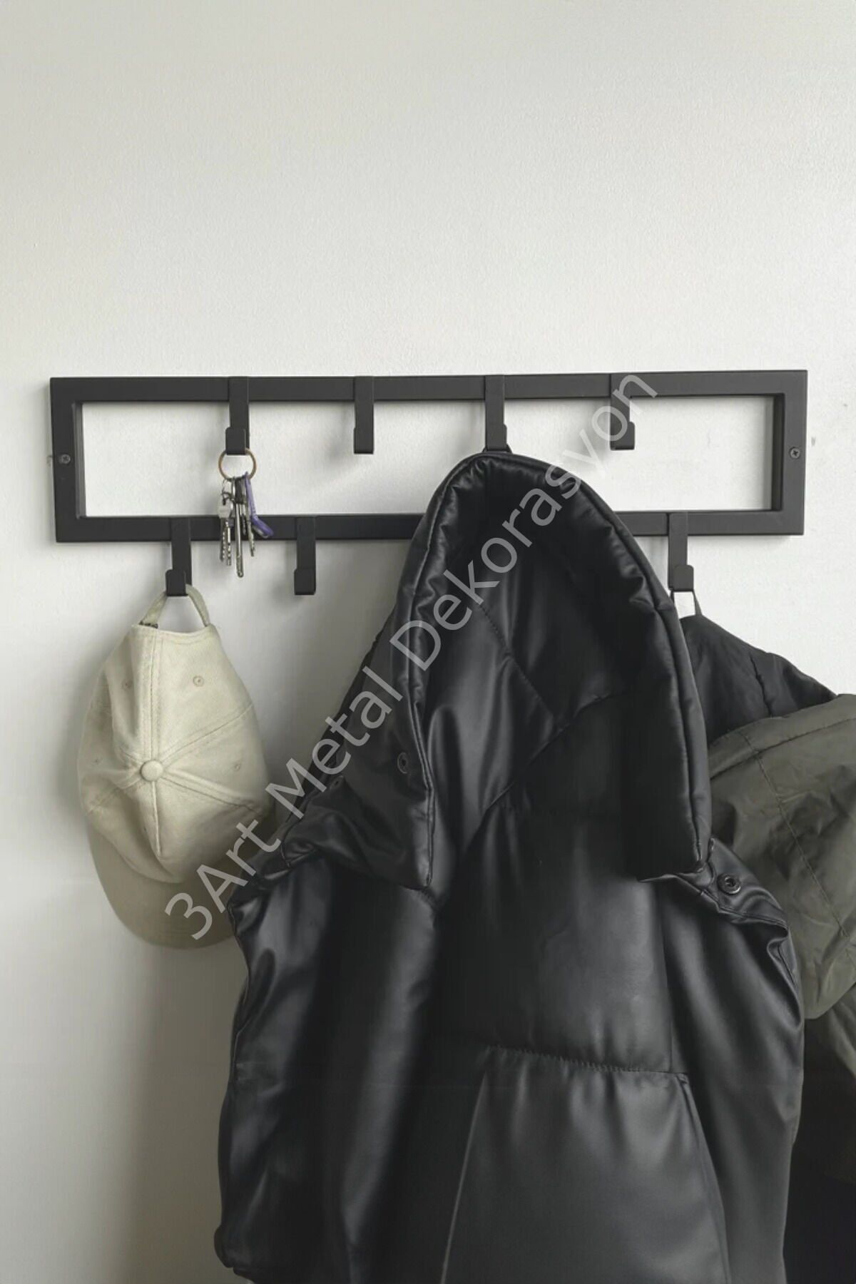 Evinizde şıklığı ve düzeni bir araya getiren 3ART METAL askılıklar ile tanışın! Tamamen mat siyah elektrostatik toz boyalı, lazer kesim teknolojisiyle üretilen bu askılıklar, hem işlevsel hem de dekoratif bir kullanım sunar.; Her bir ürün, yüksek kaliteli metal malzemeden üretilmiş olup, el işçiliği titizliğiyle montaj öncesi kontrol edilmiştir.; Modern ve minimalist tarzda tasarlanan bu metal duvar askılığı, özellikle ev girişlerinde, banyo ve yatak odalarında, çocuk odalarında ya da ofislerde hem kullanışlılık hem de estetik bir dokunuş sağlar.; Geniş kanca yapısıyla mont, çanta, havlu, bornoz, anahtar ve aksesuarlarınızı rahatlıkla taşıyabilir.; Aynı zamanda duvara kolayca monte edilebilen bu ürünler, güçlü yapısı sayesinde uzun ömürlü kullanım sağlar.; ⸻ ⭐ Neden 3ART METAL Askılık? • %100 yerli üretim • Dayanıklı ve uzun ömürlü metal yapı • Şık ve zamansız mat siyah kaplama • Lazer kesim estetiği • Her dekorasyona uyum sağlayan minimalist tasarım • Elde üretilmiş hissi veren detaylar • Kurulum için gerekli vida/dübel dahildir ⸻ metal askılık, duvar askısı, banyo askısı, mat siyah askılık, el yapımı dekoratif askılık, modern portmanto, giriş askılığı, anahtarlık, çocuk odası askısı, trendy askılık, metal ev dekorasyonu, 3art metal, lazer kesim dekoratif askı