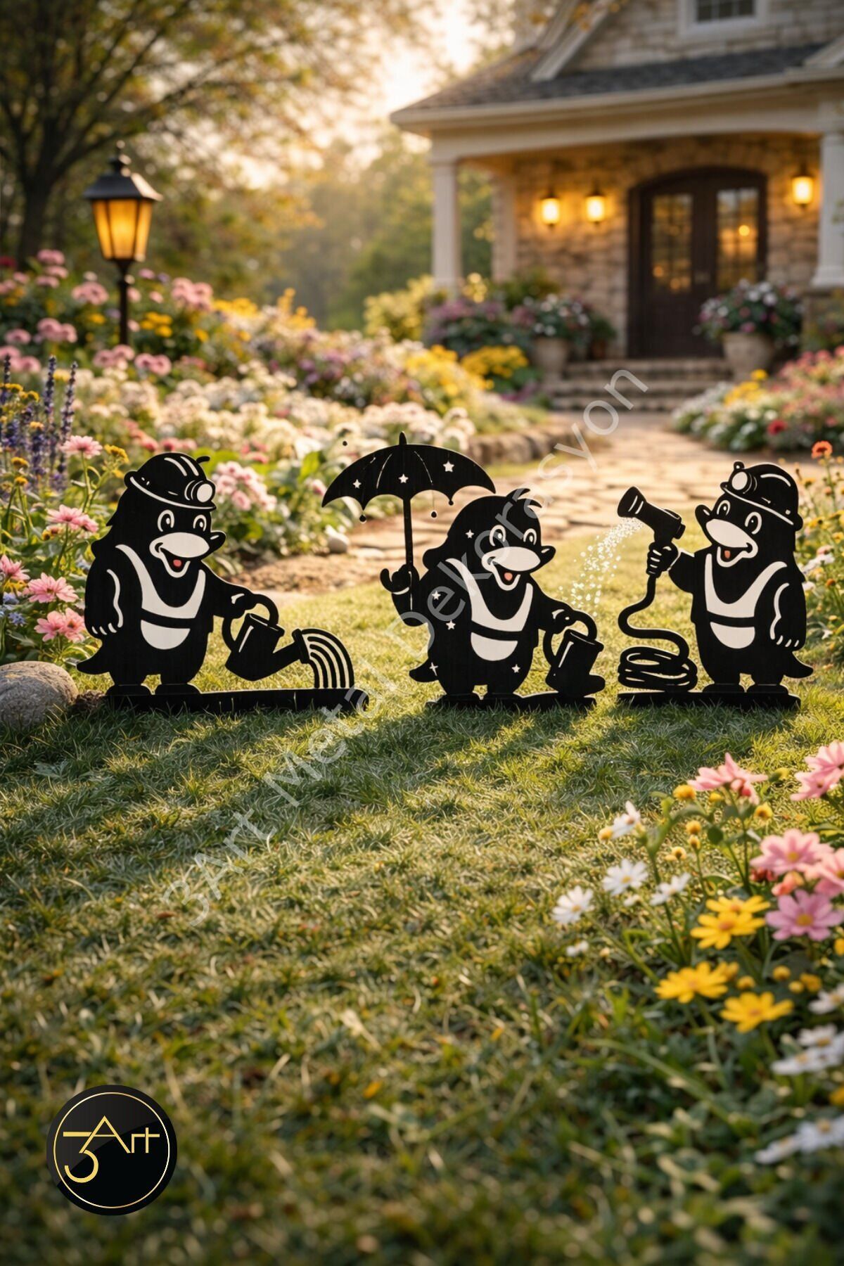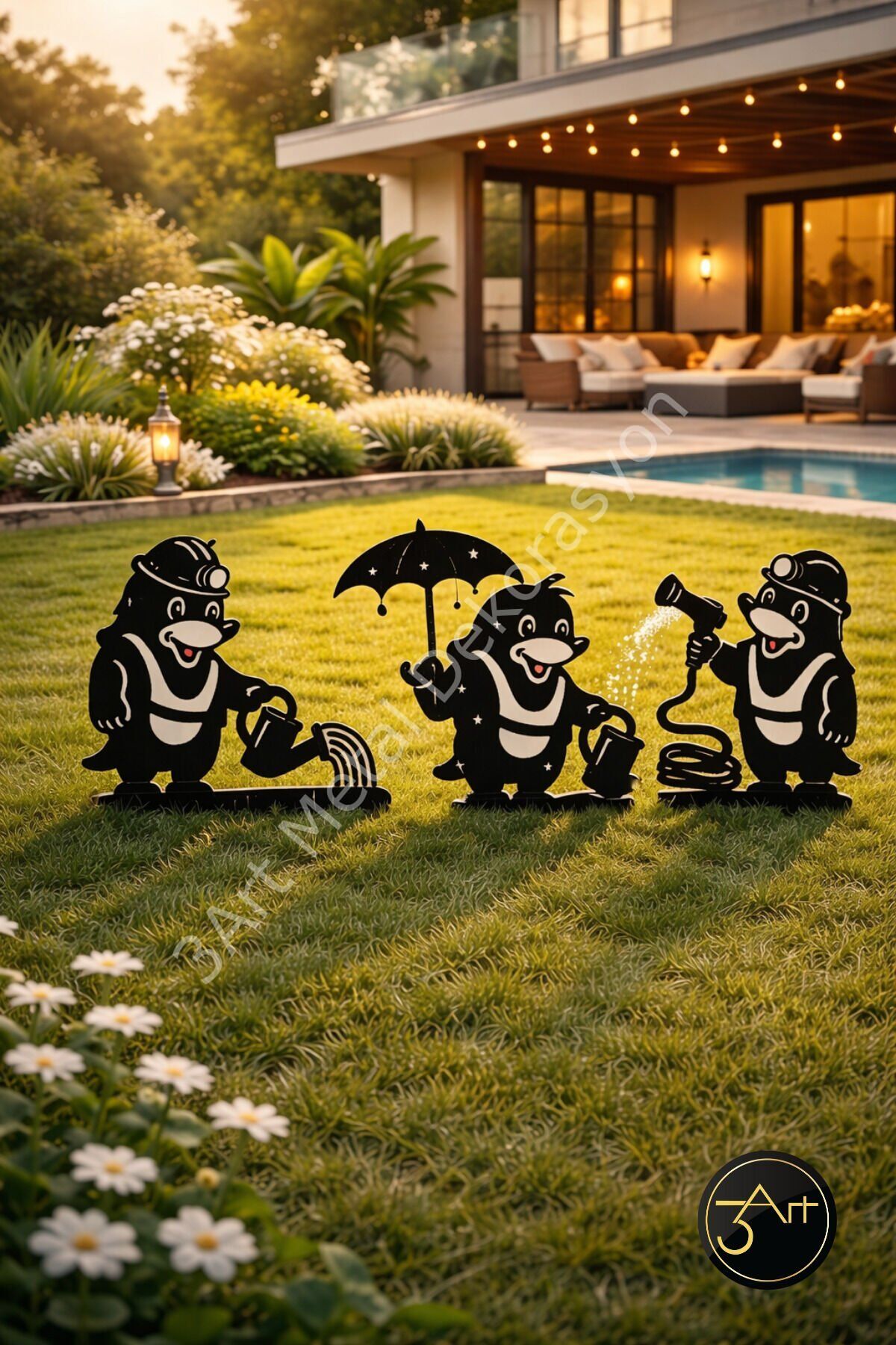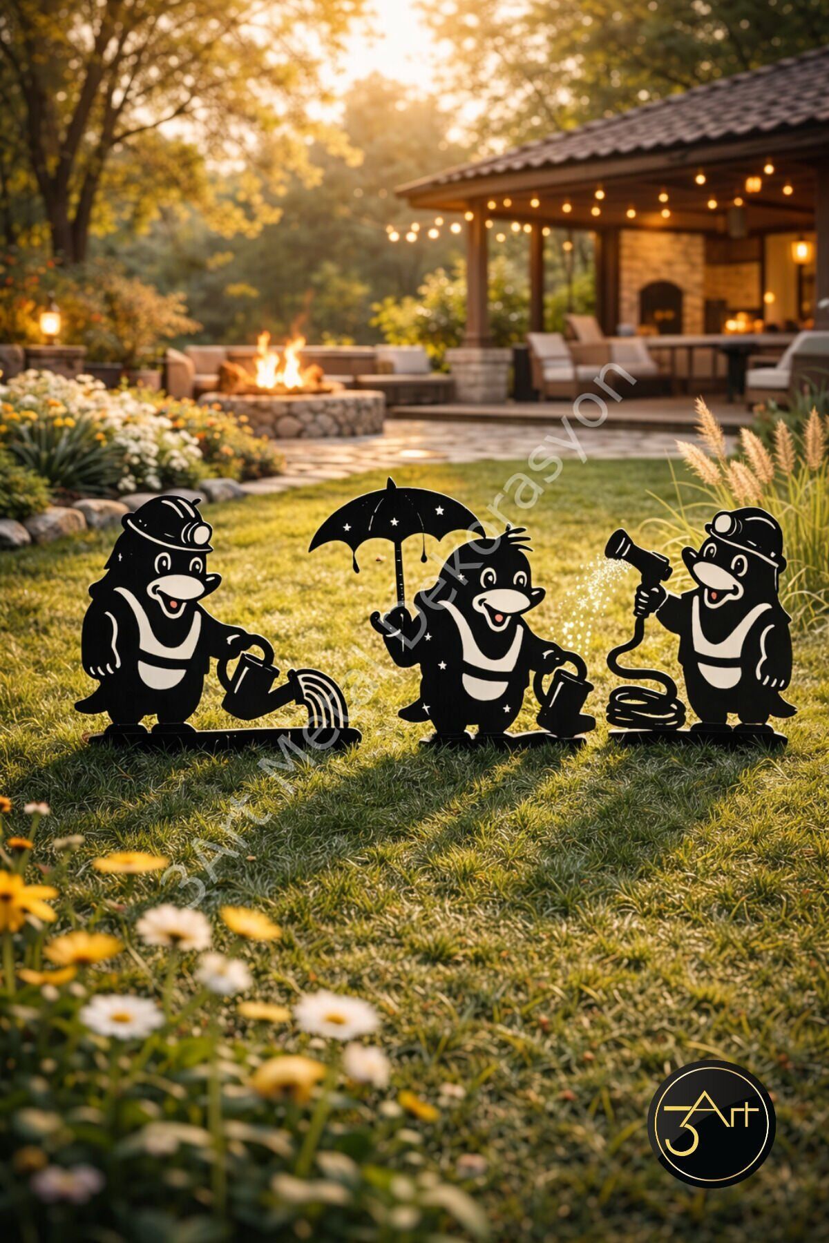 - Modern tasarımıyla dikkat çeken asimetrik şekli, bahçenize şık bir dokunuş katar.; - Dayanıklı metal materyali sayesinde uzun ömürlü kullanım sunar.; - Her biri 25-30 cm uzunluğunda ve 10-15 cm genişliğinde olan bu dekoratif süsler, bahçenizin farklı noktalarında estetik bir görünüm sağlar.; - Kolay bakım imkanı sunan bu ürünler, nemli bir bezle silinerek temizlenebilir.; - Set halinde gelen 3'lü dekorasyon parçası, bahçenize uyumlu bir bütünlük kazandırır.; - Türkiye menşeli olmasıyla yerel üretimden yana bir tercih yapmanızı sağlar.;