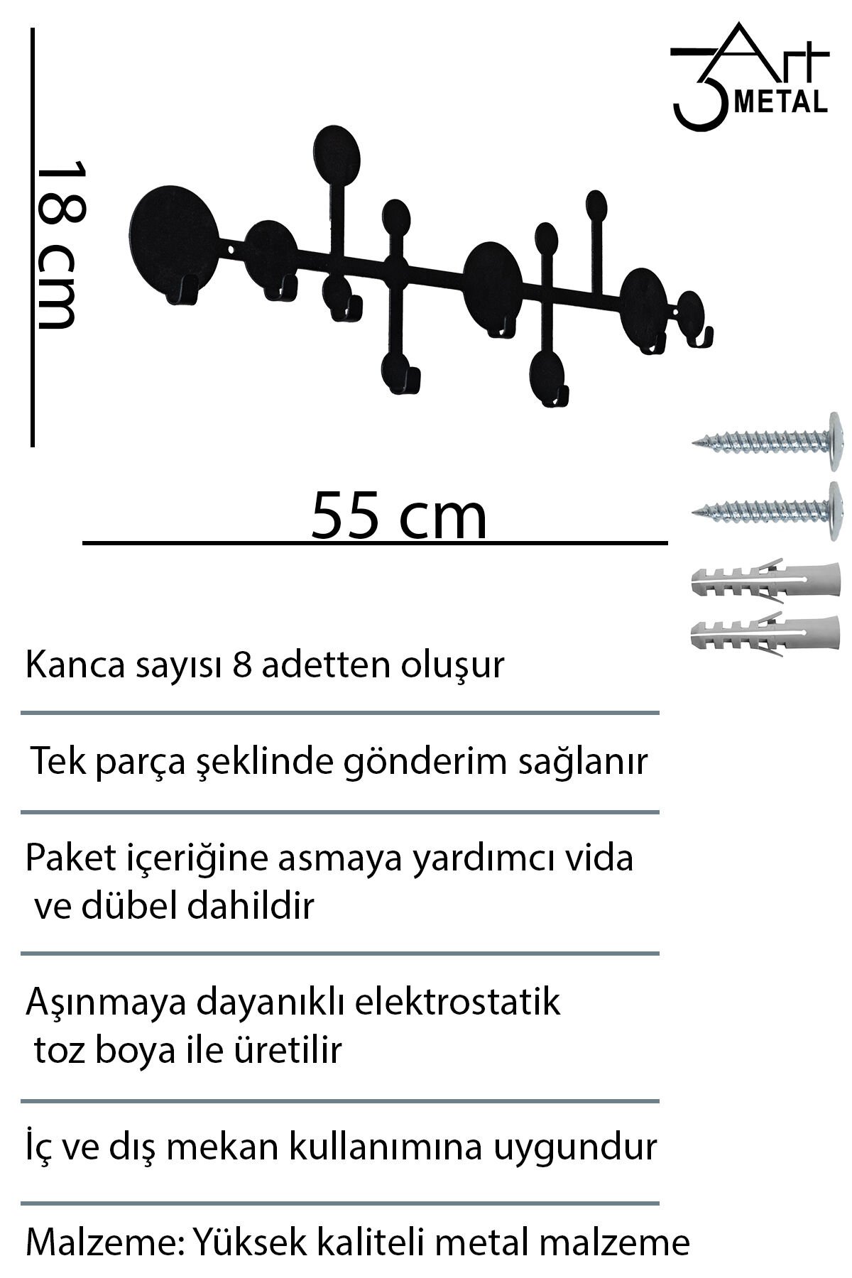 - Tek parça halinde sunulan metal duvar askısı, kolay montaj avantajı sağlar ve mekanınıza şıklık katar.; - Dayanıklı metal materyali sayesinde uzun süreli kullanım için idealdir; paslanmaya karşı dirençlidir.; - Siyah renk seçeneği ile modern ve zamansız bir görünüm elde edilir; farklı dekorasyon stilleriyle uyum içinde olur.; - Siyah web color özelliği, temiz ve sofistike bir estetik sunarak evinizin veya ofisinizin atmosferini zenginleştirir.; - Dayanıklı metal malzeme kullanımı sayesinde uzun ömürlü ve sağlam bir yapı sunar; Modern ve şık tasarımıyla mekanınıza estetik bir dokunuş katar; Kolay montaj imkanı ile pratik kullanım sağlar; duvarlarınıza zarar vermeden asabilirsiniz; Çok yönlü yapısı sayesinde çeşitli eşyalarınızı düzenli bir şekilde saklamanızı kolaylaştırır; -metal duvar askılığı, siyah askılık, banyo havlu askısı, çelik duvar askı, mutfak askılığı, kapı arkası askı, modern askılık, çanta askısı, lazer kesim askı, anahtarlık askılığı, dekoratif duvar askısı, mat siyah metal askılık, organizer askı Genişlik - 55 cm Yükseklik - 16 cm