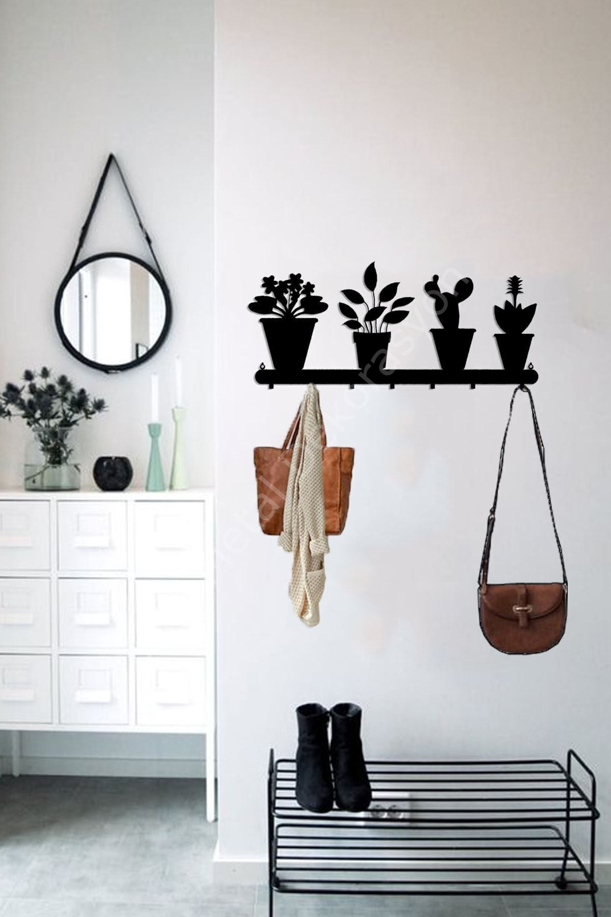 Evinizde şıklığı ve düzeni bir araya getiren 3ART METAL askılıklar ile tanışın! Tamamen mat siyah elektrostatik toz boyalı, lazer kesim teknolojisiyle üretilen bu askılıklar, hem işlevsel hem de dekoratif bir kullanım sunar.; Her bir ürün, yüksek kaliteli metal malzemeden üretilmiş olup, el işçiliği titizliğiyle montaj öncesi kontrol edilmiştir.; Modern ve minimalist tarzda tasarlanan bu metal duvar askılığı, özellikle ev girişlerinde, banyo ve yatak odalarında, çocuk odalarında ya da ofislerde hem kullanışlılık hem de estetik bir dokunuş sağlar.; Geniş kanca yapısıyla mont, çanta, havlu, bornoz, anahtar ve aksesuarlarınızı rahatlıkla taşıyabilir.; Aynı zamanda duvara kolayca monte edilebilen bu ürünler, güçlü yapısı sayesinde uzun ömürlü kullanım sağlar.; ⸻ ⭐ Neden 3ART METAL Askılık? • %100 yerli üretim • Dayanıklı ve uzun ömürlü metal yapı • Şık ve zamansız mat siyah kaplama • Lazer kesim estetiği • Her dekorasyona uyum sağlayan minimalist tasarım • Elde üretilmiş hissi veren detaylar • Kurulum için gerekli vida/dübel dahildir ⸻ metal askılık, duvar askısı, banyo askısı, mat siyah askılık, el yapımı dekoratif askılık, modern portmanto, giriş askılığı, anahtarlık, çocuk odası askısı, trendy askılık, metal ev dekorasyonu, 3art metal, lazer kesim dekoratif askı- Tek parça halinde gelen bu metal duvar askısı, kolay montaj avantajı sunar.; - Dayanıklı metal malzemesi ile uzun ömürlü kullanım vaat eder.; - Siyah renk seçeneğiyle modern ve şık bir görünüm sağlar, mekanınıza estetik bir dokunuş katar.; Dayanıklı metal malzeme kullanımı sayesinde uzun ömürlü ve sağlam bir yapı sunar; Modern ve şık tasarımıyla mekanınıza estetik bir dokunuş katar; Kolay montaj imkanı ile pratik kullanım sağlar; duvarlarınıza zarar vermeden asabilirsiniz; Çok yönlü yapısı sayesinde çeşitli eşyalarınızı düzenli bir şekilde saklamanızı kolaylaştırır; - Siyah web color özelliği sayesinde leke tutmaz ve temizliği kolaydır; böylece her zaman ilk günkü gibi kalır.; -