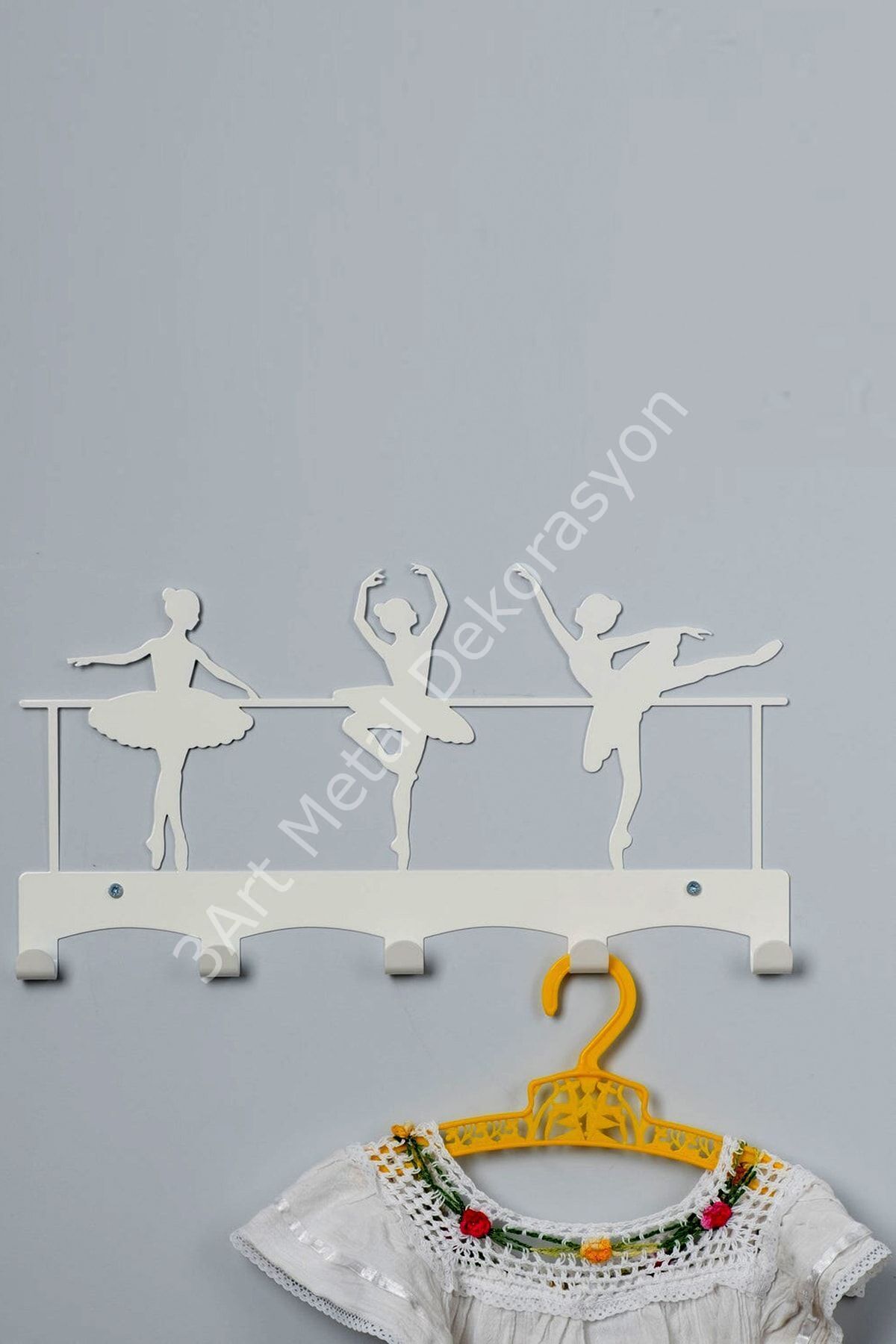 - Modern tasarımıyla dikkat çeken beyaz renkteki duvar askısı, mekanınıza şıklık katar.; - 52 cm genişliğindeki bu dekoratif metal duvar askısı, geniş kullanım alanı sunar.; - 26 cm yüksekliğiyle ideal boyutta olan bu askı, hem fonksiyonel hem de estetik bir görünüm sağlar.; - Duvara monte edilebilir yapısı sayesinde kolayca yerleştirilebilir ve pratik kullanım imkanı tanır.; - Dayanıklı metal materyali ile uzun ömürlü kullanım vaat ederken, modern stil sahibi bale temalı tasarımıyla evinizin atmosferini canlandırır.; -Dayanıklı metal malzeme kullanımı, uzun ömürlü ve sağlam bir yapı sunar; Duvara monte edilebilir tasarımı ile yerden tasarruf sağlar ve mekanınıza modern bir dokunuş katar; Balerin temalı dekoratif tasarımıyla mekanınıza sanatsal bir hava katarken, dekoratif bir aksesuar olarak da işlev görür;
