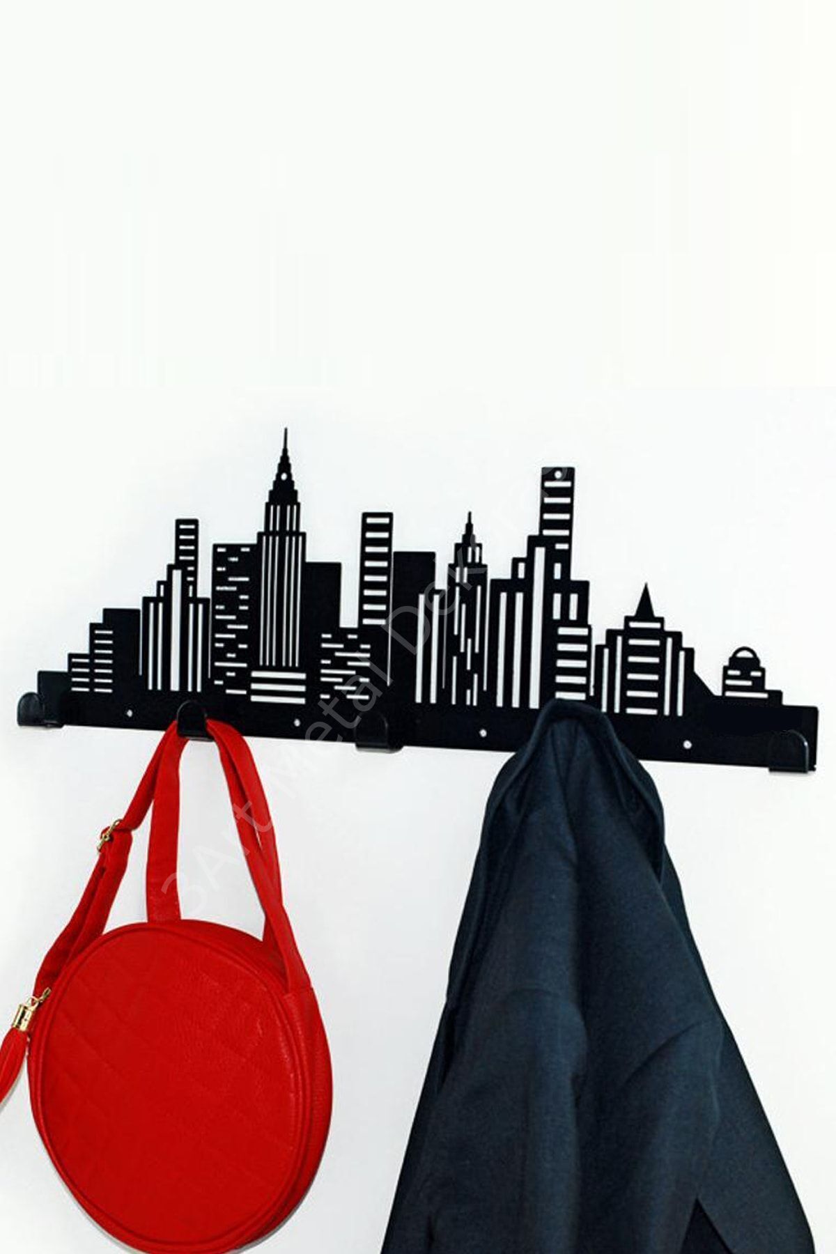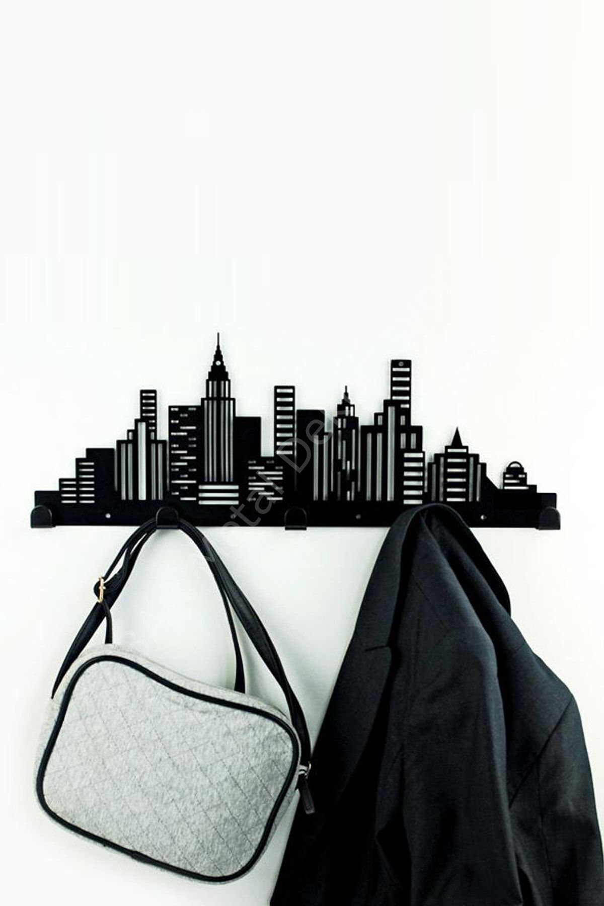- Modern tasarımıyla dikkat çeken siyah renkli duvar askısı, mekanınıza şık bir dokunuş katıyor.; - 50 cm genişliğindeki bu portmanto, geniş kullanım alanı sunarak eşyalarınızı düzenli bir şekilde saklamanızı sağlıyor.; - 20 cm yüksekliğiyle ideal boyutta olan bu metal askı, hem fonksiyonel hem de estetik bir çözüm olarak öne çıkıyor.; - Duvara monte edilebilir yapısı sayesinde kolayca yerleştirilebilen ve pratik kullanım imkanı sunan modern portmanto, günlük yaşamınızda rahatlık sağlıyor.; - Dayanıklı metal materyali ile uzun ömürlü kullanım vaat eden bu askı, kaliteyi ön planda tutuyor.; -Malzeme: Yüksek kaliteli paslanmaz metal ; Ölçüler: Genişlik 50 cm, yükseklik 20 cm ; Kanca sayısı 5 adetten oluşur.; ; Aşınmaya dayanıklı elektrostatik toz boya ile üretilir.; ; Detaylara ve hassas kaynaklara büyük özen gösterilerek yapılmıştır.; ; Tek parça şeklinde gönderim sağlanır.; ; Paket içeriğine asmaya yardımcı vida ve dübel dahildir.; ; İç ve dış mekan kullanımına uygundur.; -metal duvar askılığı, siyah askılık, banyo havlu askısı, çelik duvar askı, mutfak askılığı, kapı arkası askı, modern askılık, çanta askısı, lazer kesim askı, anahtarlık askılığı, dekoratif duvar askısı, mat siyah metal askılık, organizer askı
