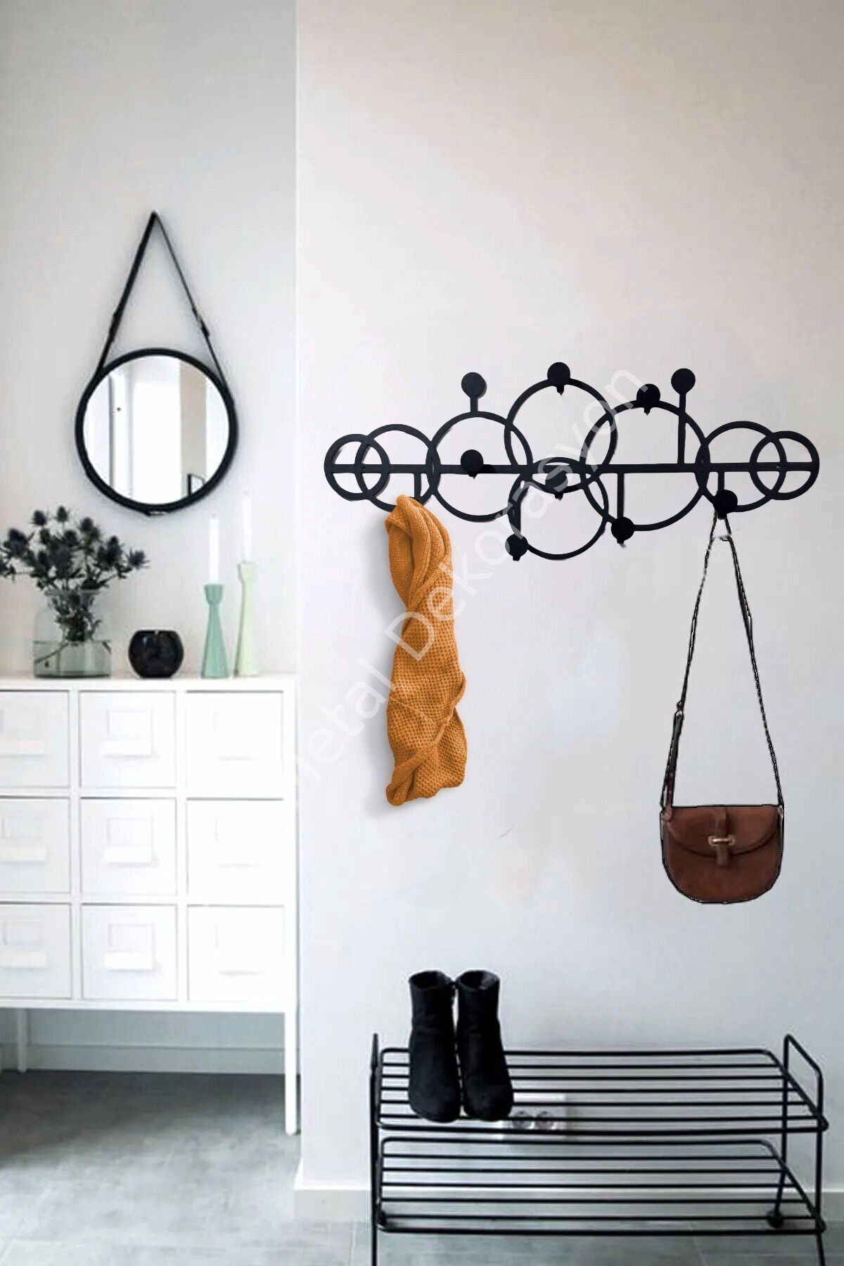 - Modern tasarımıyla dikkat çeken bu metal duvar askısı, siyah rengiyle her türlü dekorasyona kolayca uyum sağlar.; - Dayanıklı metal malzemesi sayesinde uzun ömürlü kullanım sunar ve sık kullanıma karşı dirençlidir.; - 55 cm genişliği ve 23 cm yüksekliği ile geniş rafları sayesinde eşyalarınızı düzenli bir şekilde saklamanız için idealdir.; - Duvara monte edilebilir yapısı ile pratik kullanım imkanı sunar; montaj gerektiren bu askı, kolayca asılabilir.; - Tek ebat seçeneğiyle standart boyutlardaki eşyalarınız için mükemmel uyumu yakalar ve mekanınıza modern bir dokunuş katar.; - Modern tasarımıyla dikkat çeken bu metal duvar askısı, siyah rengiyle her türlü dekorasyona kolayca uyum sağlar.; - Dayanıklı metal malzemesi sayesinde uzun ömürlü kullanım sunar ve sık kullanıma karşı dirençlidir.; - 55 cm genişliği ve 23 cm yüksekliği ile geniş rafları sayesinde eşyalarınızı düzenli bir şekilde saklamanız için idealdir.; - Duvara monte edilebilir yapısı ile pratik kullanım imkanı sunar; montaj gerektiren bu askı, kolayca asılabilir.; - Tek ebat seçeneğiyle standart boyutlardaki eşyalarınız için mükemmel uyumu yakalar ve mekanınıza modern bir dokunuş katar.