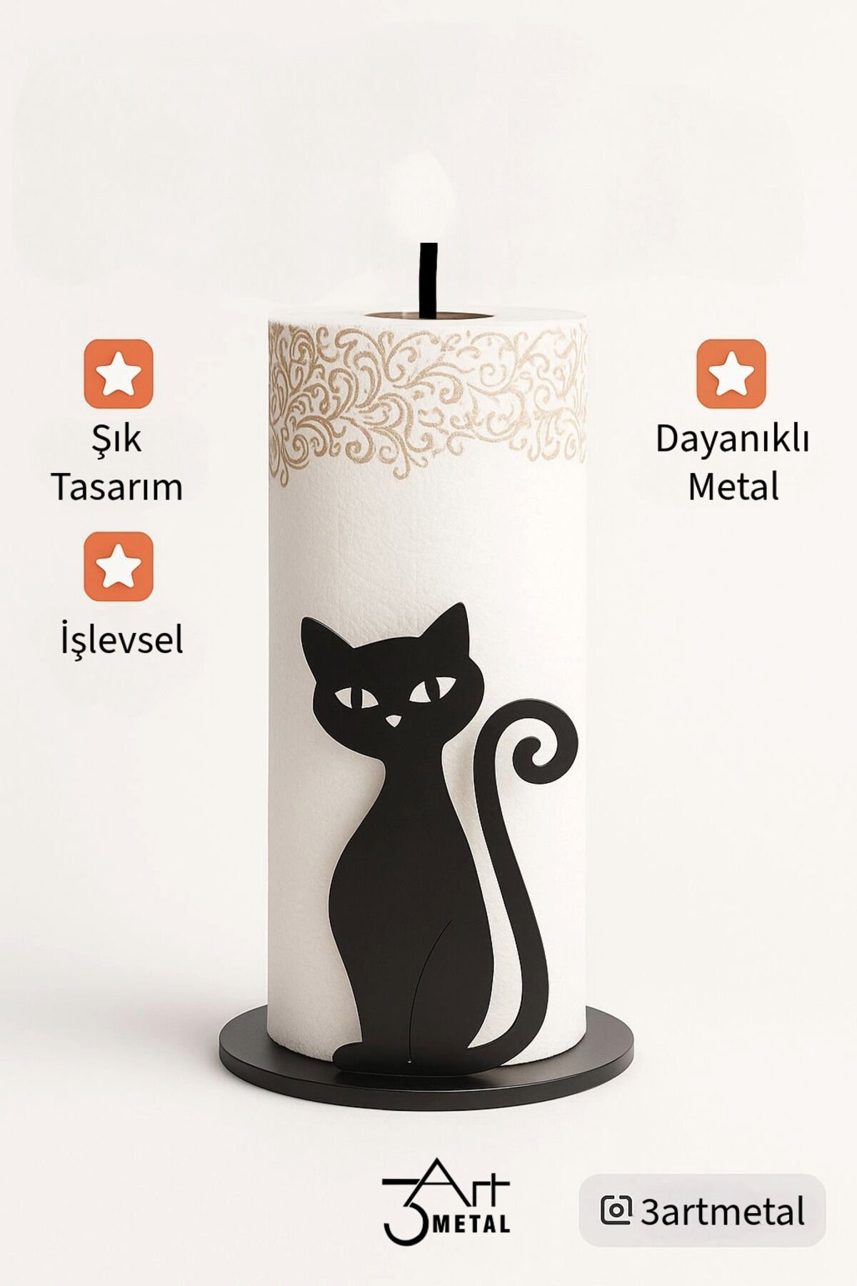 - Şık tasarımıyla banyonuza modern bir dokunuş katan dekoratif metal kağıt havluluk.; - Siyah renk seçeneğiyle her türlü banyo dekorasyonuna kolayca uyum sağlar.; - Nemli bir bez ile kolayca temizlenebilir; pratik kullanım sunar.; - Üretici firması 3art Metal Dekorasyon tarafından kalite standartlarına uygun üretilmiştir.; - Şık tasarımıyla banyonuza modern bir dokunuş ekleyen dekoratif metal kağıt havluluk, günlük kullanımınızda pratiklik sağlar.; - Nemli bir bezle kolayca temizlenebilme özelliği sayesinde hijyenik bir ortam korumanıza yardımcı olur.; - Kağıt havlularınızı düzenli tutmak için ideal olan bu peçetelik, banyonuzda şıklığı ve işlevselliği bir arada sunar.; - Üretiminde kullanılan kaliteli malzemeler ile uzun ömürlü kullanım vaat eder; böylece sık sık değiştirme derdi olmadan rahatça kullanabilirsiniz.; - Yurt içinde üretilmiş olmasıyla yerel ekonomiye katkıda bulunurken aynı zamanda çevreye duyarlı bir tercih yapmış olursunuz.; , .; Peçetelik .; Kağıt Havlu Askısı .; Banyo Askısı : Havluluk