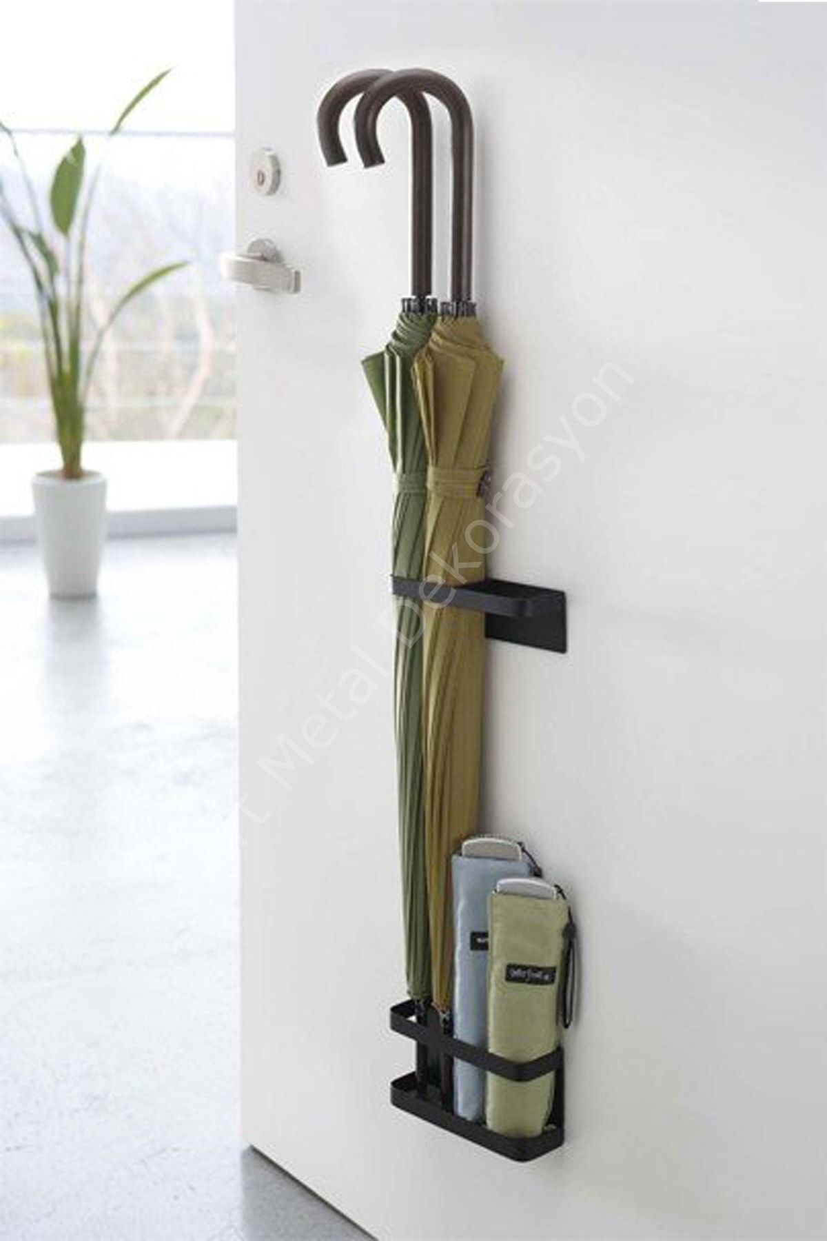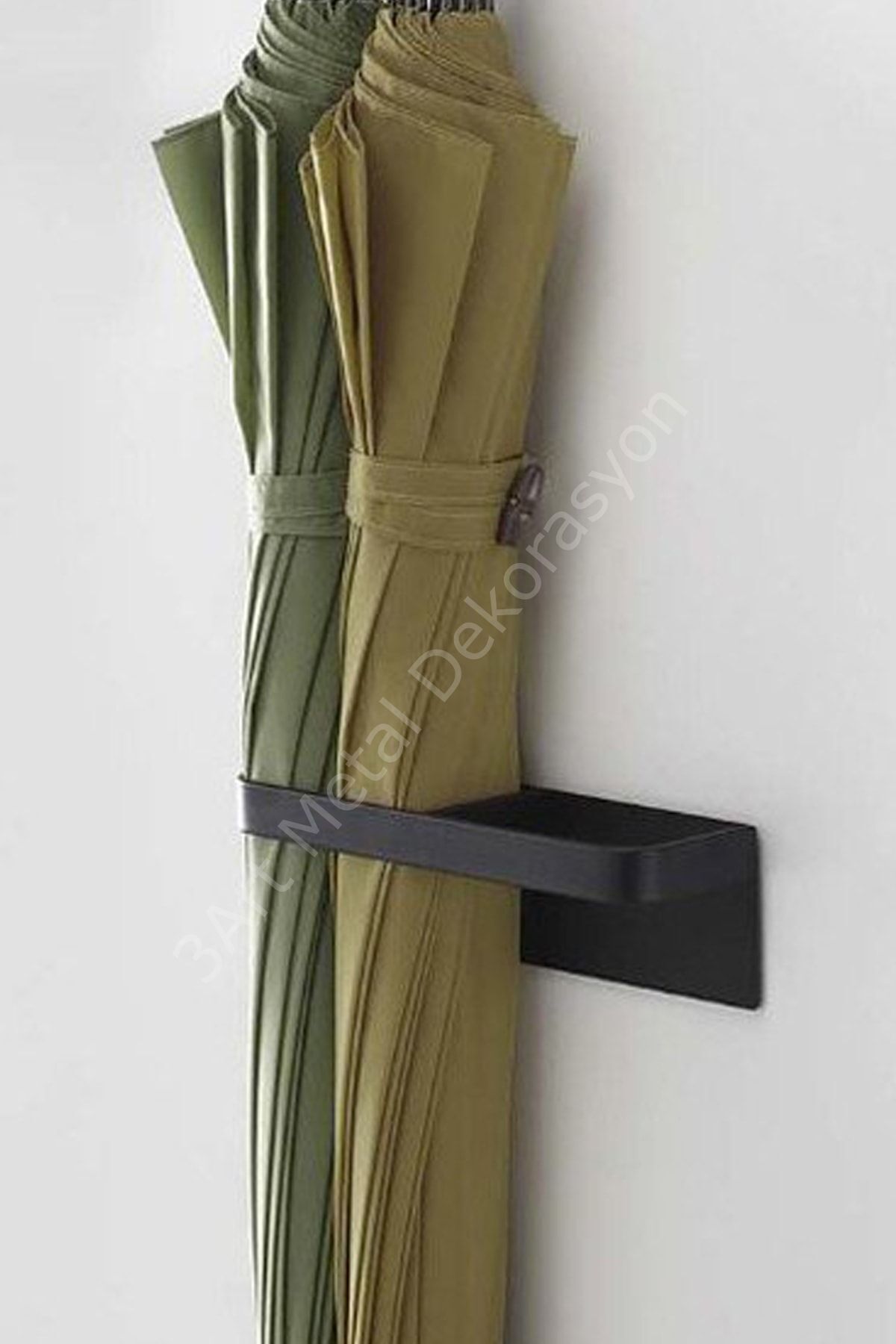 Dayanıklı metal malzeme kullanımı, uzun ömürlü ve sağlam bir yapı sunar; Duvara monte edilebilir tasarımı sayesinde yerden tasarruf sağlar ve şık bir görünüm kazandırır; Modern stil, evinizin dekorasyonuna çağdaş bir dokunuş ekler; Metal raf özelliği ile şemsiyelerinizi düzenli ve kolayca erişilebilir tutar;