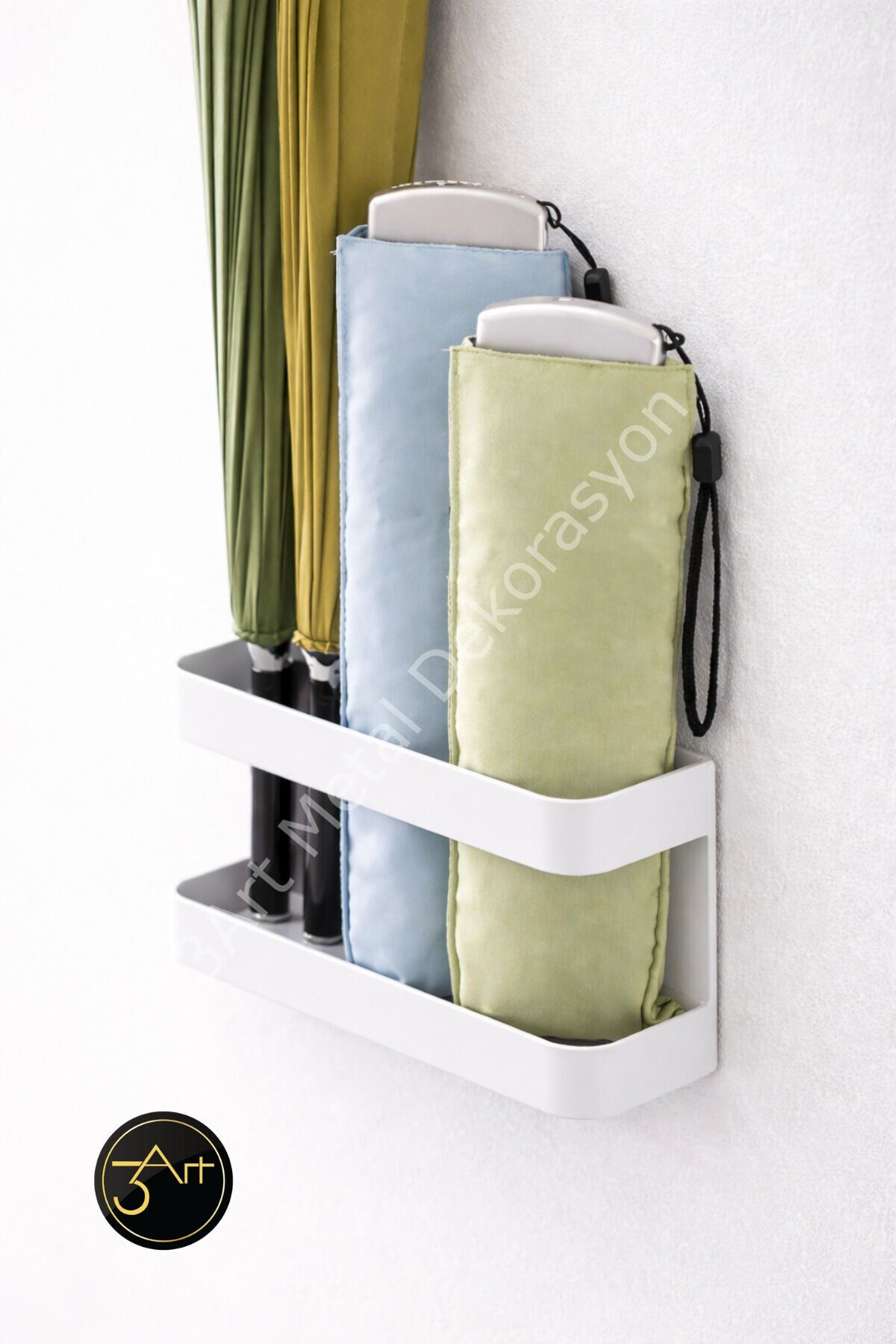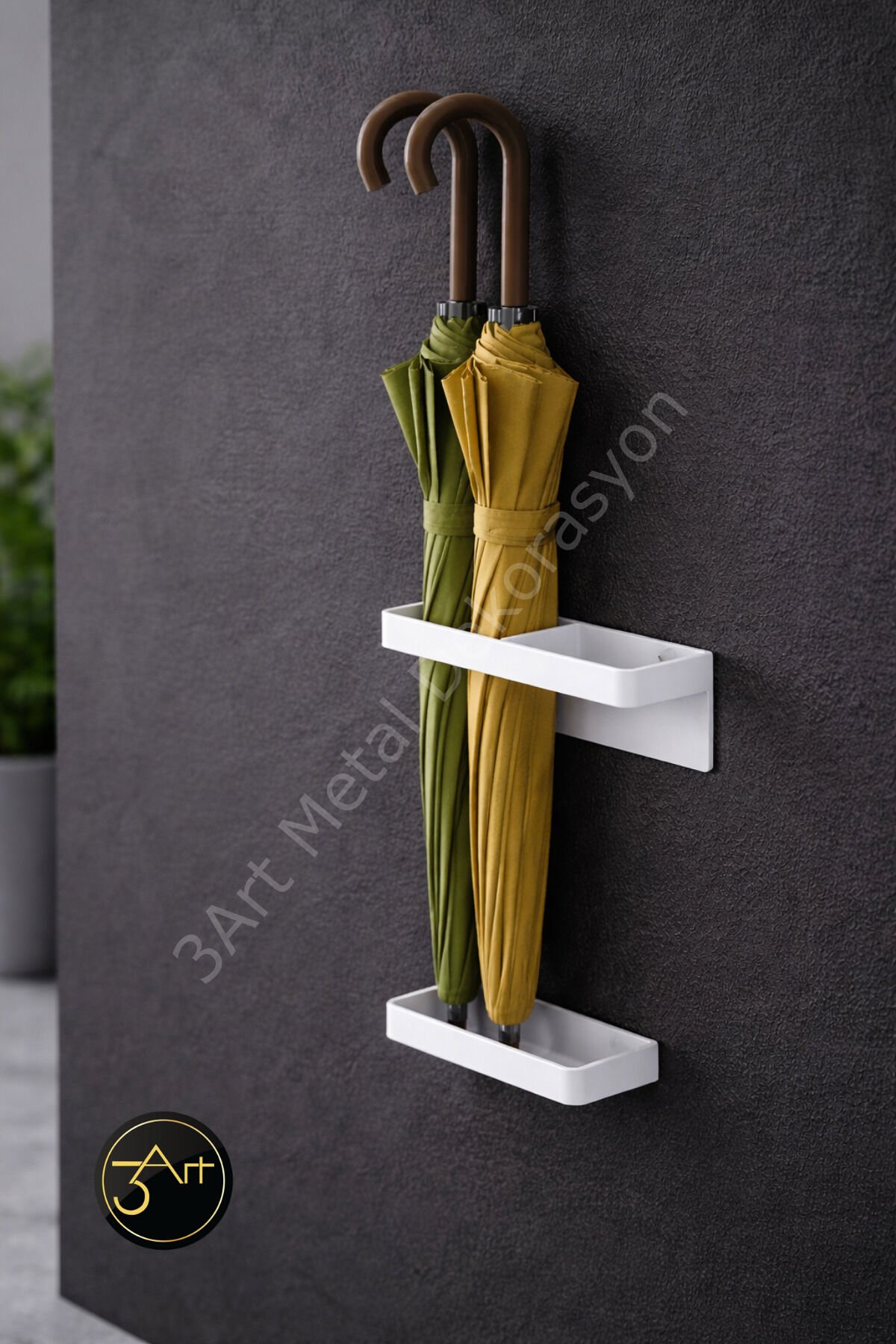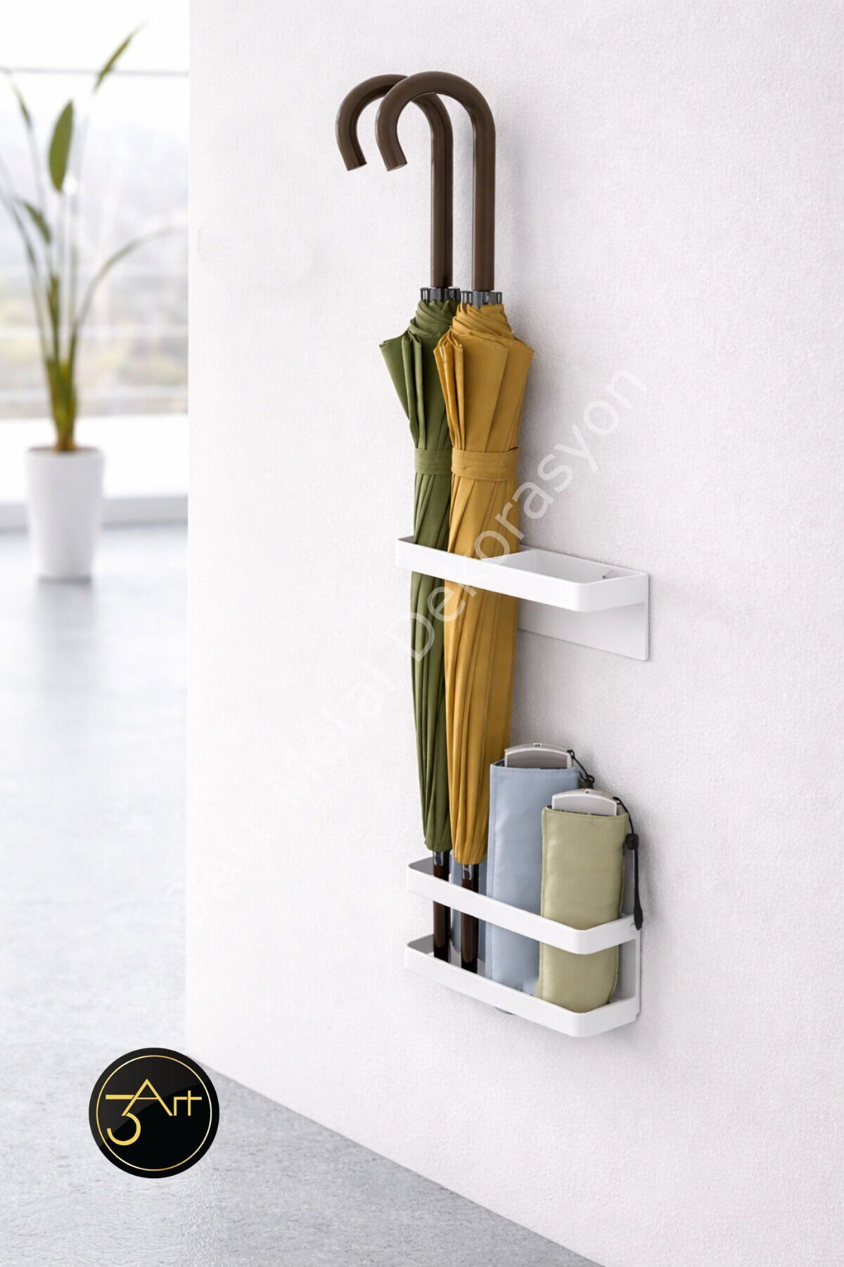 Dayanıklı metal malzeme kullanımı, uzun ömürlü ve sağlam bir yapı sunar; Duvara monte edilebilir tasarımı sayesinde yerden tasarruf sağlar ve şık bir görünüm kazandırır; Modern stil, evinizin dekorasyonuna çağdaş bir dokunuş ekler; Metal raf özelliği ile şemsiyelerinizi düzenli ve kolayca erişilebilir tutar;