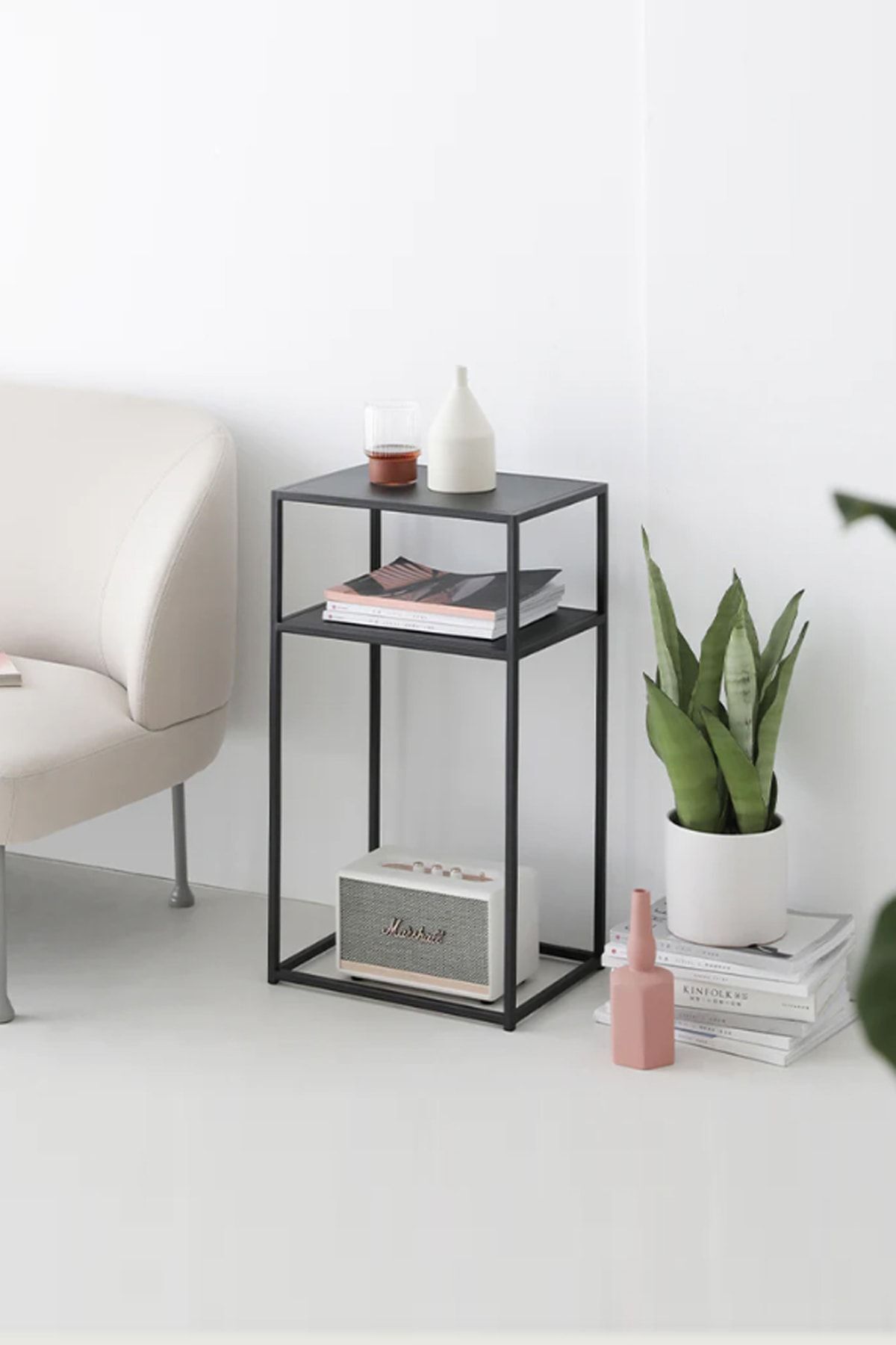 - Tek parça halinde gelen bu yan sehpa, kolay montaj avantajı sunar ve ekstra parçalarla uğraşmanıza gerek kalmaz; - Dikdörtgen tasarımı sayesinde geniş kullanım alanı sağlar ve kitaplarınızdan kahve fincanlarınıza kadar her türlü eşyanızı rahatça yerleştirebilirsiniz; - Modern stil sahibi olan bu metal yan sehpa, evinizin dekorasyonuna şık bir dokunuş katar; - Dayanıklı metal materyali sayesinde uzun ömürlü ve sağlam bir yapıya sahiptir; böylece sık kullanımlarda bile formunu korur;