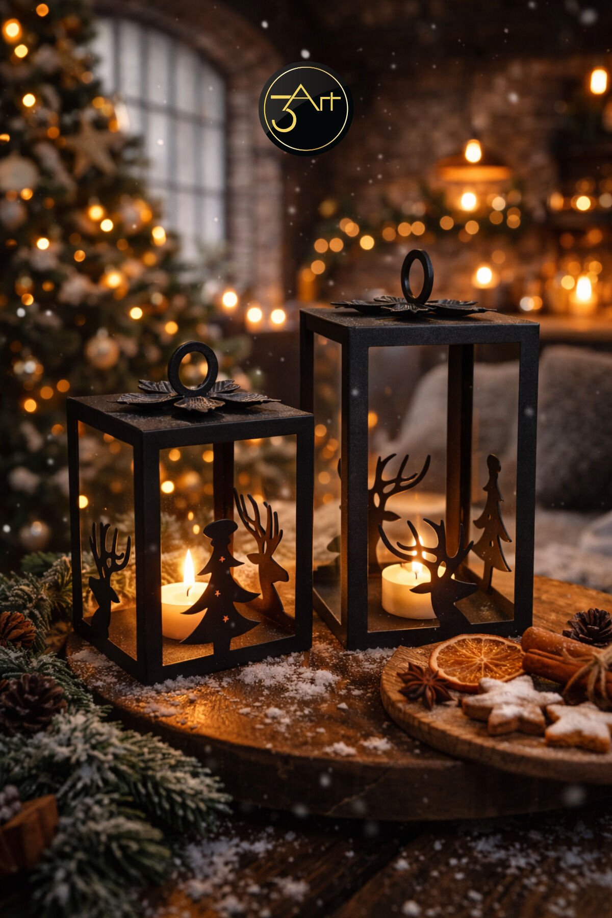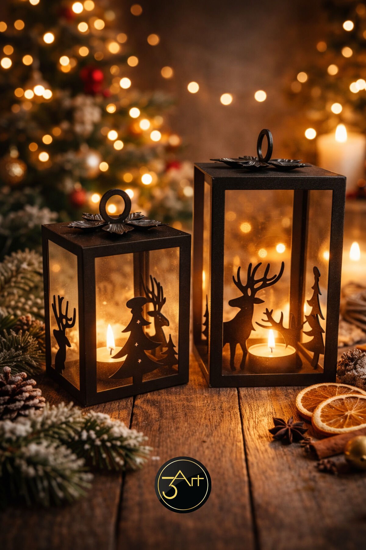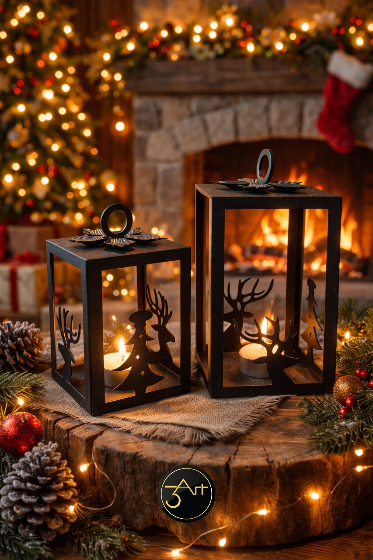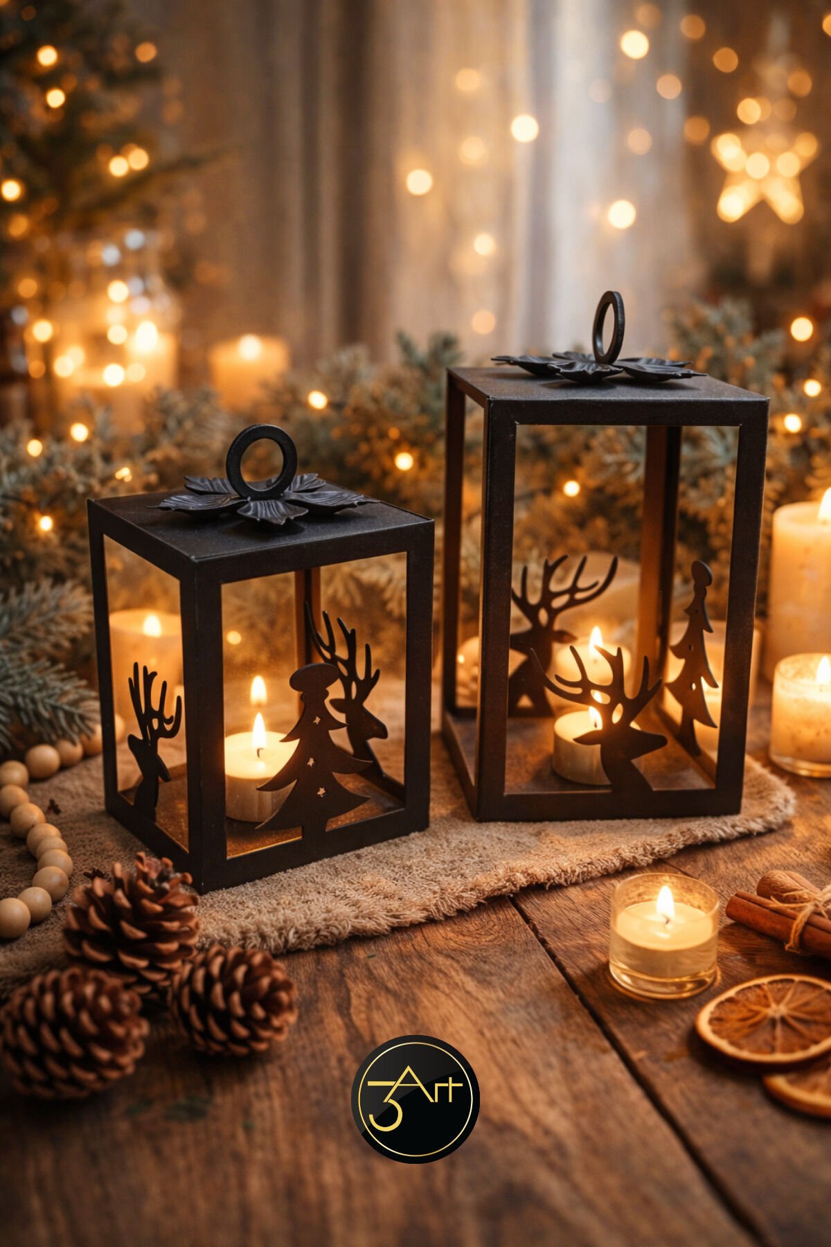 - Modern ve rustik tasarımıyla ev dekorasyonunuza şıklık katan geyik ve ağaç figürlü siyah fener mumluk seti.; - 13 x 21 cm boyutlarındaki bu set, hem küçük hem de büyük mekanlar için ideal bir dekoratif dokunuş sağlar.; - Türkiye'de üretilmiş olup, yerel işçiliğin kalitesini ve özgünlüğünü evinize taşır.; - Dayanıklı metal materyali sayesinde uzun ömürlü kullanım sunar ve kolayca temizlenebilir.; - İki parçadan oluşan set, farklı boyutlardaki mumlarla uyumlu olacak şekilde tasarlanmıştır; böylece dekoratif bir bütünlük sağlar.;