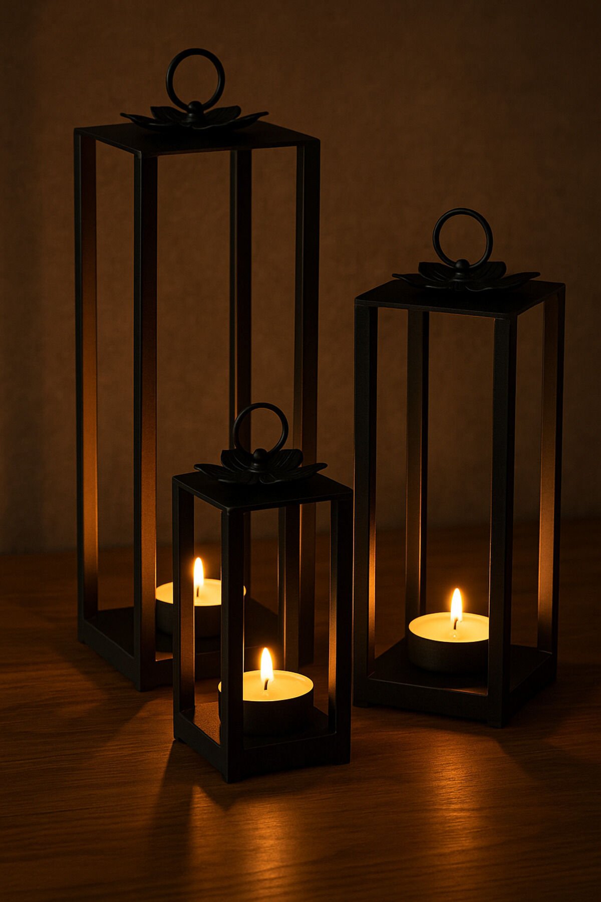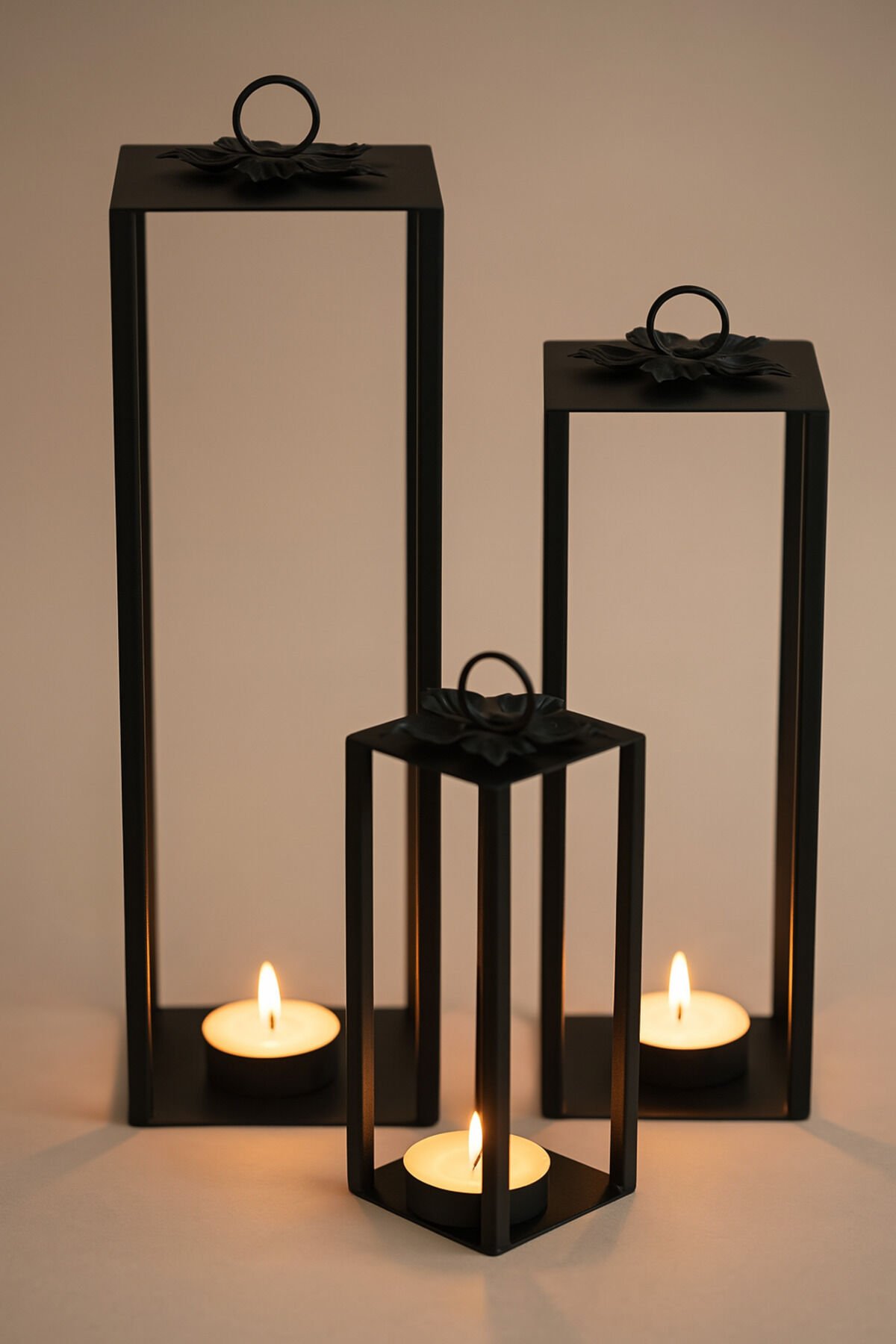 3artmetal 3'lü Mum Feneri ile bir mum veya LED mumunu kolayca takın ve evinizin herhangi bir yerinde sıcak davetkar bir parıltı yaratın.; ; Kolay asma halkası ile asılabilir veya düz bir zeminde kullanılabilir.; Masalar, barlar, teraslar ve çiftlik evi gibi birçok farklı stil için harika bir ev dekoru vurgusu yapar.; ; Zarif bir güzellik ve pratiklik ile evinizdeki her alana muhteşem bir dokunuş katar, vintage dekoratif Mum Feneri eski dünya cazibesinin bir havasını yaratır.; ; Malzemeler: Yüksek kaliteli paslanmaz metal ve demir profil ayaklar ; Ürün Ölçüleri: Büyük olan 46x18 cm, orta boy 35x14 cm, küçük boy 19x10 cm ; Aşınmaya dayanıklı elektrostatik siyah toz boya ile kaplanır.; ; Detaylara ve hassas kaynaklara büyük özen gösterilerek yapılmıştır.; ; Her ürün tek parça halinde gönderim sağlanır.; ; Tamamen el yapımıdır.; ;