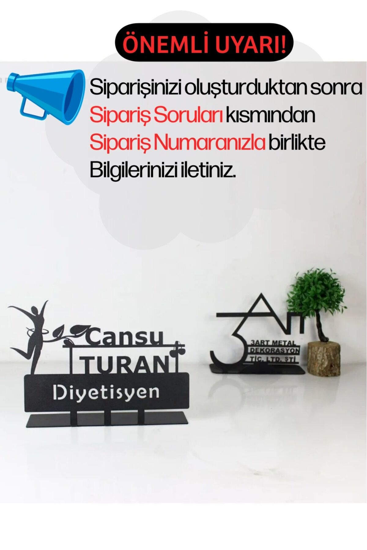 - Şık ve profesyonel görünümüyle dikkat çeken siyah renkli metal masa isimliği, ofis veya çalışma alanınıza modern bir dokunuş katar.; - Kişisel kullanım için ideal olan bu isimlik, diyetisyenlerin adlarını kolayca tanımlayabilmesini sağlayarak iş verimliliğini artırır.; - 20 x 20 cm boyutlarındaki kompakt tasarımı sayesinde masanızda fazla yer kaplamaz ve pratik bir şekilde kullanılır.; - Dayanıklı malzemeden üretilmiş olup uzun süreli kullanım için uygundur; böylece sık değiştirme ihtiyacını ortadan kaldırır.