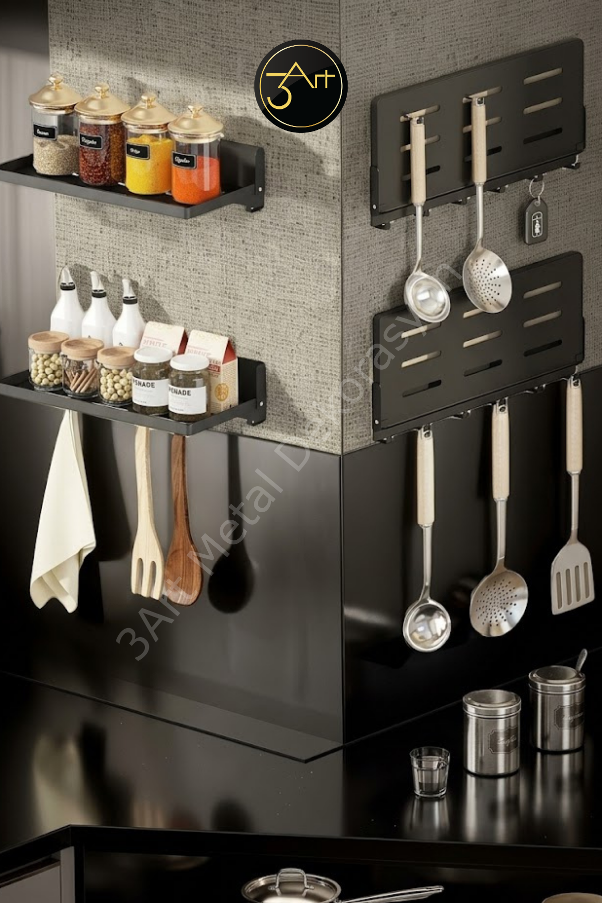 Mutfak düzeninizi şık ve fonksiyonel hale getirin! Bu Duvar Rafı Organizer Seti, askılı kaşıklık ve bardak askısıyla hem alan kazandırır hem de modern tasarımıyla mutfağınıza estetik katar. Dayanıklı malzeme ve pratik kullanım sayesinde her zaman elinizin altında organize bir mutfak sağlar.