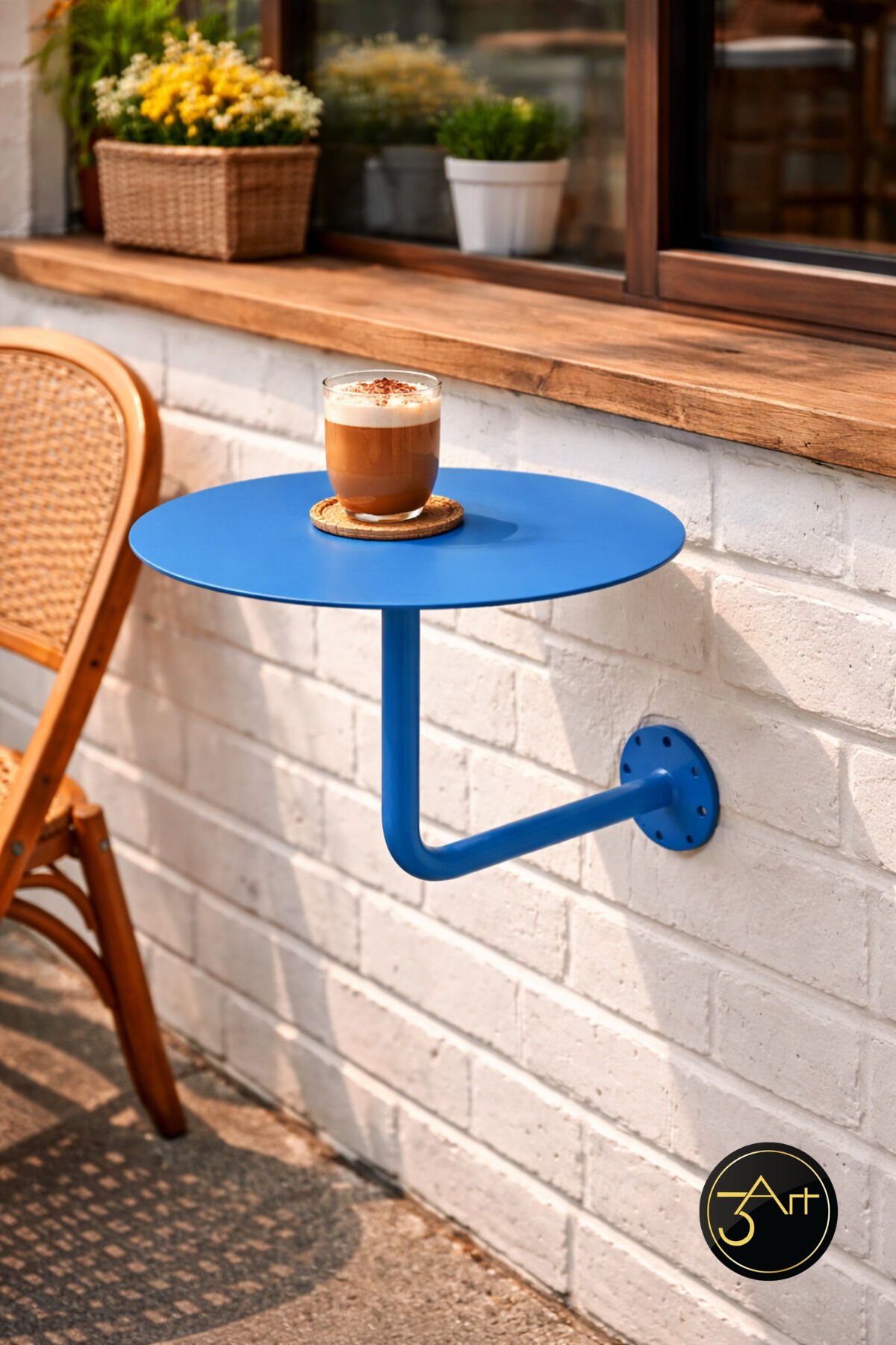 - Modern tasarımıyla balkonlarınıza şıklık katan oval şekilli kafe masası.; - Dış mekan kullanımına uygun, dayanıklı metal materyalden üretilmiştir.; - Duvara monte edilebilir yapısı sayesinde yerden tasarruf sağlar ve kullanım kolaylığı sunar.; - 40 cm çapındaki yuvarlak masa üstü, küçük alanlar için idealdir.; - Türkiye'de üretilmiş olup, yerel üretim kalitesini yansıtır