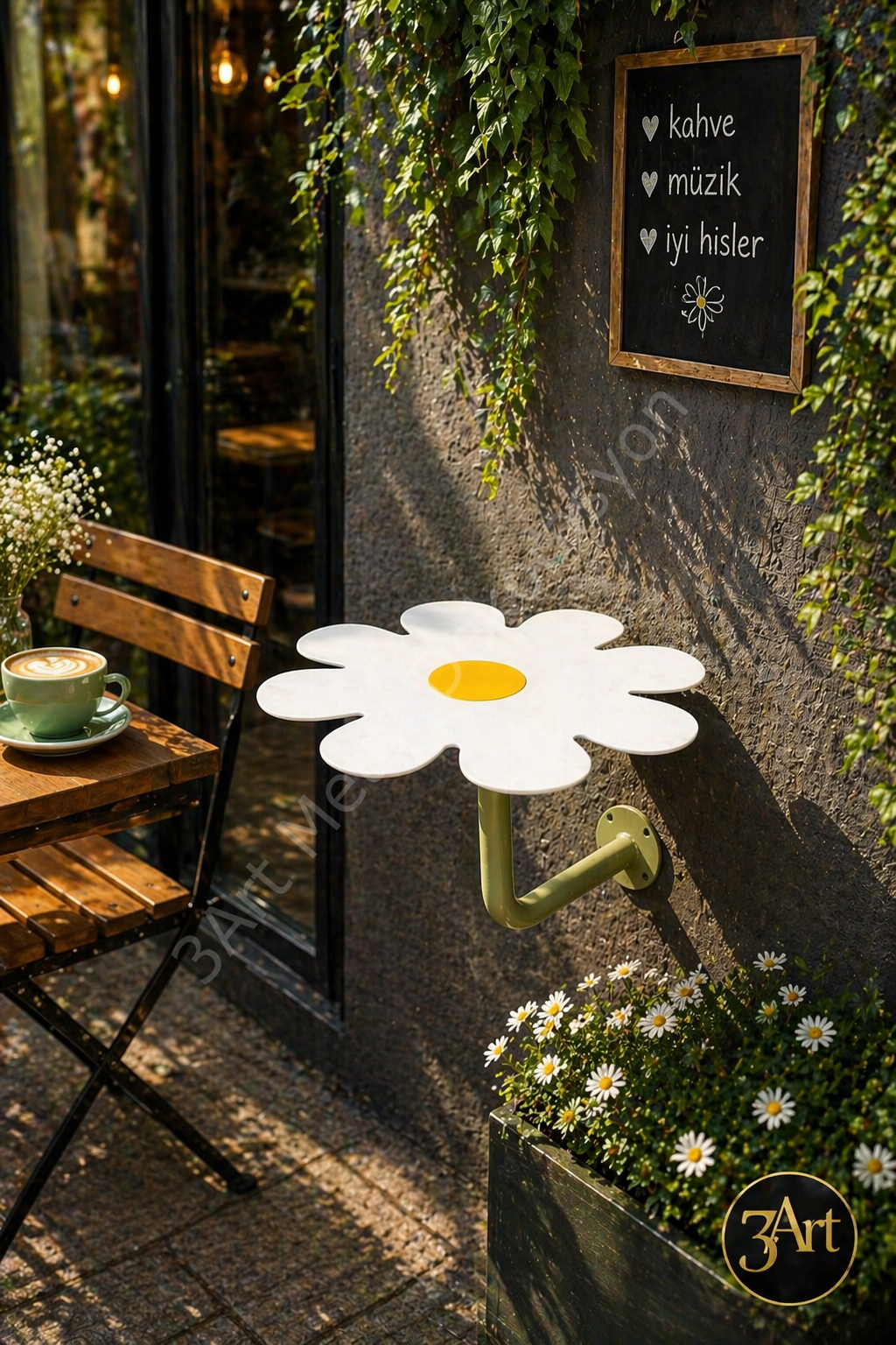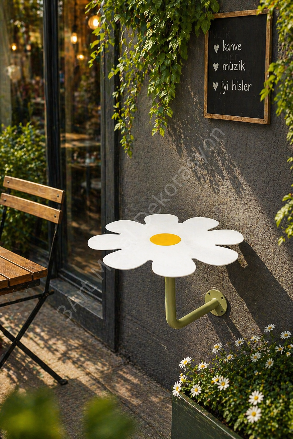 Duvara monte papatya sehpa, küçük alanlar için ideal modern bir çözümdür. Mini balkonlarda veya kafe köşelerinde kullanıma uygun, şık ve fonksiyonel tasarımıyla alan tasarrufu sağlar. Çay ve kahve keyfinizi pratik ve dekoratif şekilde yaşamak isteyenler için mükemmeldir.
