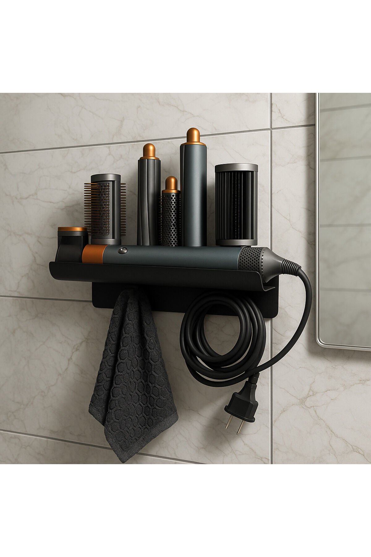 Dyson Airwrap Saç Şekillendirici Standı / Banyo Askısı Özel tasarımı sayesinde duvara monte edebileceğiniz bir üründür; İsterseniz arkasındaki yapışkan ile yapıştırabilir isterseniz duvara vidalayabilirsiniz; İçerisinde vida ve dübelleri mevcuttur; Suya Dayanıklıdır; Elektrostatik Fırınlı Boyadır , Antrasit renktir; İstediğiniz alanda kullanabilirsiniz; Banyo, yatak odası, giyinme odası vs; Cihaz aksesuarlarının kalabalığından kurtaran şık ve portatif bir üründür; Bu bir standdır; Görseldeki aksesuarlar vs dahil değildir; Dyson Airwrap Saç Şekillendirici Cihaz ve aksesuarlar için tasarlanmıştır; Ölçüleri resimde mevucttur; ;;