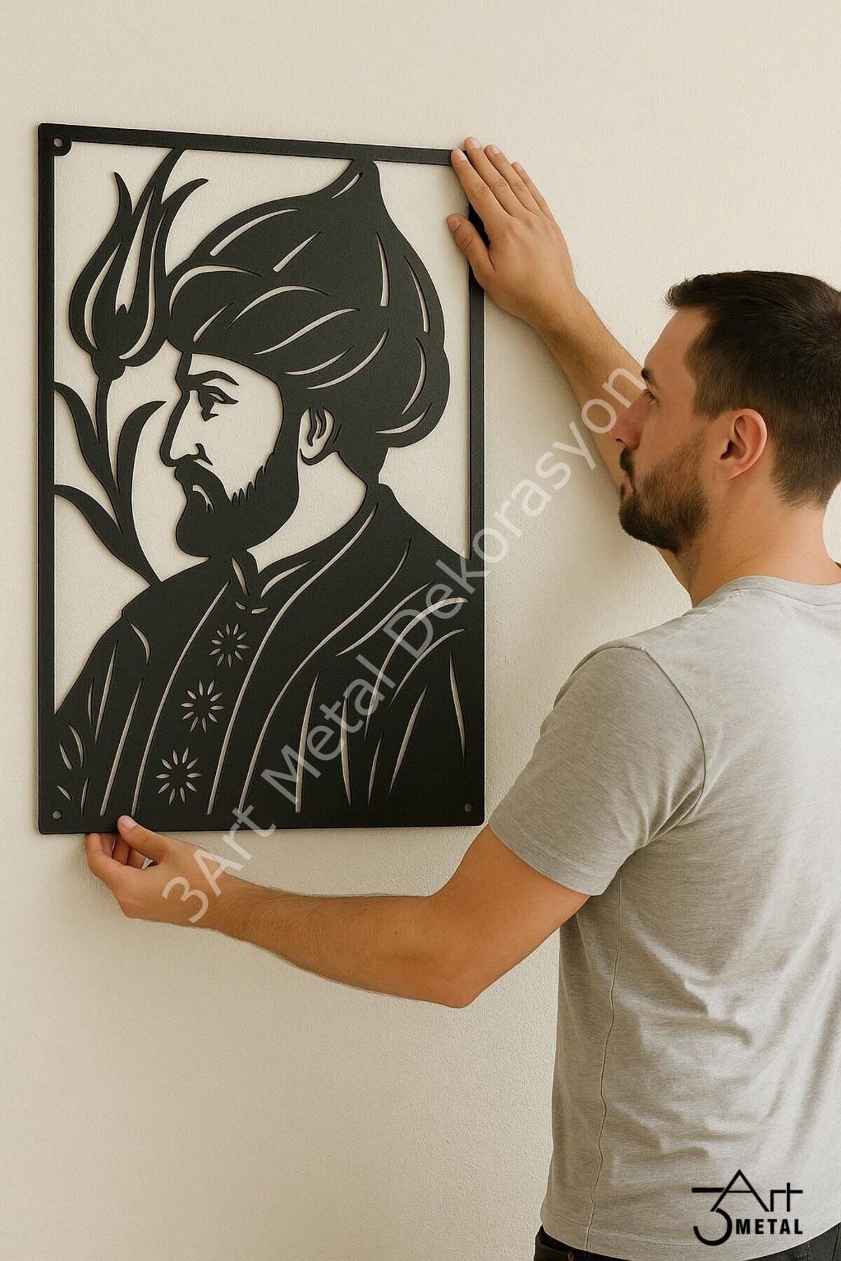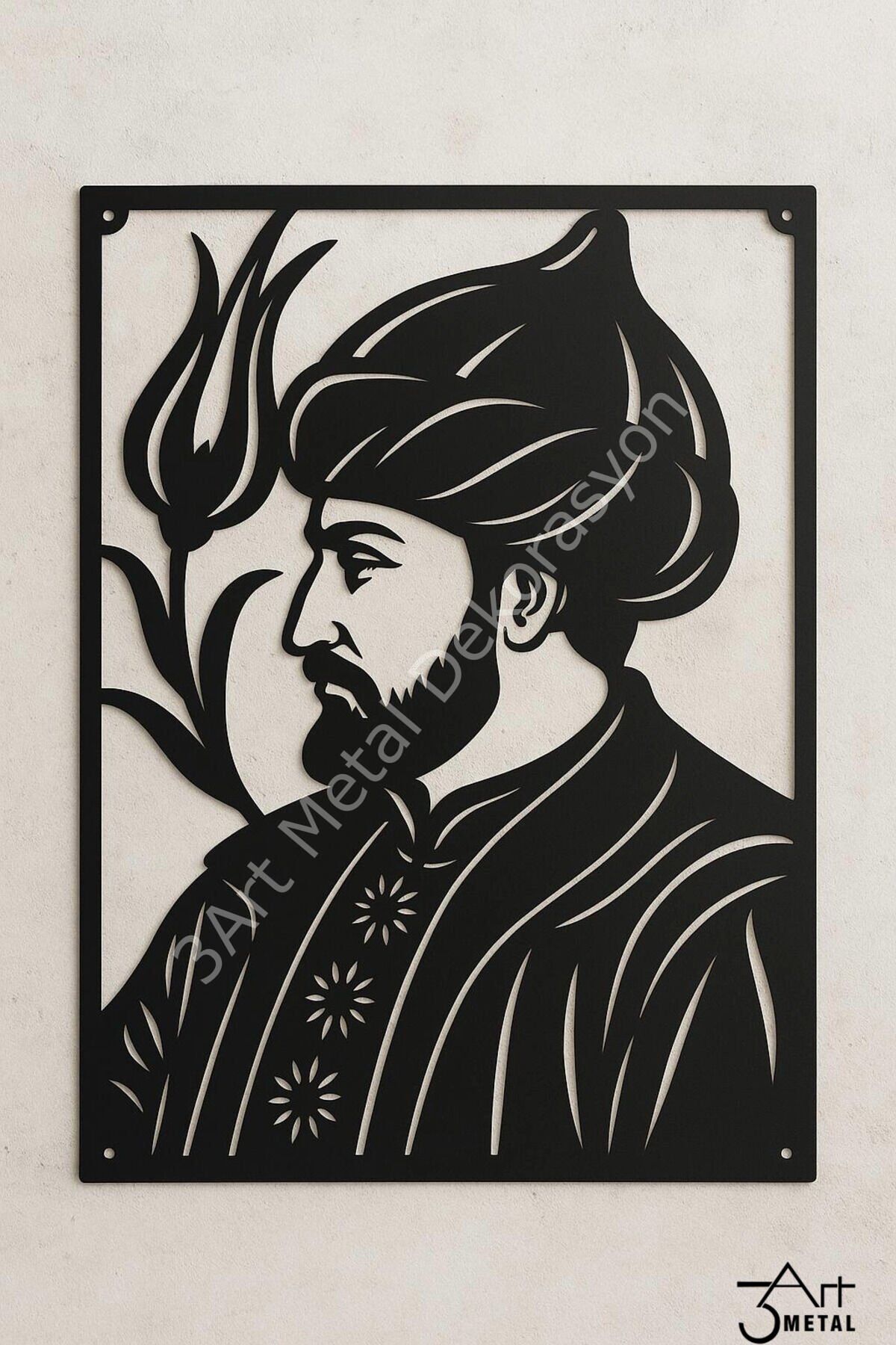 - Fatih Sultan Mehmet'in siluetini konu alan bu metal tablo, kültürel mirasımızın önemli bir sembolünü evinizin duvarlarına taşıyor.; - Lazer kesim teknolojisiyle üretilen bu sanat eseri, yüksek kaliteli malzemeler kullanılarak uzun ömürlü bir kullanım sunuyor.; - Mat siyah renk seçeneğiyle modern ve şık bir görünüm sergileyen bu tablo, her türlü iç mekan dekorasyonuna kolayca uyum sağlıyor.; - 35 x 50 cm boyutlarındaki bu parça, standart bir çerçeve ile birlikte gelerek duvarınızda estetik bir bütünlük oluşturuyor.; - Üreticisi 3Art Metal Dekorasyon olan bu ürün, Türkiye'de tasarlanmış olup yerel sanatçıların yeteneklerini yansıtmaktadır.; - Nemli bir bezle temizlenebilen yüzeyi sayesinde pratik bakım imkanı sunan bu tablo, günlük yaşamınıza kolaylık katıyor.; , , , , , - Fatih Sultan Mehmet'in siluetini konu alan bu metal tablo, kültürel mirasımızı evinizin duvarlarına taşıyor.; - Mat siyah renkteki yüzeyi ile modern ve şık bir görünüm sunar, mekanınıza sofistike bir dokunuş katar.; - 35 x 50 cm boyutlarındaki bu eser, standart çerçevesiyle kolayca monte edilebilir ve duvarınızda estetik bir uyum sağlar.; - Üreticisi 3Art Metal Dekorasyon olan bu ürün, kaliteli malzeme kullanımıyla uzun ömürlü kullanım vaat ediyor.; - Lazer kesim teknolojisi sayesinde detaylarda mükemmel işçilik sergileyen bu tablo, sanatsal değeriyle dikkat çeker.