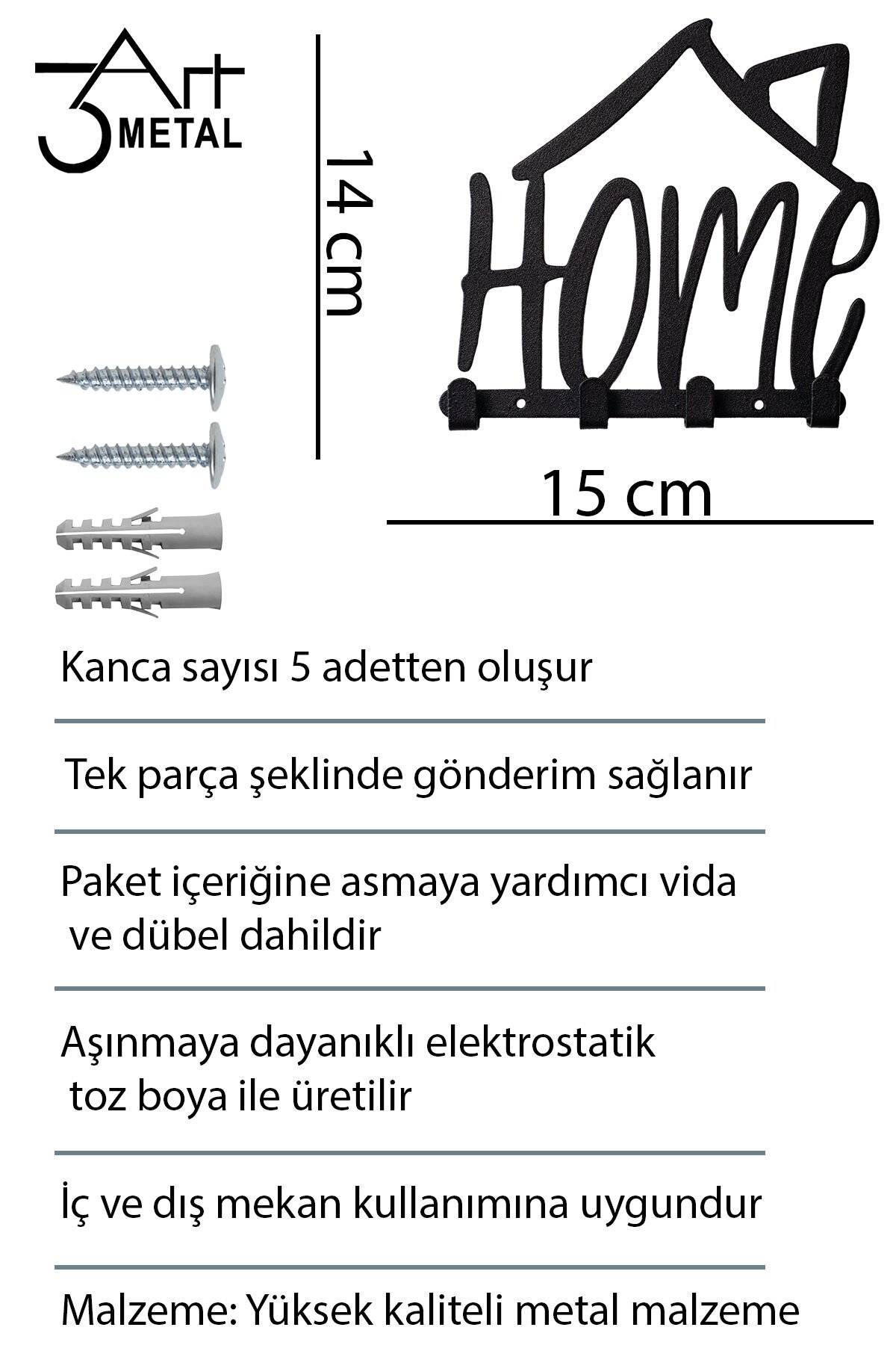 Evinizde şıklığı ve düzeni bir araya getiren 3ART METAL askılıklar ile tanışın! Tamamen mat siyah elektrostatik toz boyalı, lazer kesim teknolojisiyle üretilen bu askılıklar, hem işlevsel hem de dekoratif bir kullanım sunar.; Her bir ürün, yüksek kaliteli metal malzemeden üretilmiş olup, el işçiliği titizliğiyle montaj öncesi kontrol edilmiştir.; Modern ve minimalist tarzda tasarlanan bu metal duvar askılığı, özellikle ev girişlerinde, banyo ve yatak odalarında, çocuk odalarında ya da ofislerde hem kullanışlılık hem de estetik bir dokunuş sağlar.; Geniş kanca yapısıyla mont, çanta, havlu, bornoz, anahtar ve aksesuarlarınızı rahatlıkla taşıyabilir.; Aynı zamanda duvara kolayca monte edilebilen bu ürünler, güçlü yapısı sayesinde uzun ömürlü kullanım sağlar.; ⸻ ⭐ Neden 3ART METAL Askılık? • %100 yerli üretim • Dayanıklı ve uzun ömürlü metal yapı • Şık ve zamansız mat siyah kaplama • Lazer kesim estetiği • Her dekorasyona uyum sağlayan minimalist tasarım • Elde üretilmiş hissi veren detaylar • Kurulum için gerekli vida/dübel dahildir ⸻ metal askılık, duvar askısı, banyo askısı, mat siyah askılık, el yapımı dekoratif askılık, modern portmanto, giriş askılığı, anahtarlık, çocuk odası askısı, trendy askılık, metal ev dekorasyonu, 3art metal, lazer kesim dekoratif askıDayanıklı metal malzeme kullanımı, uzun ömürlü ve sağlam bir yapı sunar; Duvara monte edilebilir tasarımı sayesinde yerden tasarruf sağlar ve pratik kullanım imkanı tanır; "Home" yazılı metal anahtarlık, evinizin anahtarlarını düzenli ve kolayca erişilebilir tutmanızı sağlar;