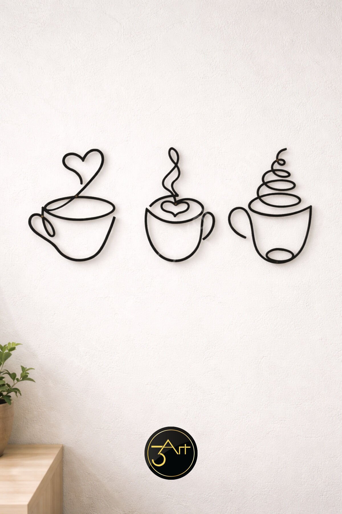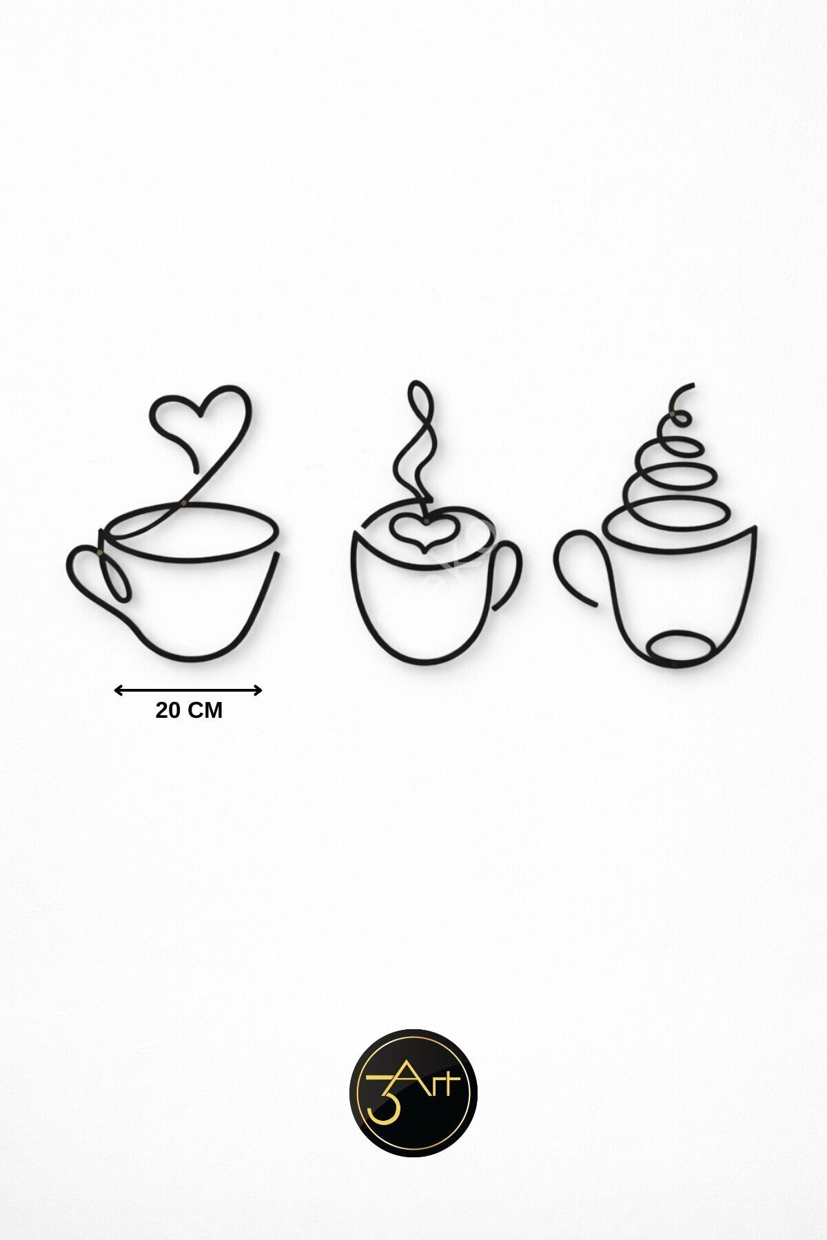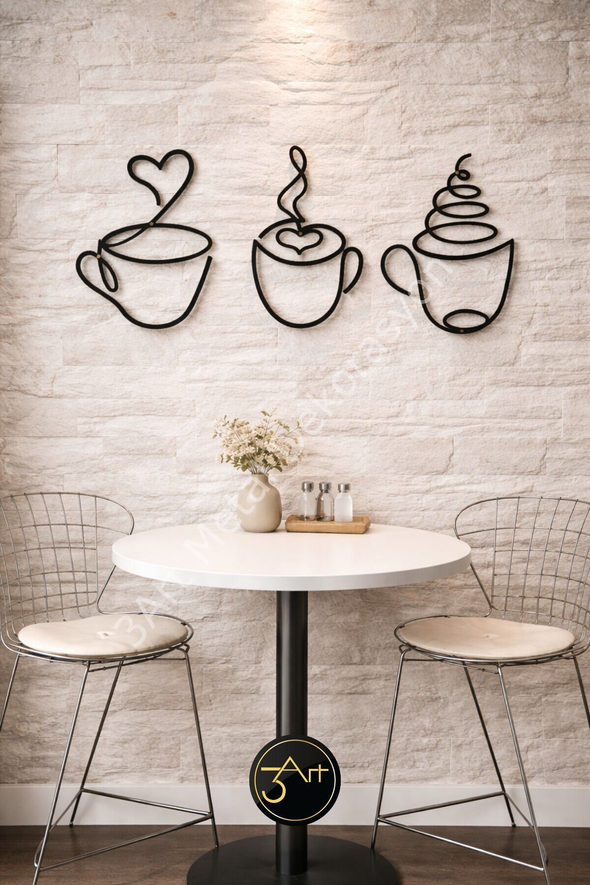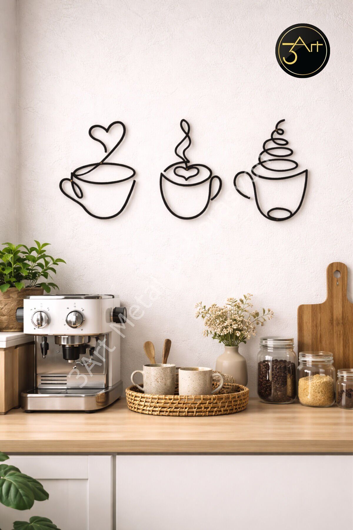 - Modern tasarımıyla mutfak ve kafe dekorasyonunuza şıklık katar.; - Türkiye'de üretilmiş olup, yerel üretim desteklenir.; - Dayanıklı metal materyal kullanımı sayesinde uzun ömürlü bir kullanım sunar.; - Üç parçadan oluşan set, duvarınızda dikkat çekici bir bütünlük sağlar.;
