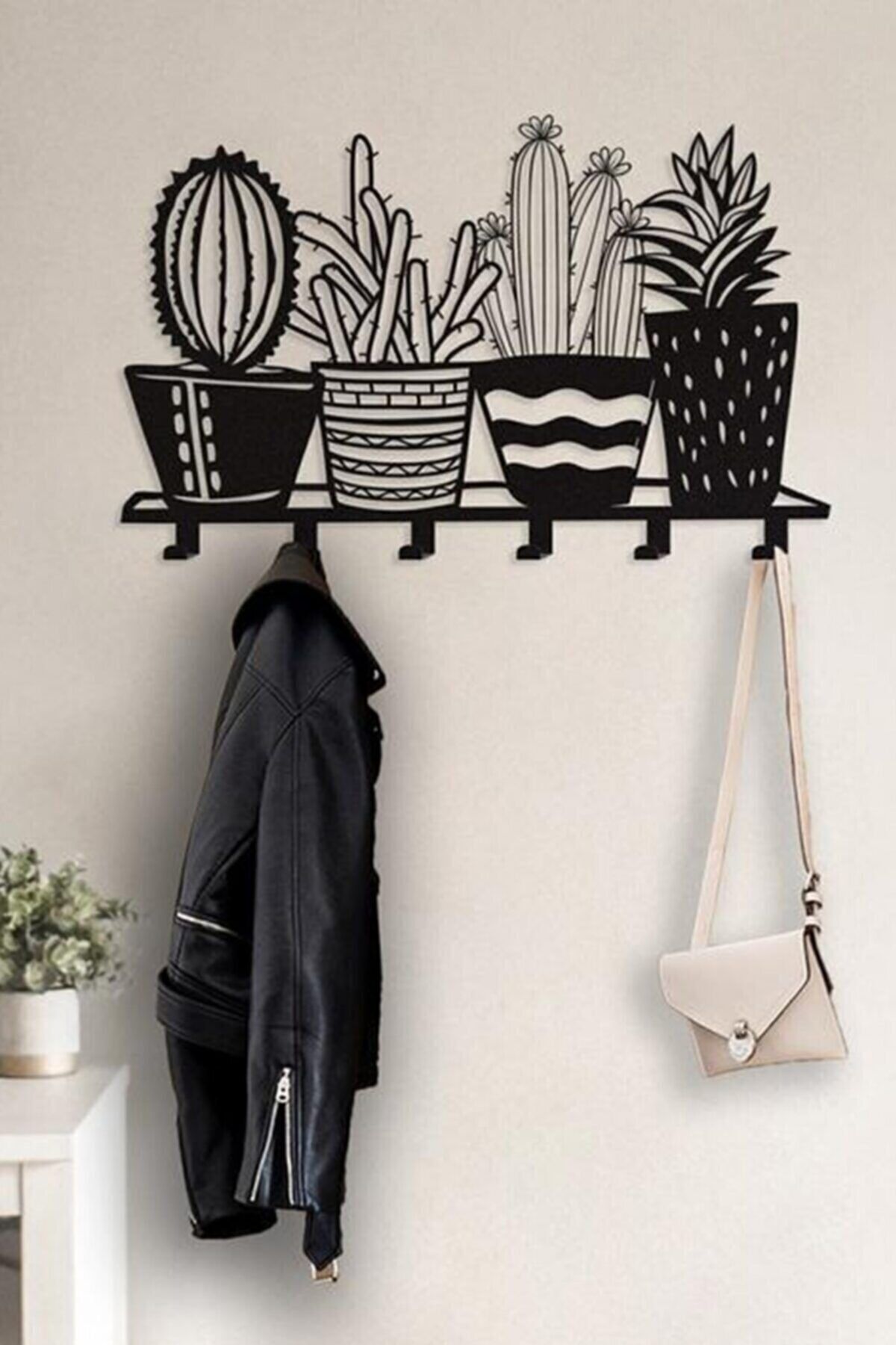 - Modern tasarımıyla dikkat çeken siyah renkli metal askılık, klasik ve şık bir görünüm sunar.; - 55 cm genişliği ve 32 cm yüksekliği ile geniş kullanım alanı sağlayarak, büyük elbiselerden küçük aksesuarlara kadar her türlü giysiye kolayca yer açar.; - Duvara monte edilebilir yapısı sayesinde mekanınızda ekstra yer kaplamadan pratik bir depolama çözümü sunar.; - Dayanıklı metal materyali ile uzun ömürlü kullanım vaat ederken, modern stil sahibi ev dekorasyonunuza uyum sağlar.; -Dayanıklı metal malzeme kullanımı, uzun ömürlü ve sağlam bir yapı sunar; Duvara monte edilebilir tasarımı sayesinde yerden tasarruf sağlar ve mekanınızda şık bir görünüm oluşturur; Kaktüs desenli tasarımıyla modern ve estetik bir dokunuş ekler, dekorasyonunuza özgün bir hava katar;