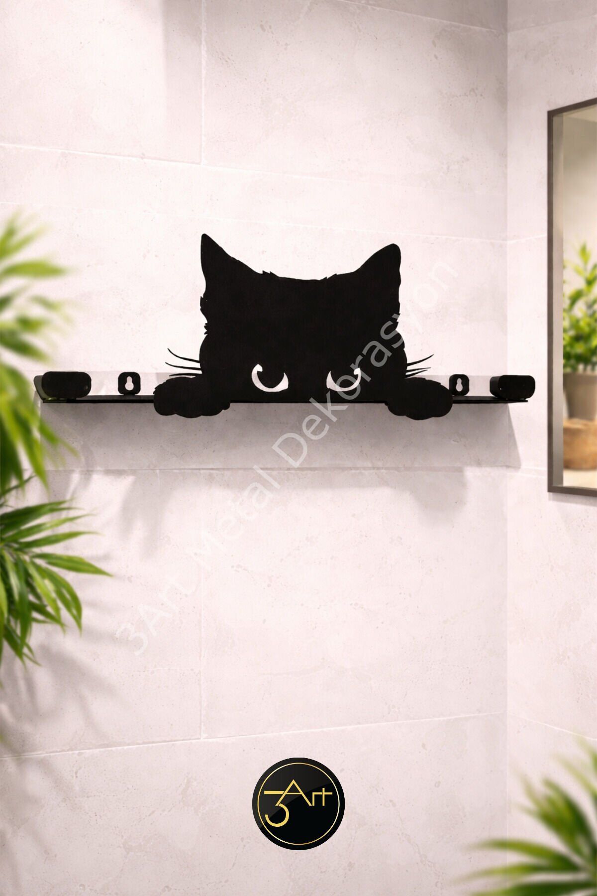 - Dekoratif ve modern tasarımıyla banyonuzun atmosferini zenginleştiren kedi figürlü duvar rafı, hem şık hem de fonksiyonel bir aksesuar sunar.; - Dayanıklı yapısı ile uzun süreli kullanım için idealdir; siyah renk seçeneğiyle her türlü banyo dekorasyonuna kolayca uyum sağlar.; - Kolay temizlenebilir özelliği sayesinde nemli bir bezle silinerek bakımını yapabilirsiniz, böylece her zaman ilk günkü gibi görünümünü korur.; - Türkiye'de üretilen bu ürün, yerli üretim desteklemek isteyenler için mükemmel bir tercihtir.; - 3art metal dekorasyon tarafından üretilen bu duvar rafı, kalite ve güvenilirlik konusunda kendini kanıtlamıştır.; - Ürünle ilgili detaylı bilgi ve destek için info@3art.; com.; tr adresinden 3art metal dekorasyon ile iletişime geçebilirsiniz.