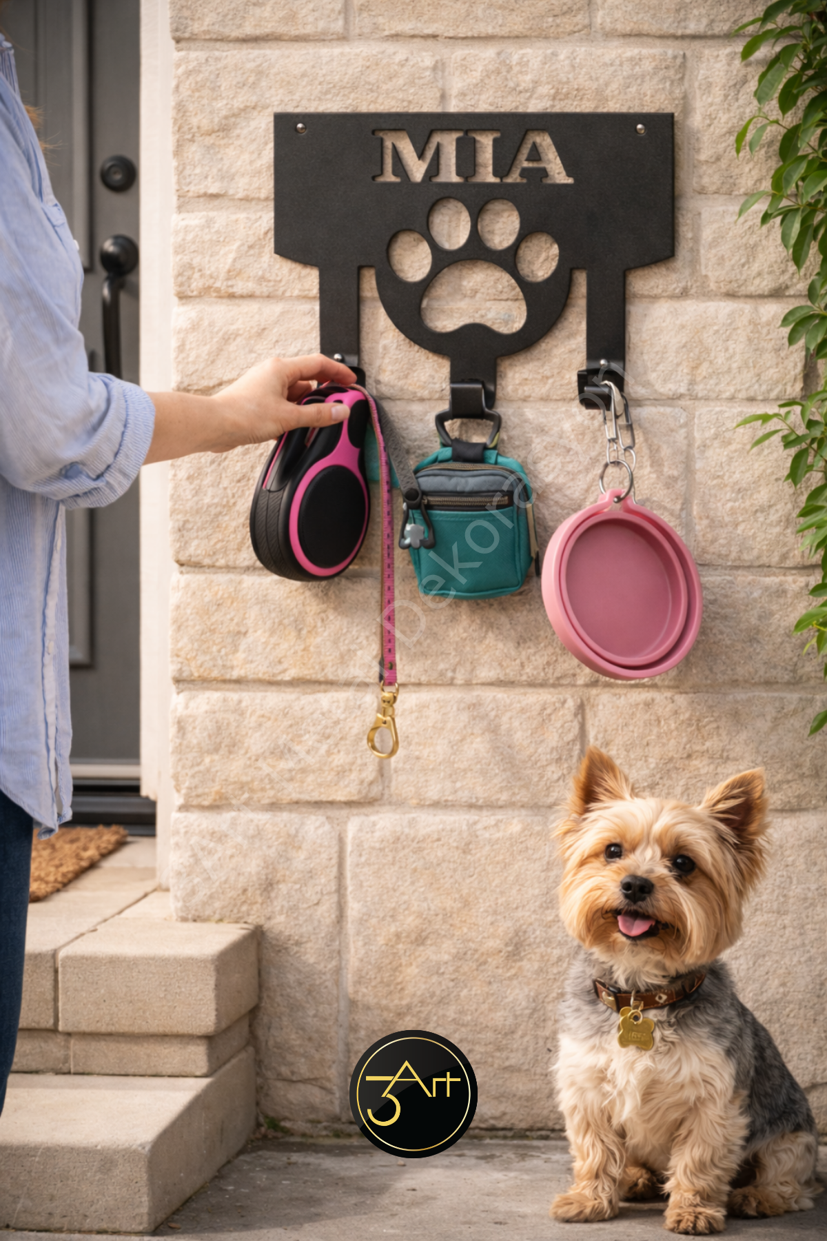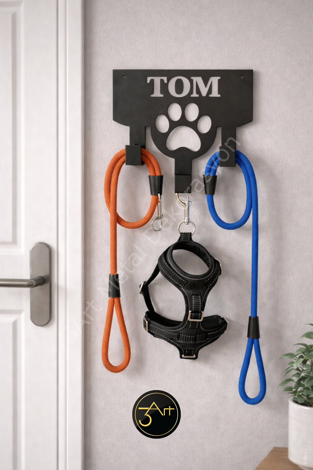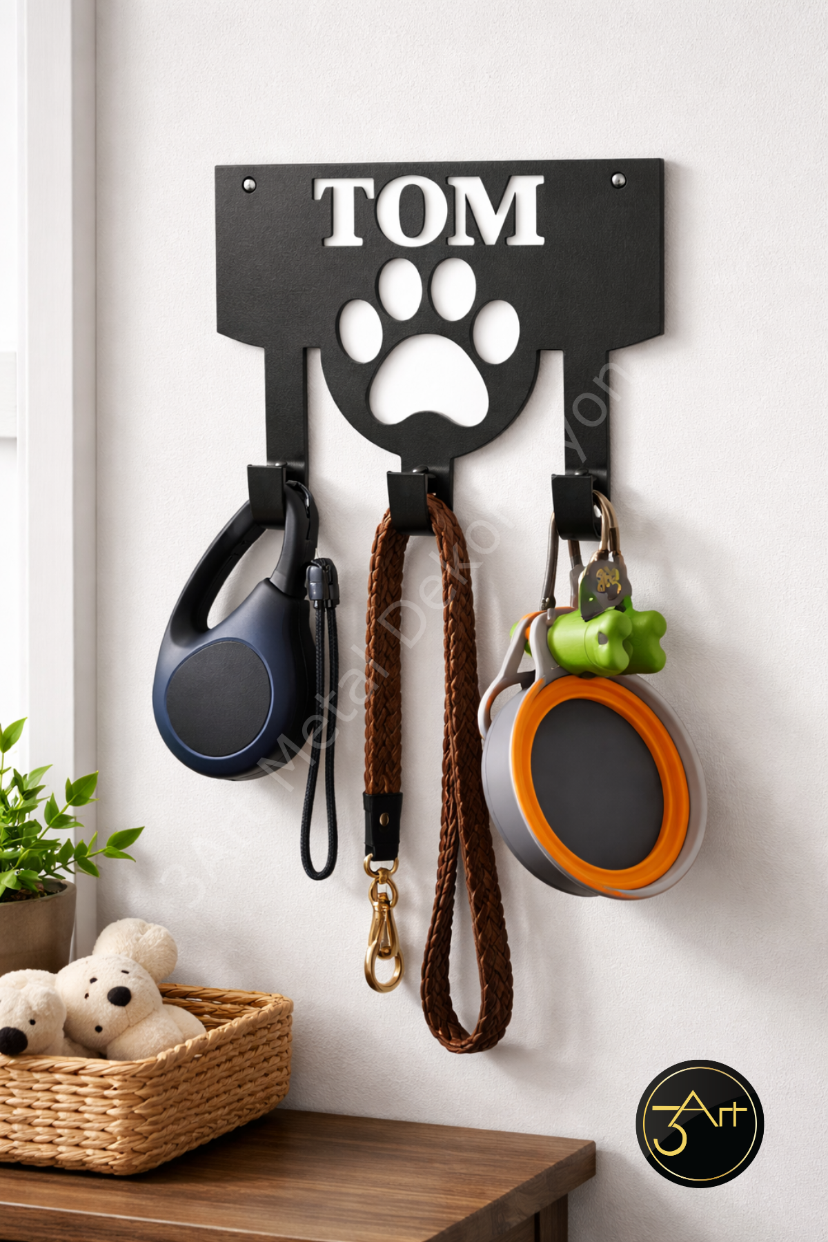 Kişiye özel isimli köpek askılığı, hem şık hem de fonksiyonel bir duvar askısıdır. Tasma ve kayışlarınızı düzenli tutarak kolayca erişmenizi sağlar. Kişisel isim özelliği, evinizde fark yaratır ve evcil dostunuzun eşyalarını özelleştirir. Dayanıklı malzemesi uzun ömürlü kullanım sunar.