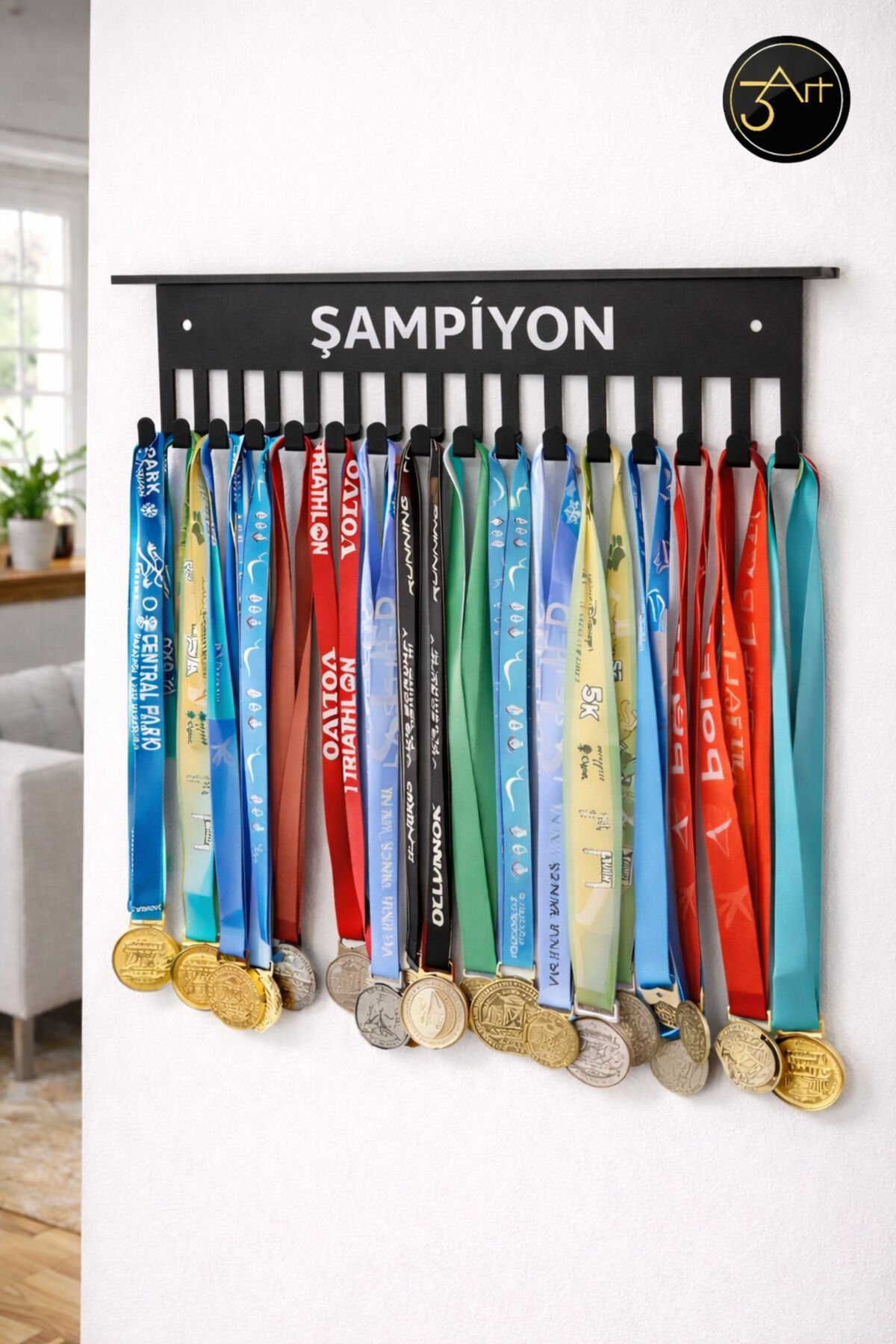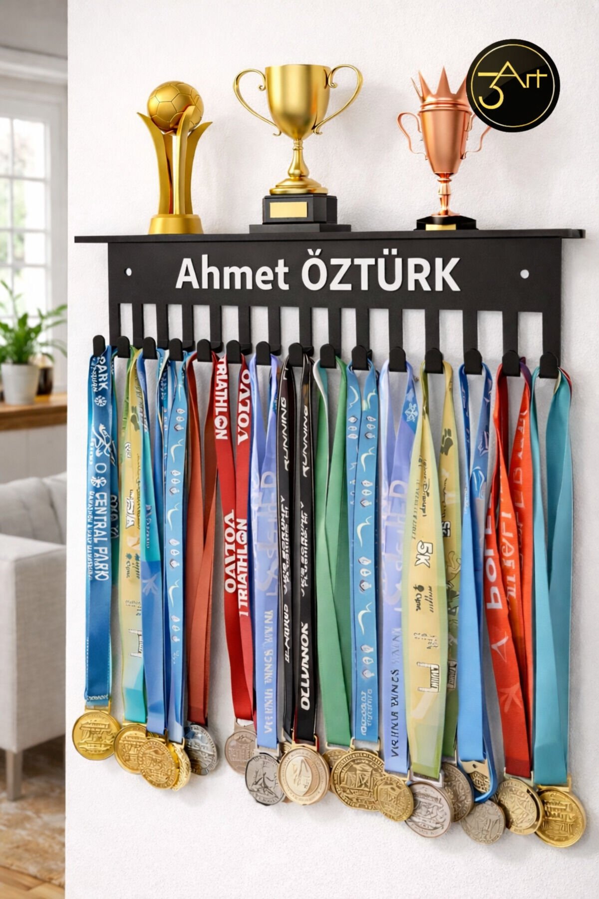 - Modern tasarımıyla evinizin veya ofisinizin dekorasyonuna şık bir dokunuş katar.; - Kişiye özel isim baskısı ile anılarınızı ölümsüzleştirin ve madalyalarınızı gururla sergileyin.; - Duvara monte edilebilir yapısı sayesinde yerden tasarruf sağlar ve kolayca kurulabilir.; - Dayanıklı metal materyali ile uzun ömürlü kullanım sunar.; - Türkiye'de üretilmiş olup, yerel işçiliği destekler.; - Kompakt boyutları (30 cm genişlik, 6 cm yükseklik) ile her alana uyum sağlar.;