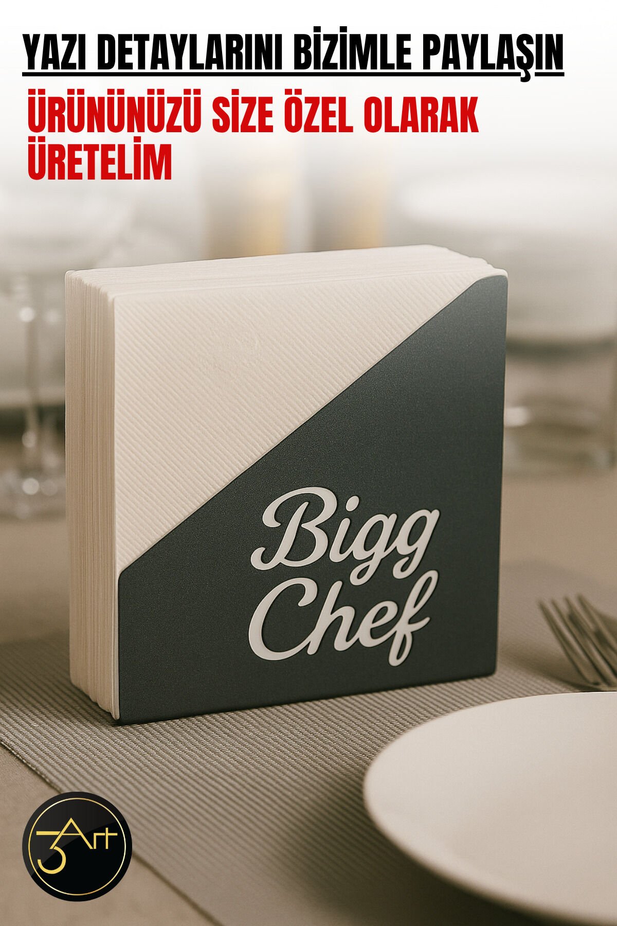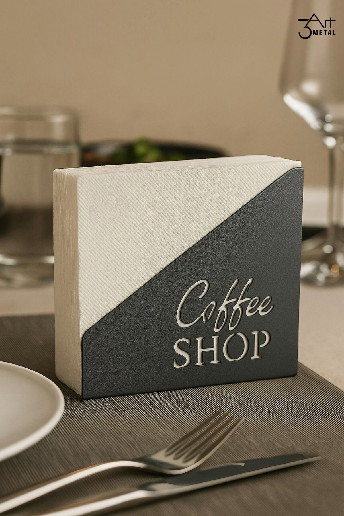 - Kişiye özel tasarımıyla restoran ve cafe ortamlarına şıklık katan metal peçetelik, her masada benzersiz bir atmosfer yaratır.; - Nemli bir bezle kolayca temizlenebilen yapısı sayesinde hijyenik kullanım sunar.; - Tuvalet kağıt askılığı olarak da kullanılabilen çok yönlü tasarımı ile pratik bir çözüm sağlar.; - Türkiye'de üretilmiş olmasıyla yerel üretim desteklenir ve kaliteli malzeme kullanımı ön plana çıkar.; Restoran, kafe ve coffee shop işletmeleri için özel olarak tasarlanan metal peçetelik, şıklığı ve dayanıklılığı bir araya getiriyor.; Modern lazer kesim teknolojisiyle üretilen bu ürün, işletmenizin adına özel olarak tasarlanabilmektedir.; İster restoranınızın logosu, ister cafe isminiz, ister markanıza özel yazılar olsun; peçeteliğiniz tamamen size özel hale getirilebilir.; *Kişiye özel tasarım: Restoran, kafe veya coffee shop isminiz lazer kesim tekniğiyle özenle işlenir.; *Dayanıklı metal malzeme: Uzun ömürlü kullanım için sağlam ve paslanmaz yapıya sahiptir.; *Modern ve zarif görünüm: Masalarınıza şıklık katar, markanızı öne çıkarır.; *Kurumsal kimlik uyumu: İşletmenizin prestijini artırarak müşterilerinizde güçlü bir ilk izlenim bırakır.; *Hediye & konsept ürün: Özel günlerde, açılışlarda veya kurumsal promosyonlarda farklı bir hediye seçeneği olarak da tercih edilebilir.; Müşterilerinizin masada dikkatini çekecek bu şık metal peçetelik, sadece bir kullanım aracı değil aynı zamanda işletmenizin kimliğini yansıtan özel bir dekoratif ürün olacaktır.; *Kullanım Alanları: *Restoranlar *Cafeler & Coffee Shops *Oteller & Bistrolar *Özel organizasyonlar *İşletmenize profesyonel bir dokunuş katmak ve markanızı ön plana çıkarmak için hemen sipariş verin!