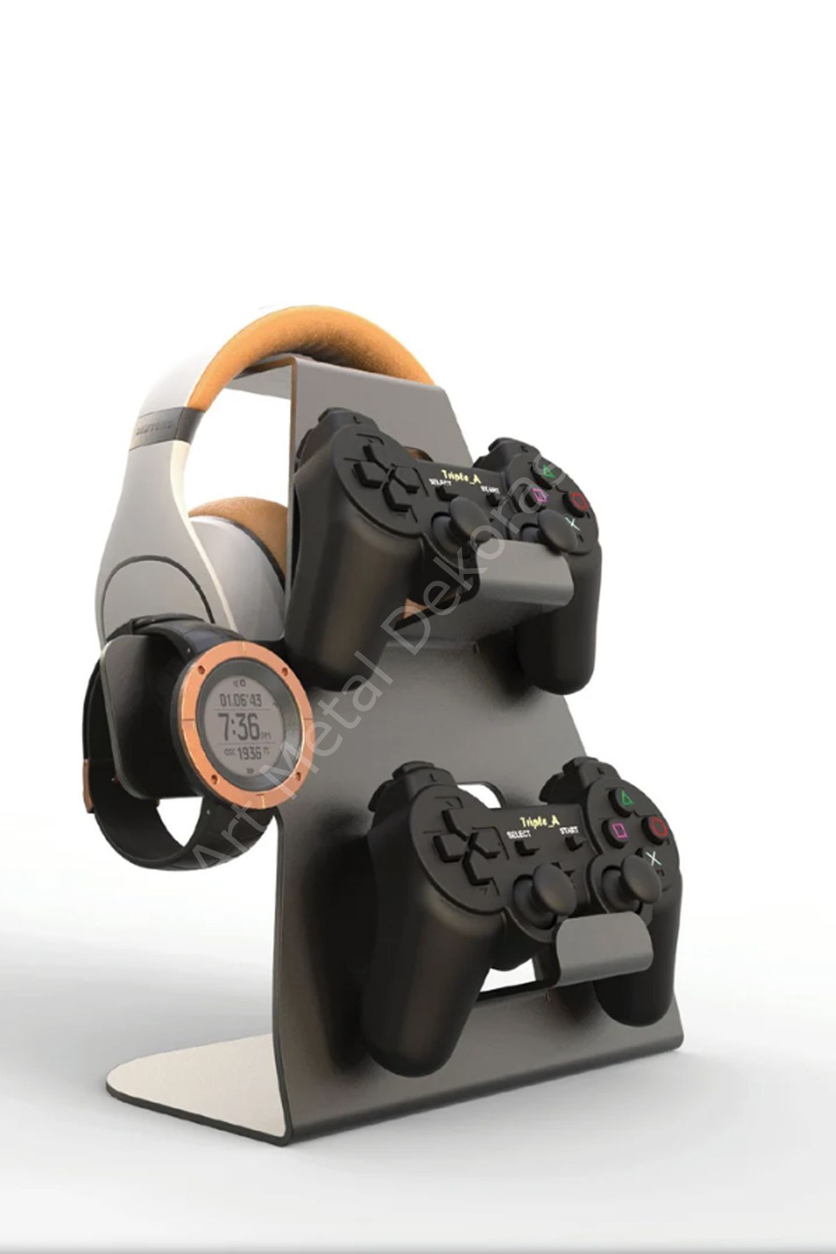 - PlayStation 5 ile tam uyumlu, joystick kumanda standı sayesinde oyun deneyiminizi kolaylaştırır.; - 2 yıl ithalatçı garantisi ile güvenilir kullanım sunar; herhangi bir sorun karşısında destek alabilirsiniz.; - hareket özgürlüğünüzü artırabilirsiniz.; - Metal yapıda üretilmiş olup dayanıklılığı ve şık görünümüyle dikkat çeker.; - Siyah renk seçeneğiyle modern ve estetik bir tasarıma sahiptir, oyun alanınıza şıklık katar.; Malzeme: Metal ; Renk: Siyah ; Kırılma paslanma riski yoktur ; Ürünün ölçüleri Uzunluk: 25cm Genişlik: 20cm Derinlik: 10cm şeklindedir.; ; Hem kulaklık hem kol standı olarak kullanılabilir ; Titiz bir ayrıntı dikkatiyle hazırlanmış bu kişiselleştirilmiş metal kulaklık standı, babalar için en iyi teknoloji aksesuarıdır.; Sadece bir yerleştirme istasyonu değil, bir joystick standı ve kontrol cihazı tutucusuyla bir oyun dekor parçası olarak da hizmet eder.; Bu Babalar Günü hediyesi, işlevselliği ve stili bir araya getirerek onu benzersiz ve pratik bir hediye haline getirir.; Kulaklık standı olarak da kullanılabilen bu çok yönlü ahşap düzenleyici ile oyun deneyimini bir üst seviyeye taşıyın.