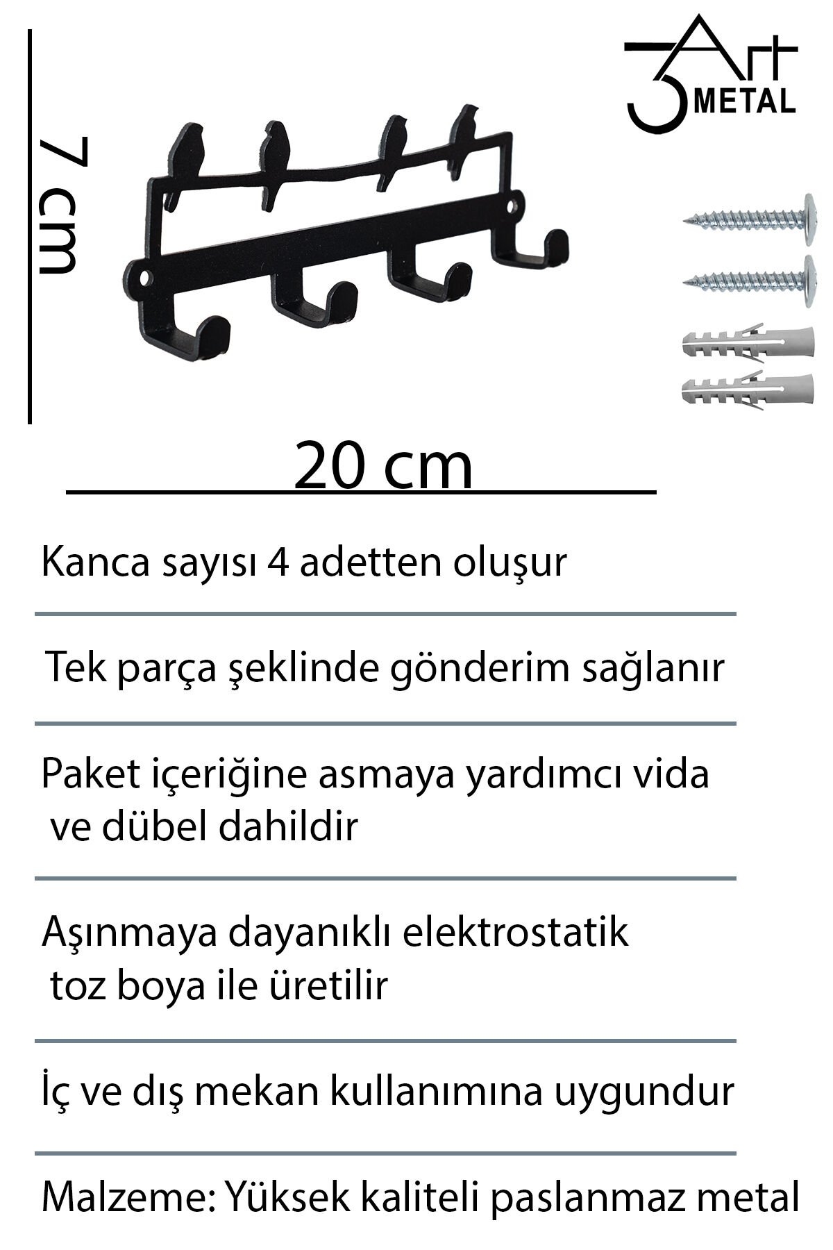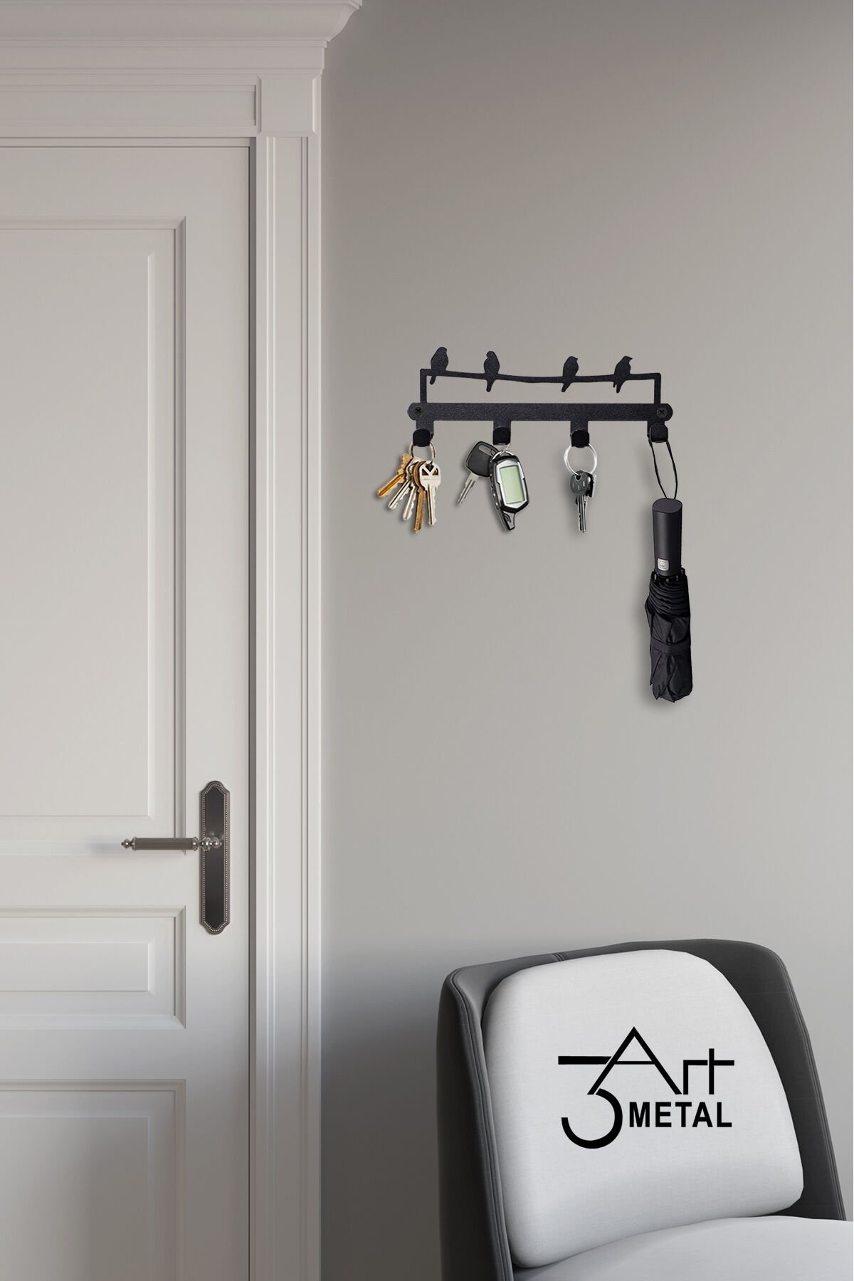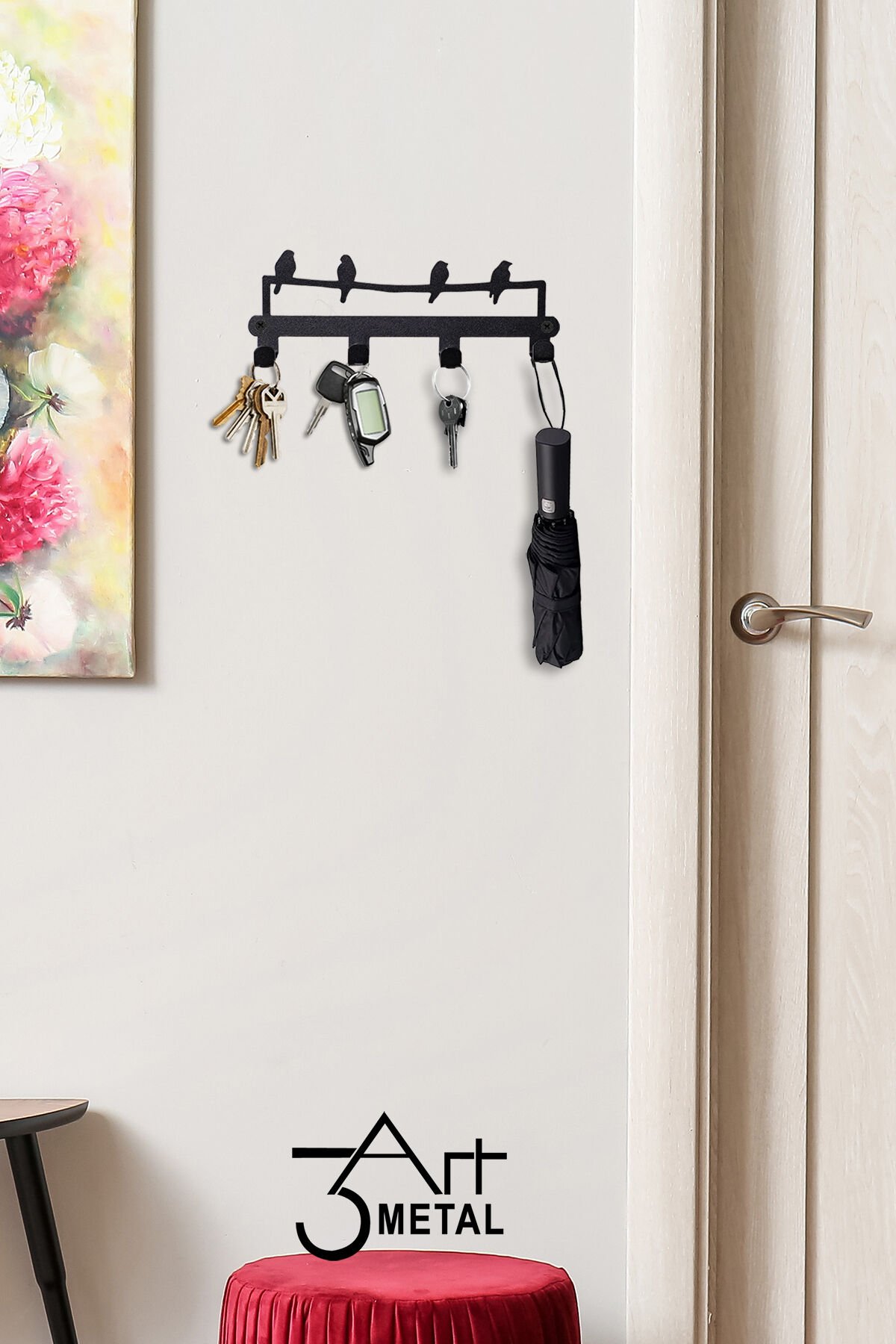 - Şık siyah rengiyle her banyoya modern bir dokunuş katan kuş motifli anahtar askısı, dekorasyonunuzu tamamlar.; - Siyah web renk seçeneği ile kolayca uyum sağlayarak mevcut banyo aksesuarlarınızla harmonik bir görünüm sunar.; - Pratik kullanım için tasarlanmış bu askı seti, anahtarlarınızı düzenli bir şekilde saklamanızı sağlar.; - Hem pratik hem de estetik bir çözüm olarak, banyonuzda fonksiyonel bir alan oluştururken aynı zamanda dekoratif bir unsur ekler.; - Yerli üretim olan bu ürün, kalite standartlarına uygun olarak üretilmiş olup yerel malzemelerle desteklenmiştir.; metal duvar askılığı, siyah askılık, banyo havlu askısı, çelik duvar askı, mutfak askılığı, kapı arkası askı, modern askılık, çanta askısı, lazer kesim askı, anahtarlık askılığı, dekoratif duvar askısı, mat siyah metal askılık, organizer askı