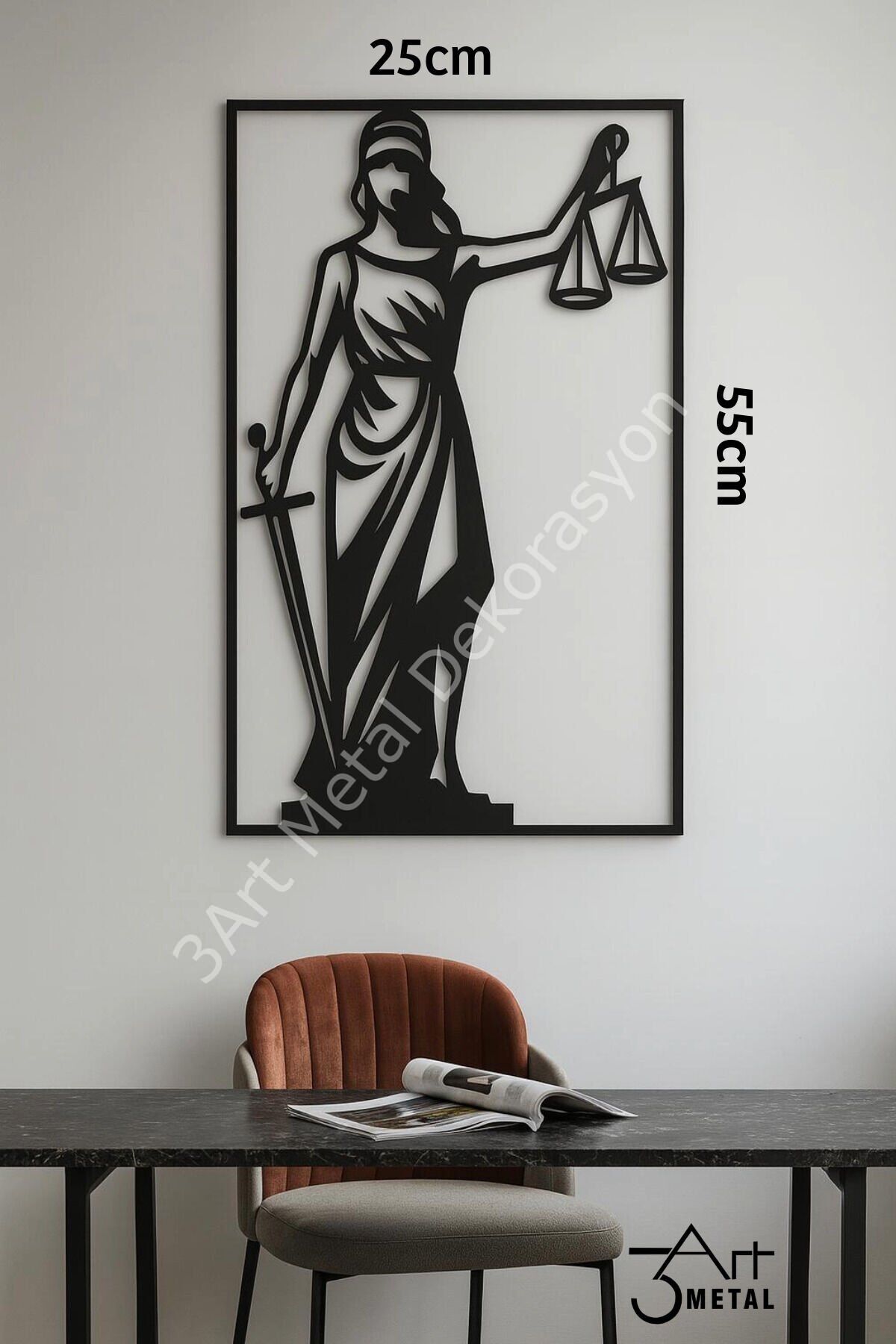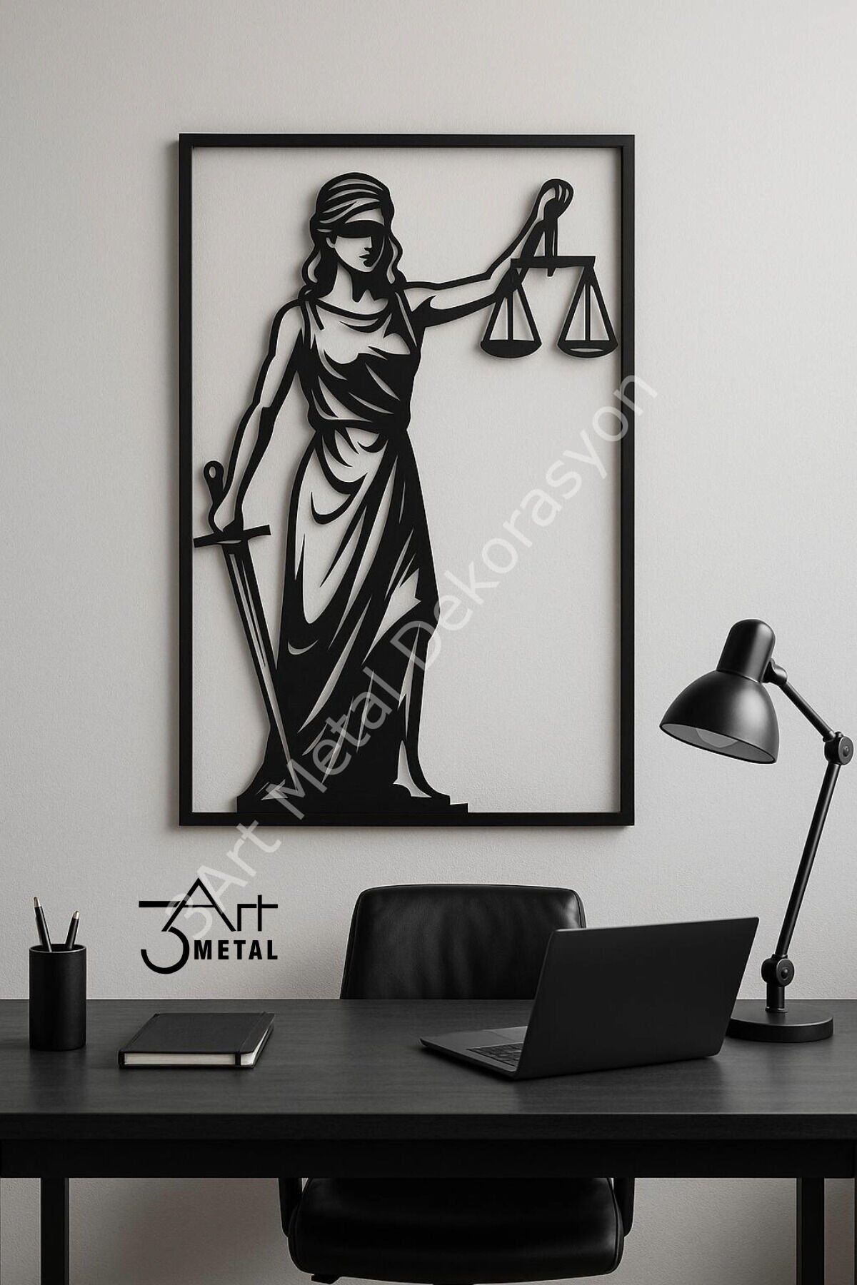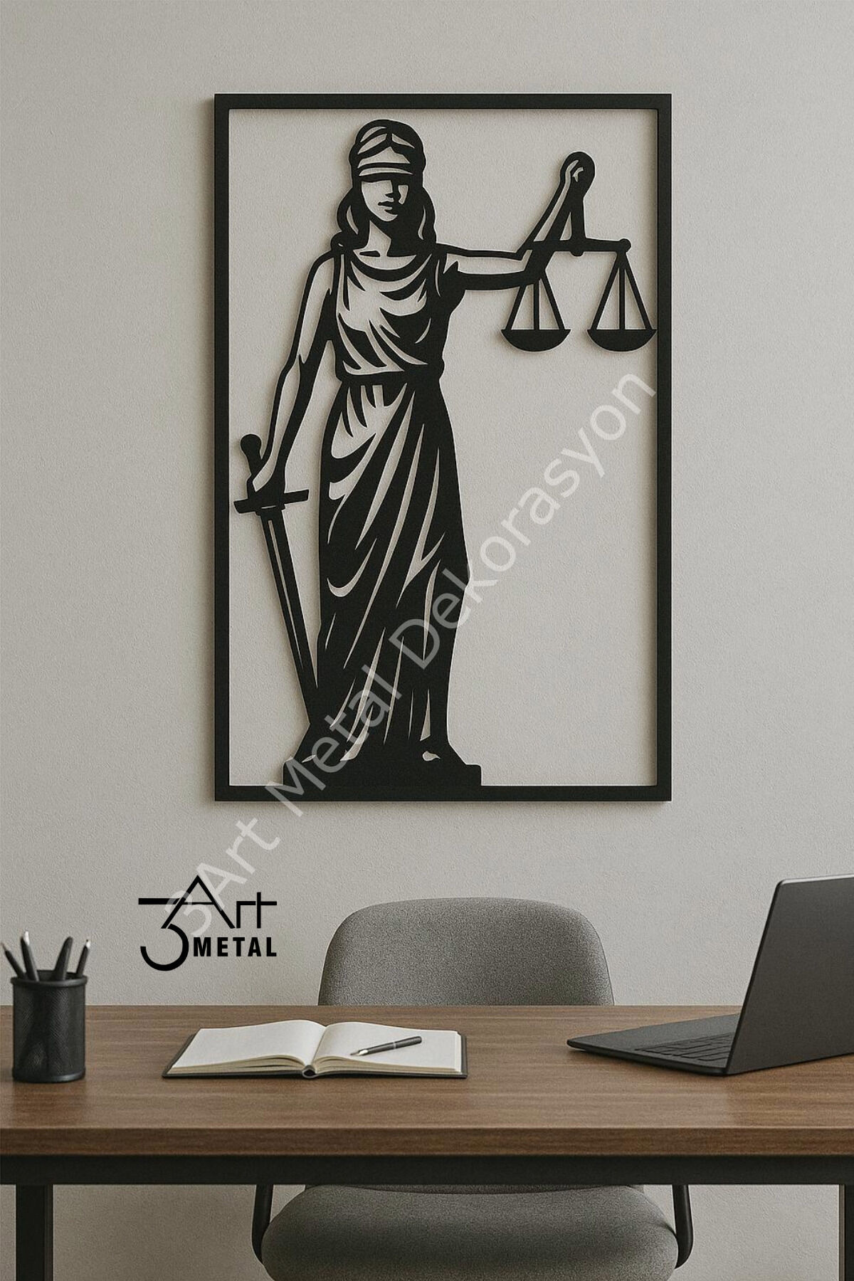 Adaletin sembolü olan Lady Justice (Themis) figüründen ilham alarak tasarlanan bu metal duvar tablosu, ofisinizin duvarında etkileyici ve profesyonel bir atmosfer yaratır.; Mat siyah yüzeyi ve detaylı lazer kesimi sayesinde hem şıklık hem de anlam taşır.; Hukuk büroları, avukat ofisleri, danışmanlık firmaları ve kurumsal çalışma alanları için özel olarak tasarlanmıştır.; Ürün Özellikleri: •✅ Malzeme: 1.5 mm kaliteli metal sac, elektrostatik mat siyah boya •✅ Üretim: Lazer kesim – yüksek hassasiyetli detay işçiliği •✅ Ebat: 55x25 cm (isteğe göre farklı ölçüler yapılabilir) •✅ Montaj: Duvara kolayca monte edilebilir (vidalar ve dübel pakete dahildir) •✅ Kullanım Alanı: Avukat ofisleri, adliye çevresi işletmeler, hukuk fakülteleri, yönetici odaları ve daha fazlası Ofisinizde hem anlamlı hem de estetik bir dekorasyon arıyorsanız, bu özel tasarım tam size göre! Güç, denge ve tarafsızlığı simgeleyen bu tablo; dekoratif olduğu kadar motive edici de bir parçadır.; Neden Tercih Etmelisiniz? •El işçiliği kalitesinde lazer detaylar •Modern ve sade tasarım •Uzun ömürlü dayanıklı kaplama •Kargo bedava, aynı gün hızlı gönderim! ⸻ metal duvar tablosu, lady justice tablo, adalet figürü, avukat ofisi dekorasyon, hukuk temalı tablo, metal ofis dekoru, adalet heykeli duvar süsü, lazer kesim metal tablo, modern ofis süsleme, hukuk bürosu duvar dekorasyonu, themis
