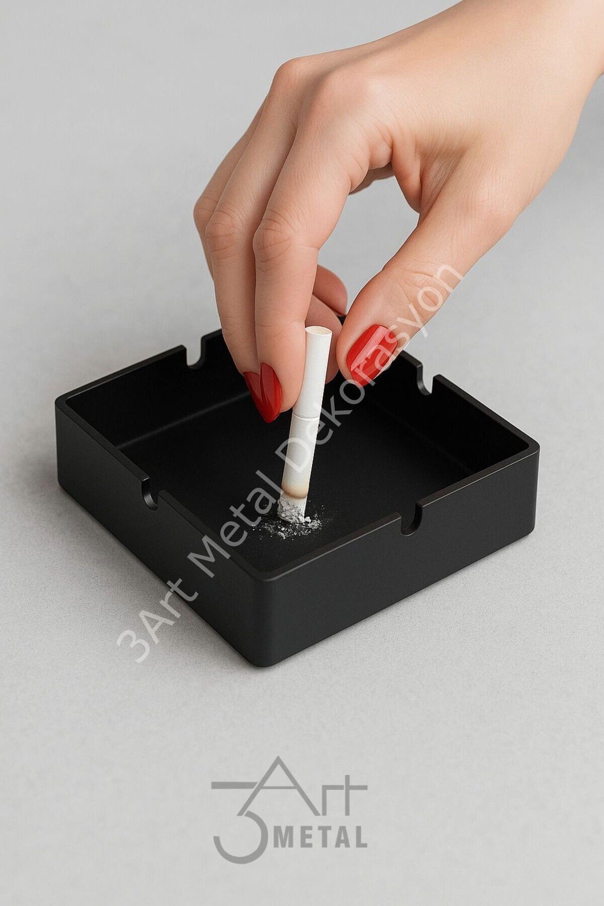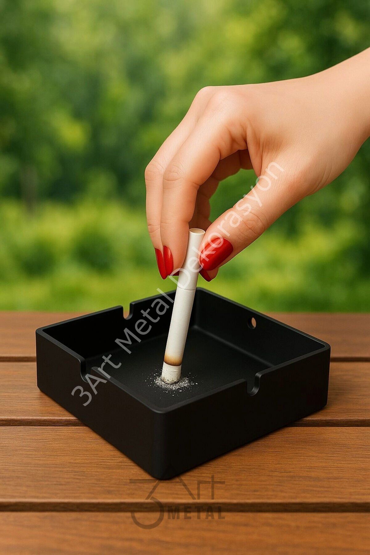 Mat Siyah Kare Metal Küllük, şık ve dayanıklı tasarımıyla hem evde hem ofiste hem de araç içinde kullanım için mükemmel bir tercihtir.; Tamamen lazer kesim çelikten üretilen bu metal küllük, uzun yıllar dayanacak sağlamlığa sahiptir.; Mat siyah elektrostatik boya kaplaması sayesinde modern bir görünüme sahip olurken, yüzeyi kolay temizlenebilir yapıdadır.; Araç içi küllük olarak da kullanılabilen bu ürün, kompakt ölçüleri sayesinde araç içinde yer kaplamaz ve küller için pratik bir çözüm sunar.; Masaüstü küllük olarak ofis masalarında, balkonlarda, bahçelerde veya mutfakta rahatlıkla kullanılabilir.; Öne Çıkan Özellikler: •Mat siyah modern tasarım ile her ortama uyum sağlar •1 mm lazer kesim çelik malzeme ile uzun ömürlü kullanım •Masaüstü ve araç içi kullanım için ideal ölçüler •Kolay temizlenebilir yüzey ile hijyenik kullanım •Kompakt kare form ile yer kaplamayan pratik tasarım •Dış mekân ve iç mekânda kullanım imkanı Sigara kullananlar için hem şık hem de işlevsel bir küllük arıyorsanız, bu mat siyah metal küllük beklentilerinizi fazlasıyla karşılar.; Evde, ofiste, araçta, balkon veya bahçede kullanabileceğiniz bu ürün, modern görünümü ve sağlam yapısıyla uzun yıllar yanınızda olacak.;