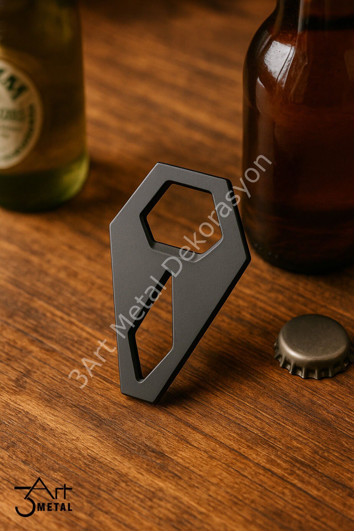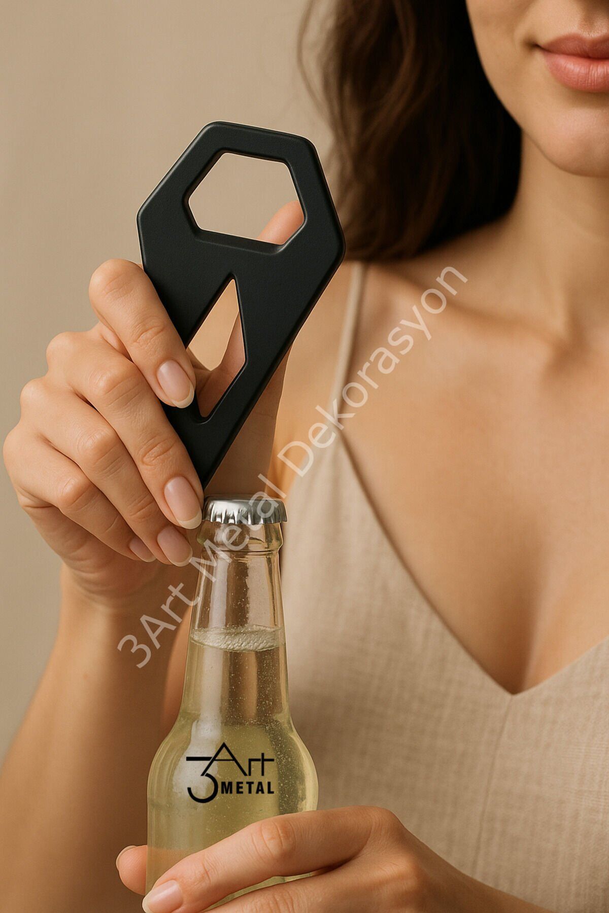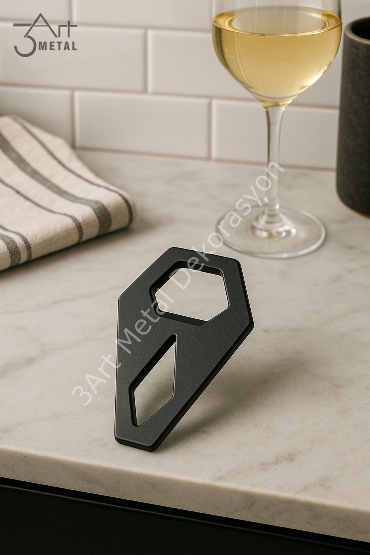 - Modern geometrik tasarımı ile mutfaklarınıza şıklık katan mat siyah gazoz açacağı.; - Ergonomik yapısı sayesinde kullanım kolaylığı sunar ve günlük işlerinizde size eşlik eder.; - Dayanıklı çelik malzemesi uzun ömürlü kullanım vaat ederken, paslanmaya karşı dirençlidir.; - Üreticinin güvenilirliğiyle üretilmiş olup, kalite standartlarına uygun olarak tasarlanmıştır.; - Yıkanabilir özelliği sayesinde temizliği pratik ve zahmetsizdir; böylece hijyenik bir kullanım sağlar.; - 3Art Metal Dekorasyon tarafından ithal edilmiş olup, Türkiye'de yetkili temsilcisi olarak hizmet vermektedir.; - Web renk seçeneği olarak siyah tonuyla her türlü mutfak dekorasyonuna uyum sağlar.; - Kullanım talimatları arasında nemli bir bezle silme işlemi yer alır; bu şekilde ürününüz ilk günkü gibi kalacaktır.