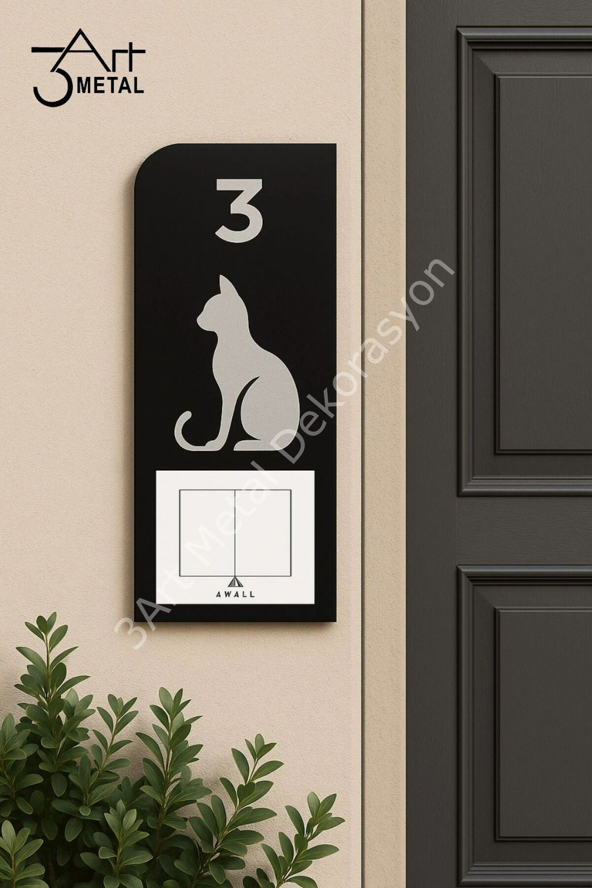 Evinizin girişine estetik ve zarafet katmak isteyenler için özel olarak tasarlanmış kelebek figürlü metal kapı numarası, minimal tarzıyla göz alıcı bir detay sunar.; 3Art Metal kalitesiyle üretilen bu ürün, dayanıklı siyah mat metal malzemeden lazer kesimle işlenmiştir.; Üzerindeki zarif siluetler ile hem doğallığı hem de özgürlüğü simgelerken, modern hatlarıyla her türlü dış cephe dekorasyonuna mükemmel uyum sağlar.; Paslanmaz yapısı sayesinde dört mevsim dış ortamlarda güvenle kullanılabilir.; Kapı numarası olarak işlevsel olmasının yanı sıra dekoratif bir obje olarak da yaşam alanlarınıza değer katar.; Özellikle villa, apartman girişi, ofis kapısı veya yazlık evlerde fark yaratmak isteyen kullanıcılar için idealdir.; Kolay montaj için arkası delikli olarak gönderilen ürün, birkaç dakika içerisinde vida yardımıyla kapınıza sabitlenebilir.; El işçiliği kalitesiyle üretilmiş bu ürün, hem estetik hem de işlevselliği bir araya getirerek uzun ömürlü kullanım sunar.;