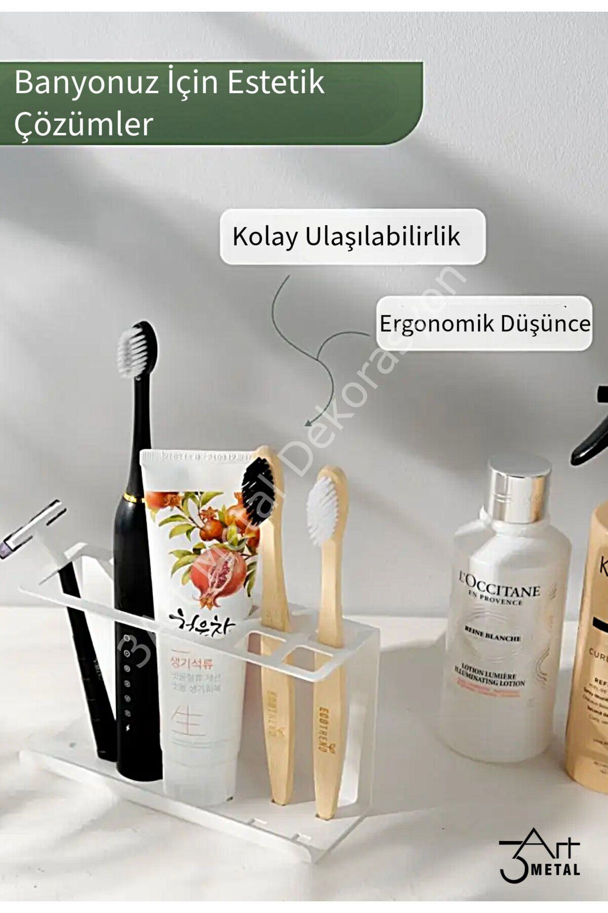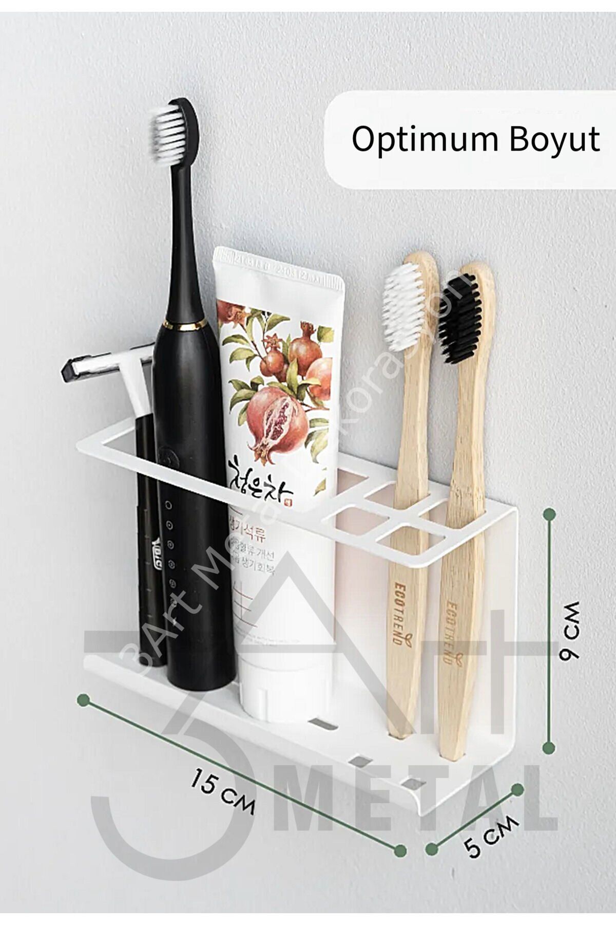 - Metal malzemeden üretilmiş olup, dayanıklılığı ve uzun ömürlü kullanımı ile ön plana çıkar.; - Çift taraflı bant sistemi sayesinde kolayca tezgah üstüne monte edilebilir veya duvara asılabilir; pratik kullanım sunar.; - Şık tasarımıyla mutfak ve banyo gibi alanlarda estetik bir görünüm sağlar.; - Beyaz rengiyle modern ve temiz bir atmosfer yaratırken, her türlü dekorasyona uyum sağlar.; - Bakım talimatlarına göre nemli bir bezle silerek kolayca temizlenebilir; hijyenik kalmasını sağlar.; Genişlik - 15 cm yükseklik - 9 cm