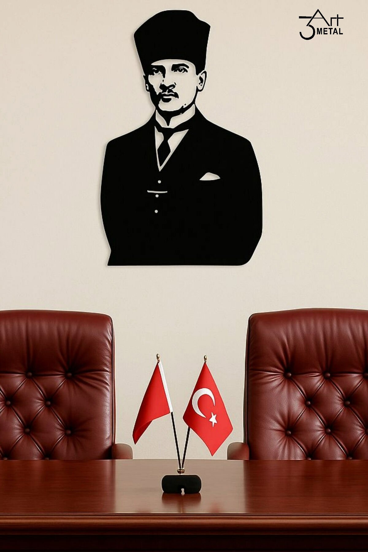 - Modern tasarımıyla dikkat çeken Atatürk silüeti, ofis ve ev dekorasyonunuza şıklık katar.; - Metal malzeme kullanımı sayesinde uzun ömürlü ve dayanıklı bir yapıya sahiptir.; - Tek parça halinde gelen bu dekoratif duvar süsü, kolay montaj imkanı sunar.; - Siyah rengiyle her türlü iç mekan tasarımına uyum sağlar ve zarif bir görünüm oluşturur.; - 35 x 50 cm boyutlarındaki bu ürün, duvarınızda etkileyici bir görsel etki yaratır.; - Modern tasarımıyla ofis ve ev dekorasyonunuza şıklık katan Atatürk silüet duvar süsü, mekanınıza çağdaş bir hava katıyor.; - Dayanıklı metal materyal kullanımı sayesinde uzun ömürlü ve sağlam bir yapı sunar.; - Türkiye'de üretilmiş olup, yerel sanatı destekleyen bir ürün olarak öne çıkar.; - Tek parça halinde gelen bu dekoratif duvar süsü, kolay montaj imkanı sağlar ve ekstra parçalarla uğraşmanıza gerek kalmaz.;