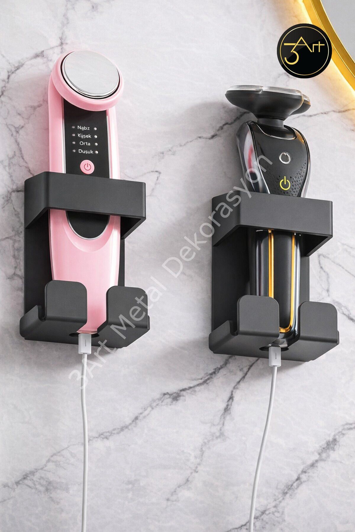 - Saç bakımı ve tıraş aletleriniz için özel olarak tasarlanmış, metal duvar tipi şarjlı cihaz askılığı, kullanım kolaylığı sağlar.; - Nemli bir bezle kolayca temizlenebilir yapısı sayesinde hijyenik bir kullanım sunar.; - Saç kurutma makineleri için ideal bir çözüm olan bu askılık, saç bakım rutininizi düzenler ve zamandan tasarruf etmenizi sağlar.; - Türkiye'de üretilmiş olup, yerel üretim desteklenerek ekonomik katkı sağlar.;
