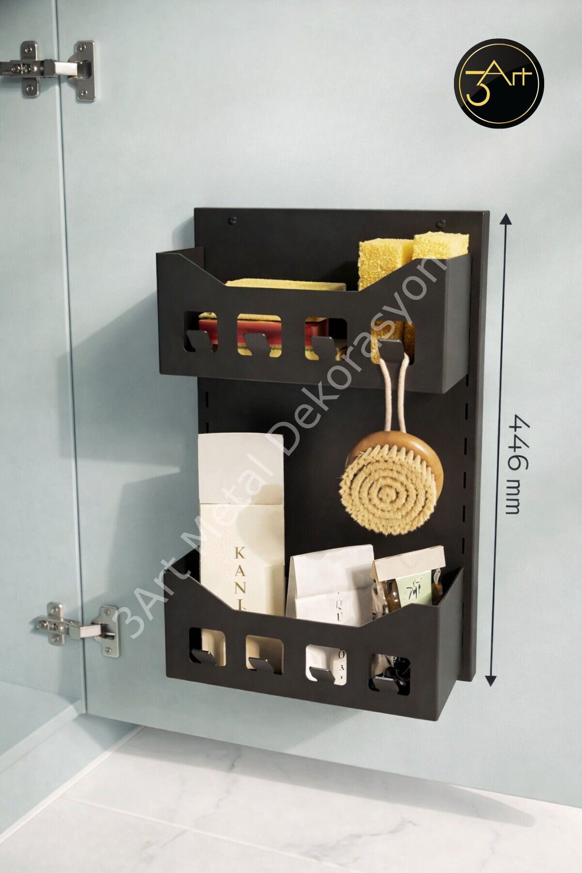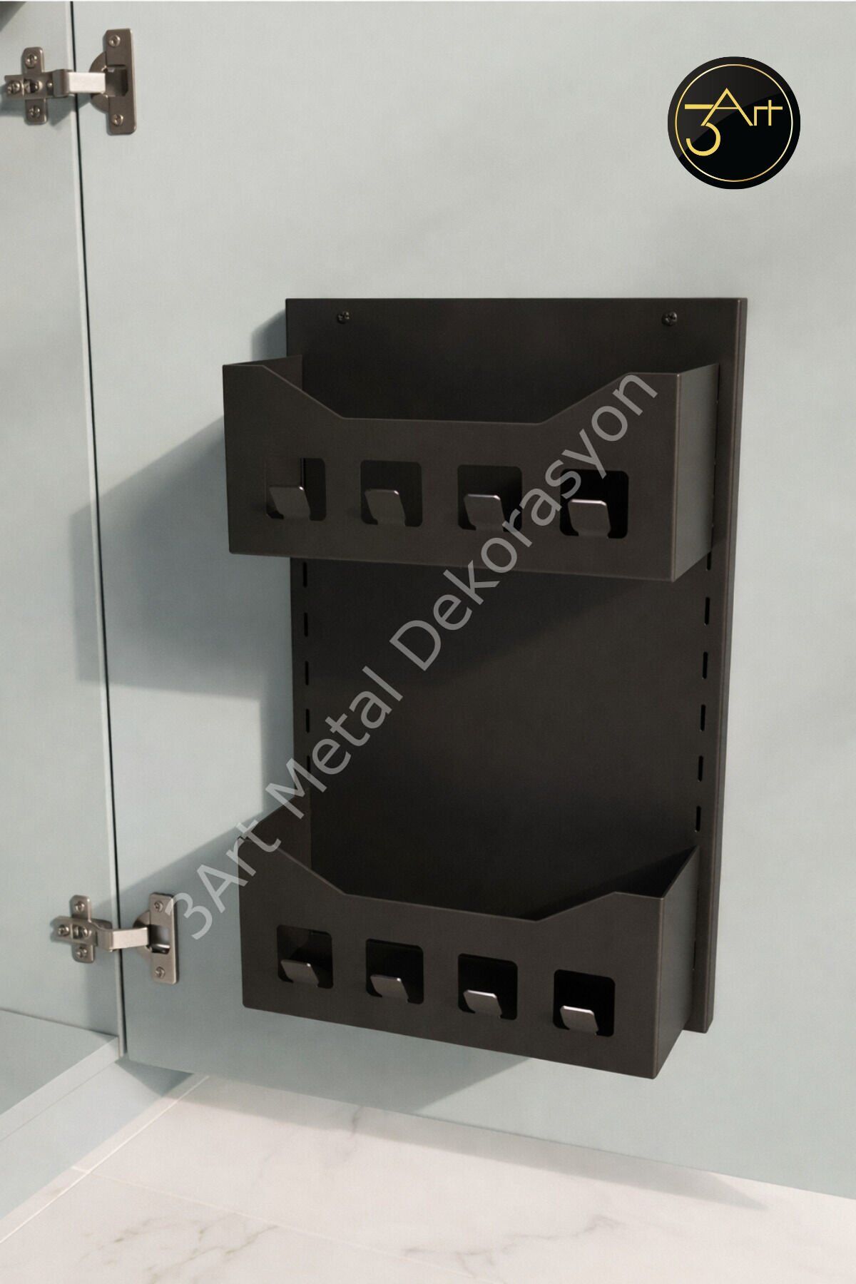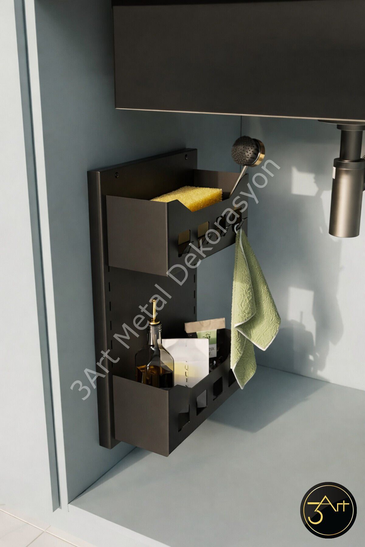 - Modern tasarımı ile mutfaklarınıza şıklık katan metal dolap askılığı, hem estetik hem de fonksiyonel bir kullanım sunar.; - Süngerlik ve havlu tutucu bölmesi sayesinde mutfak düzeninizi kolayca sağlayabilir, tezgah üstündeki dağınıklığı ortadan kaldırabilirsiniz.; - Çok amaçlı yapısıyla farklı ihtiyaçlarınıza cevap veren bu düzenleyici, mutfakta ekstra depolama alanı yaratmanıza yardımcı olur.; - Dayanıklı metal materyali ile uzun ömürlü kullanım vaat eder ve sıkça kullanılan mutfak eşyalarınız için ideal bir destek sağlar.; - Türkiye menşeli olup, yerel üretim avantajıyla kaliteli ve güvenilir bir ürün deneyimi sunar.;