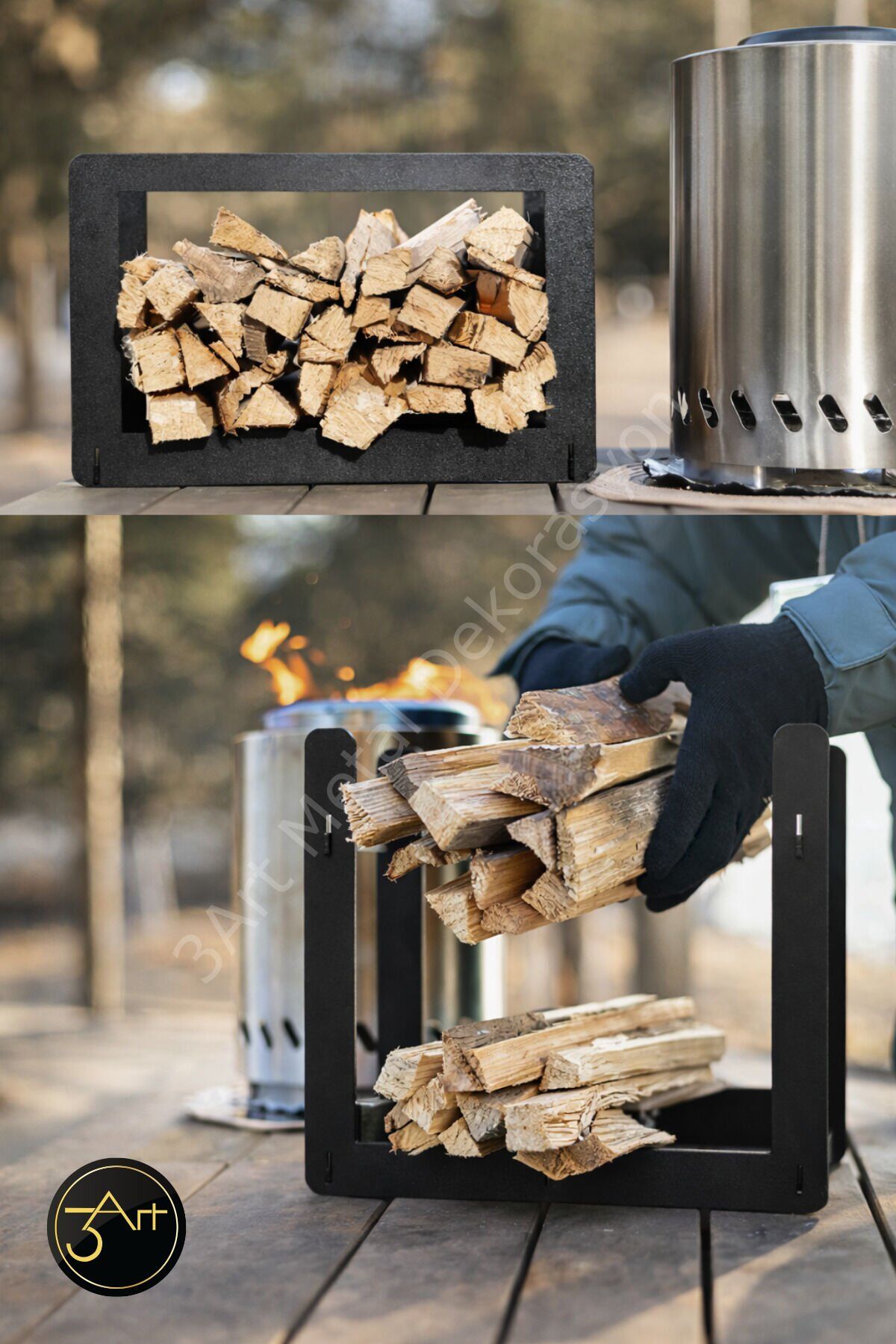 - Modern tasarımıyla dikkat çeken metal odunluk, şömine ve soba yanı için ideal bir depolama çözümü sunar.; - Türkiye'de üretilmiş olup, yerel işçiliğin kalitesini evinizin her köşesine taşır.; - Dayanıklı metal malzemesi sayesinde uzun ömürlü kullanım vaat eder ve sık kullanıma karşı direnç gösterir.; - Şık ve fonksiyonel yapısıyla mekanınıza estetik bir dokunuş katar, odunlarınızı düzenli bir şekilde saklamanızı sağlar.;