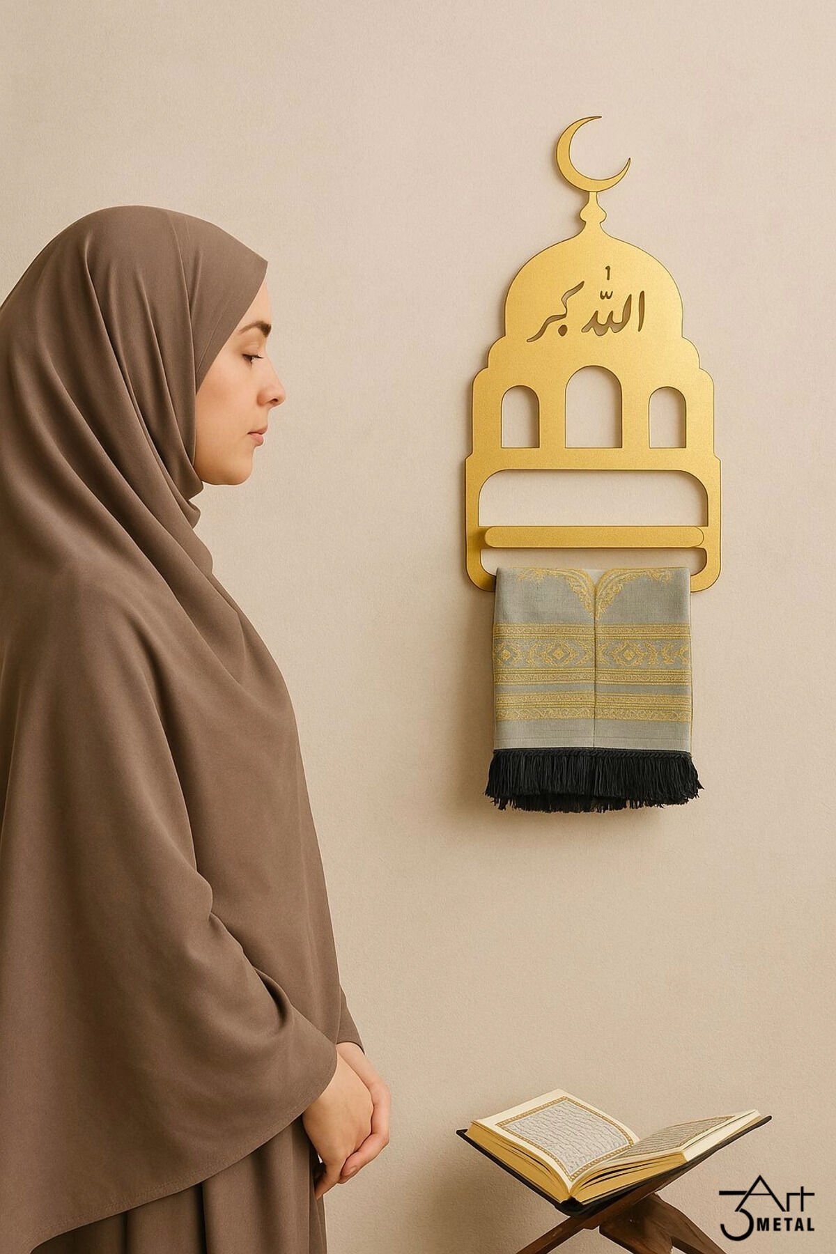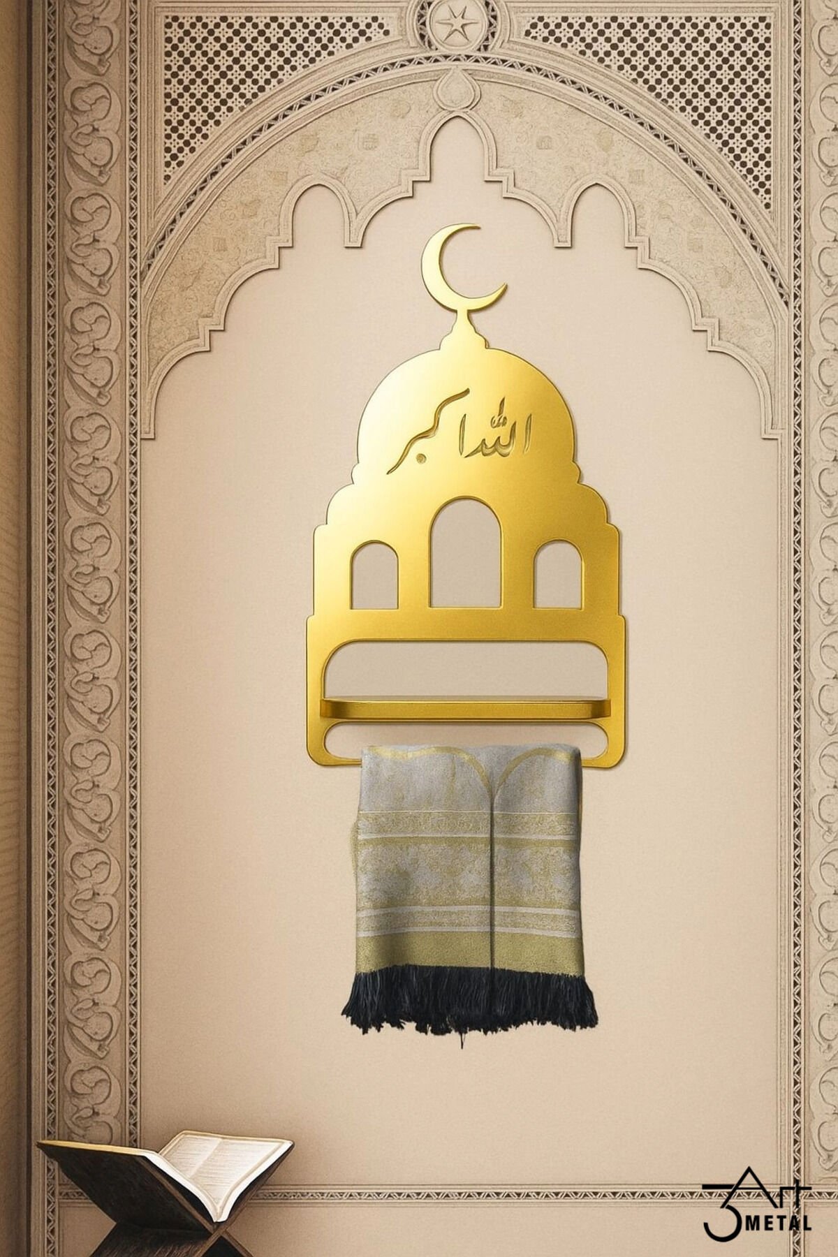 - Altın rengi tasarımıyla dikkat çeken bu seccade ve tesbih askılığı, İslami dekorasyona şıklık katmak için idealdir.; - Sarı renk seçeneğiyle mekanınıza canlılık ve zarafet getirirken, klasik stil anlayışını yansıtır.; - 3Art Metal tarafından üretilen bu ürün, dayanıklı metal materyali sayesinde uzun ömürlü kullanım sunar .; - 35 cm yüksekliği ve 20 cm genişliği ile hem seccadenizi hem de tespihinizi rahatça asabileceğiniz pratik bir çözüm sağlar.; - Duvara monte edilebilme özelliği sayesinde ekstra yer kaplamadan kolayca kullanabilirsiniz; böylece namaz köşenize modern bir dokunuş ekler.; - Klasik tasarımıyla dikkat çeken metal seccade ve tesbih askılığı, namaz köşenize şıklık katar.; - 35 cm yüksekliği ve 20 cm genişliğiyle ideal boyutlarda olan bu askılık, duvarınıza kolayca uyum sağlar.; - Duvara monte edilebilir yapısı sayesinde pratik kullanım sunar ve yerden tasarruf etmenizi sağlar.; - Allahuekber motifleriyle süslenmiş bu dekoratif duvar askısı, İslami estetiği evinizin her köşesine taşır.; - Dayanıklı metal materyali ile uzun ömürlü kullanım vaat ederken, kaliteli işçiliğiyle göz alıcı bir görünüm sunar.; -