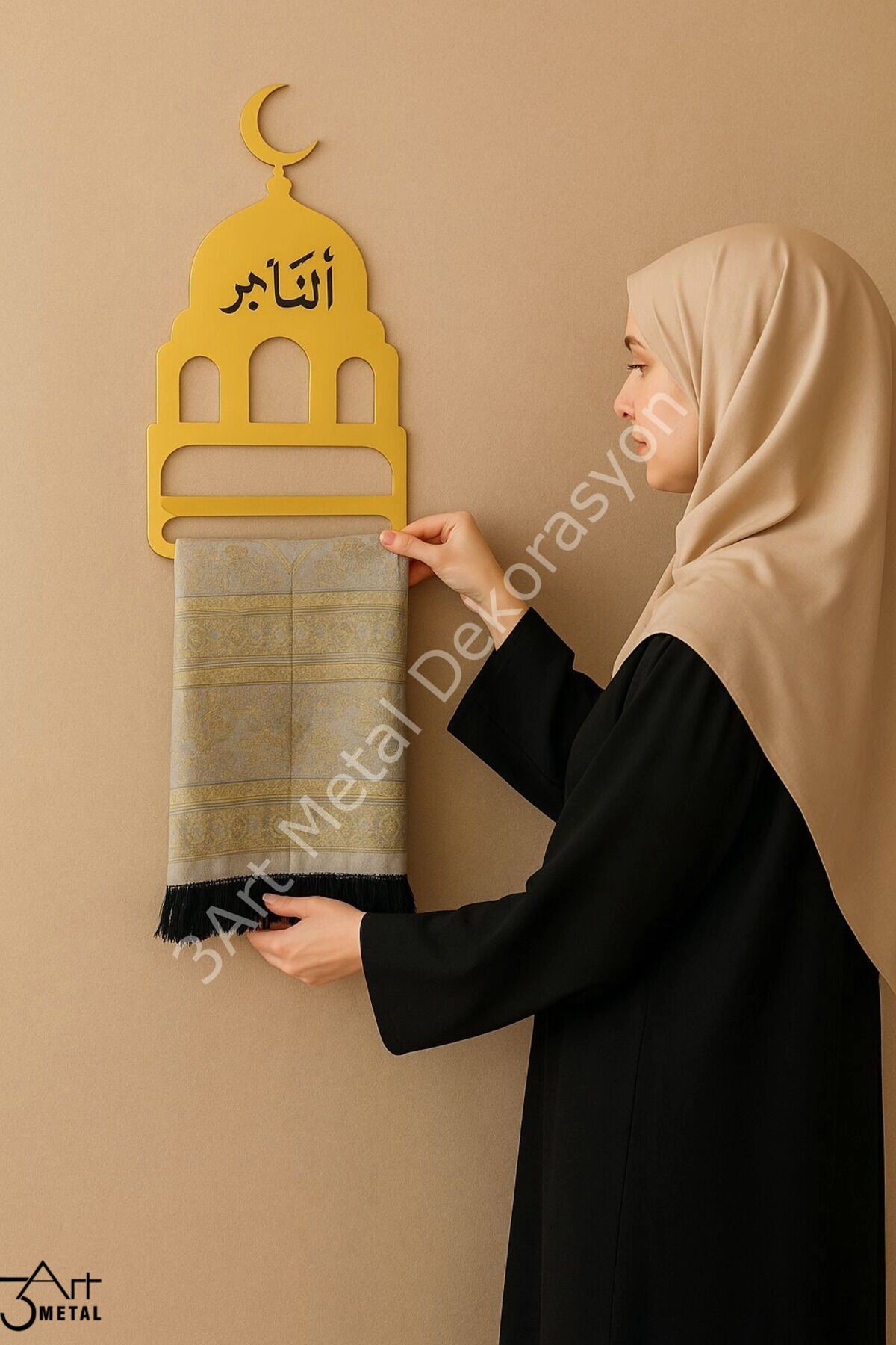 - Altın rengi tasarımıyla dikkat çeken bu seccade ve tesbih askılığı, İslami dekorasyona şıklık katmak için idealdir.; - Sarı renk seçeneğiyle mekanınıza canlılık ve zarafet getirirken, klasik stil anlayışını yansıtır.; - 3Art Metal tarafından üretilen bu ürün, dayanıklı metal materyali sayesinde uzun ömürlü kullanım sunar .; - 35 cm yüksekliği ve 20 cm genişliği ile hem seccadenizi hem de tespihinizi rahatça asabileceğiniz pratik bir çözüm sağlar.; - Duvara monte edilebilme özelliği sayesinde ekstra yer kaplamadan kolayca kullanabilirsiniz; böylece namaz köşenize modern bir dokunuş ekler.; - Klasik tasarımıyla dikkat çeken metal seccade ve tesbih askılığı, namaz köşenize şıklık katar.; - 35 cm yüksekliği ve 20 cm genişliğiyle ideal boyutlarda olan bu askılık, duvarınıza kolayca uyum sağlar.; - Duvara monte edilebilir yapısı sayesinde pratik kullanım sunar ve yerden tasarruf etmenizi sağlar.; - Allahuekber motifleriyle süslenmiş bu dekoratif duvar askısı, İslami estetiği evinizin her köşesine taşır.; - Dayanıklı metal materyali ile uzun ömürlü kullanım vaat ederken, kaliteli işçiliğiyle göz alıcı bir görünüm sunar.; -