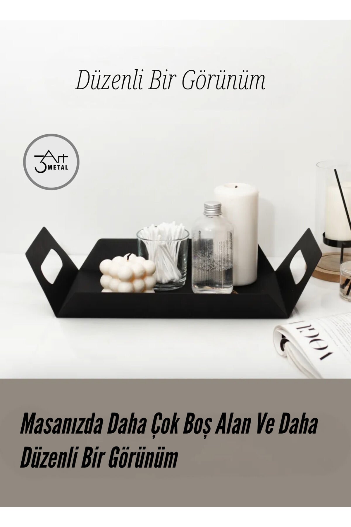 Şıklıgı ve fonksiyonelligi bir araya getiren Metal Sunum ve Duzenleme Tepsisi, mutfaktan banyoya, salondan yatak odasına kadar her alanda duzen saglayan çok amaçlı bir urundur.; Modern ve minimalist tasarımıyla kahvaltı, çay saati ve ikram sunumlarında şık bir yardımcı olurken, banyoda kozmetik ve bakım urunlerinizi duzenli bir şekilde saklamanıza da olanak tanır.; Saglam metal malzemesi sayesinde uzun omurlu ve dayanıklıdır.; Kullanım alanına gore banyo duzenleyici, tepsi organizer veya dekoratif bir sunum tepsisi olarak tercih edebilirsiniz.; ✔ Banyo ve mutfakta duzenleyici olarak kullanılabilir ✔ Şık ve modern sunumlar için ideal ✔ Metal malzeme, saglam ve uzun omurlu kullanım ✔ Kozmetik, bakım urunleri ve aksesuarlar için toparlayıcı işlevi Ev ve iş yerlerinizde daha duzenli ve estetik bir gorunum için 3art Metal Sunum ve Duzenleme Tepsisi mukemmel bir seçim!