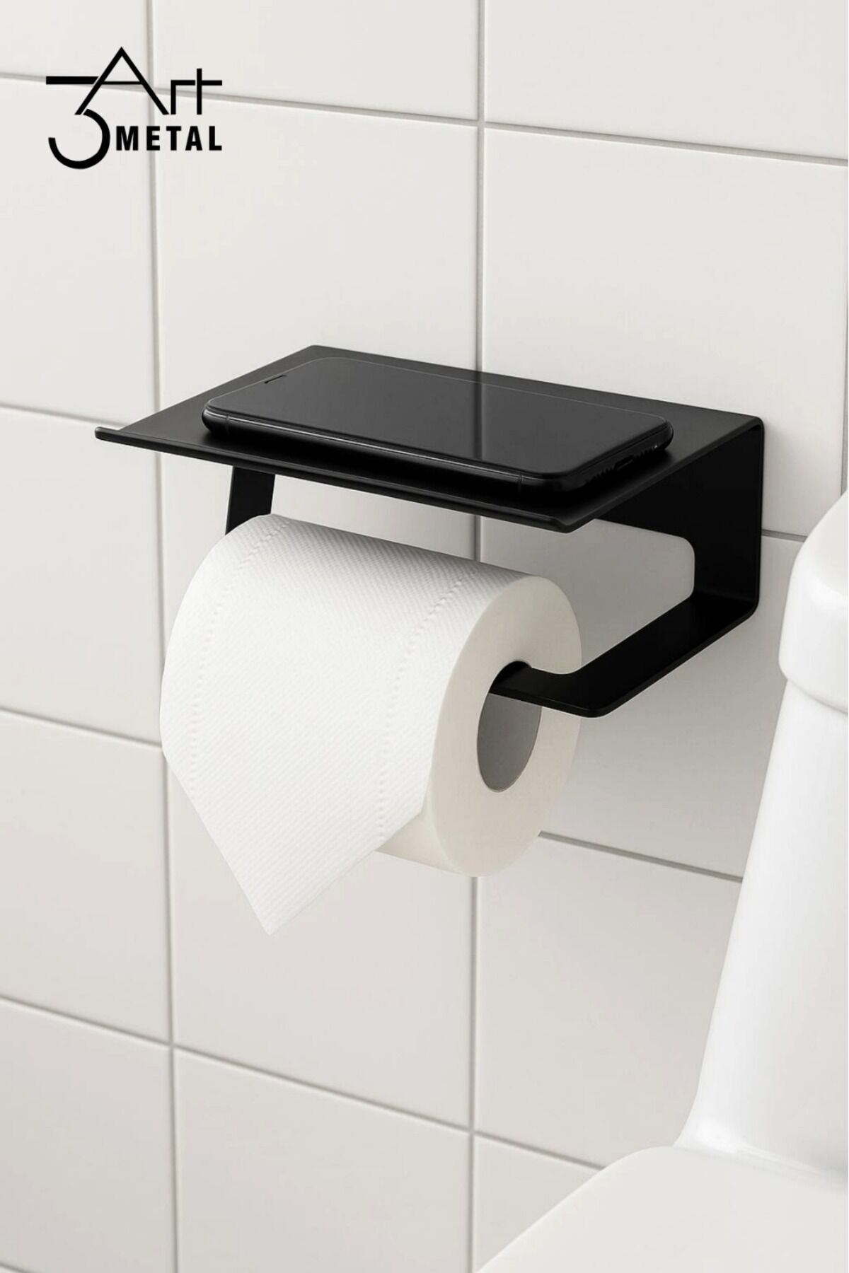 Banyonuzda hem şıklığı hem de işlevselliği bir arada sunan bu beyaz-siyah metal tuvalet kağıdı tutucu, minimalist tasarımıyla dikkat çekerken aynı zamanda kullanım kolaylığı sağlar.; Üst kısmındaki entegre telefon rafı sayesinde, kişisel eşyalarınızı güvenle yerleştirebilir; telefonunuzu, cüzdanınızı veya küçük aksesuarlarınızı yanınızda bulundurabilirsiniz.; ; Çift taraflı bant ile kolayca monte edilebilen bu ürün, delme ve vida işlemine gerek kalmadan duvarınıza zarar vermeden pratik bir şekilde kurulur.; Güçlü yapıştırıcı sayesinde uzun ömürlü kullanım sunar ve düşme, kayma gibi sorunlarla karşılaşmazsınız.; %100 elektrostatik toz boya ile kaplanmış dayanıklı metal yüzeyi, paslanmaya karşı dirençlidir ve uzun süreli kullanımda bile formunu korur.; Modern banyolar, otel banyoları, kiralık daireler ya da minimal dekorasyon tarzı benimseyenler için ideal bir çözümdür.; ⸻ Öne Çıkan Özellikler: •Telefon koyma rafı ile ekstra işlevsellik •Mat beyaz - siyah elektrostatik toz boyalı yüzey •Delmeden, çift taraflı bant ile kolay montaj •Suya, neme ve paslanmaya dayanıklı metal gövde •Modern, sade ve yerden tasarruf sağlayan tasarım ⸻ Bu şık ve fonksiyonel ürünle banyonuzda düzeni yakalayın, tarzınızı yansıtın.; Hemen sipariş verin, pratikliği ve zarafeti bir arada yaşayın!